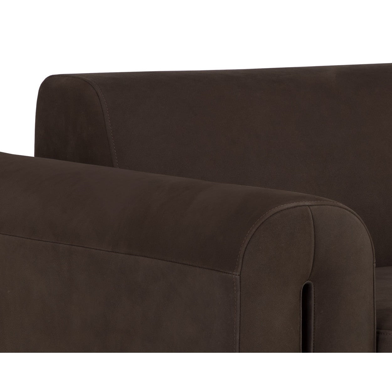 Cozy and luxuriously smooth, the Romer Armchair brings a sense of warmth and comfort to any living area. Expertly designed with sculpted curves that lend a modern aesthetic. Upholstered in nubuck cocoa leather with metal accents on the legs. Handle with Care: This design has been crafted with 100% leather. Leather is a natural material; as such, colour variations, markings, wrinkles, grooves and light scratches are acceptable and appreciated characteristics. No two pieces are alike. Visit our Product Care page for more information on how to ensure the lasting beauty of this piece.