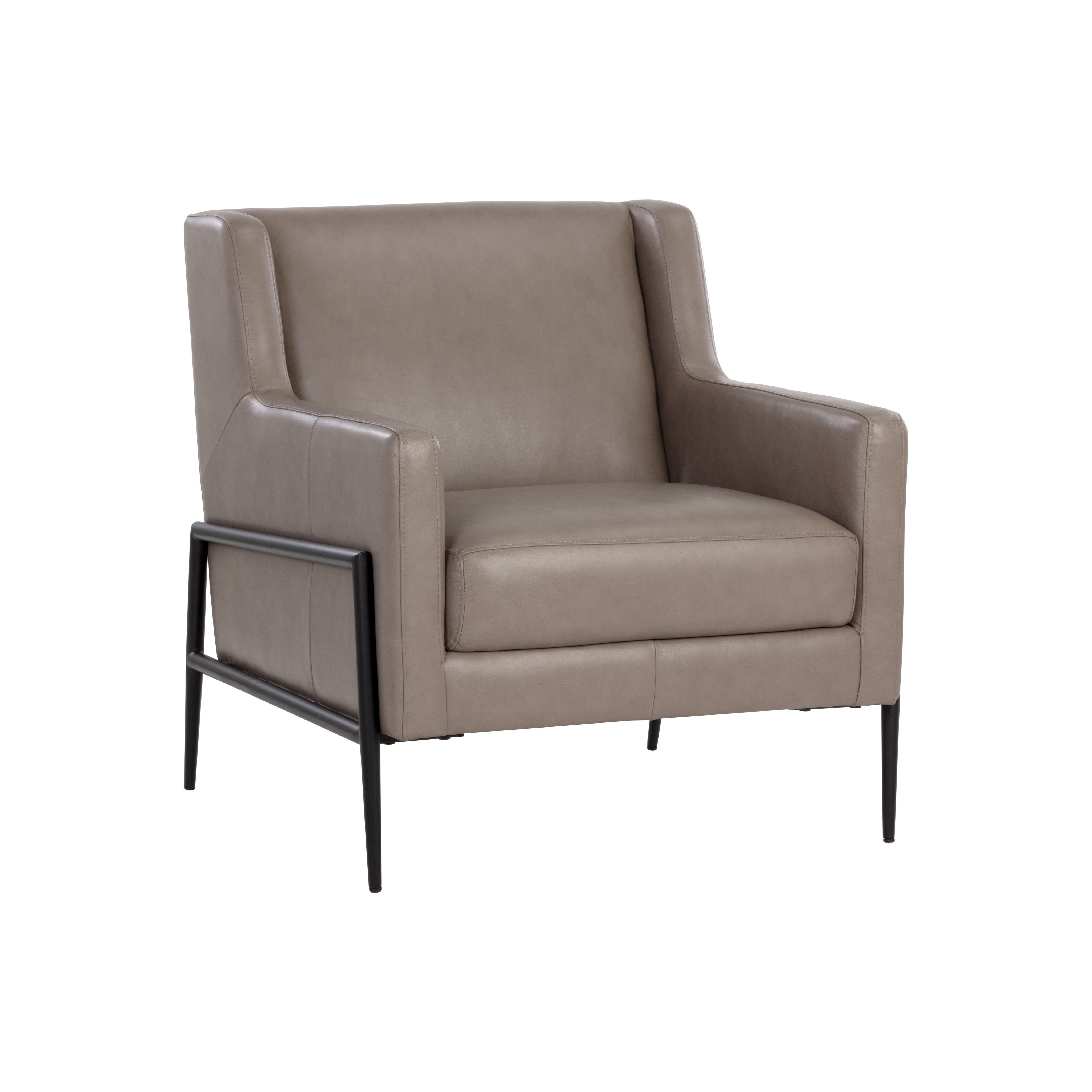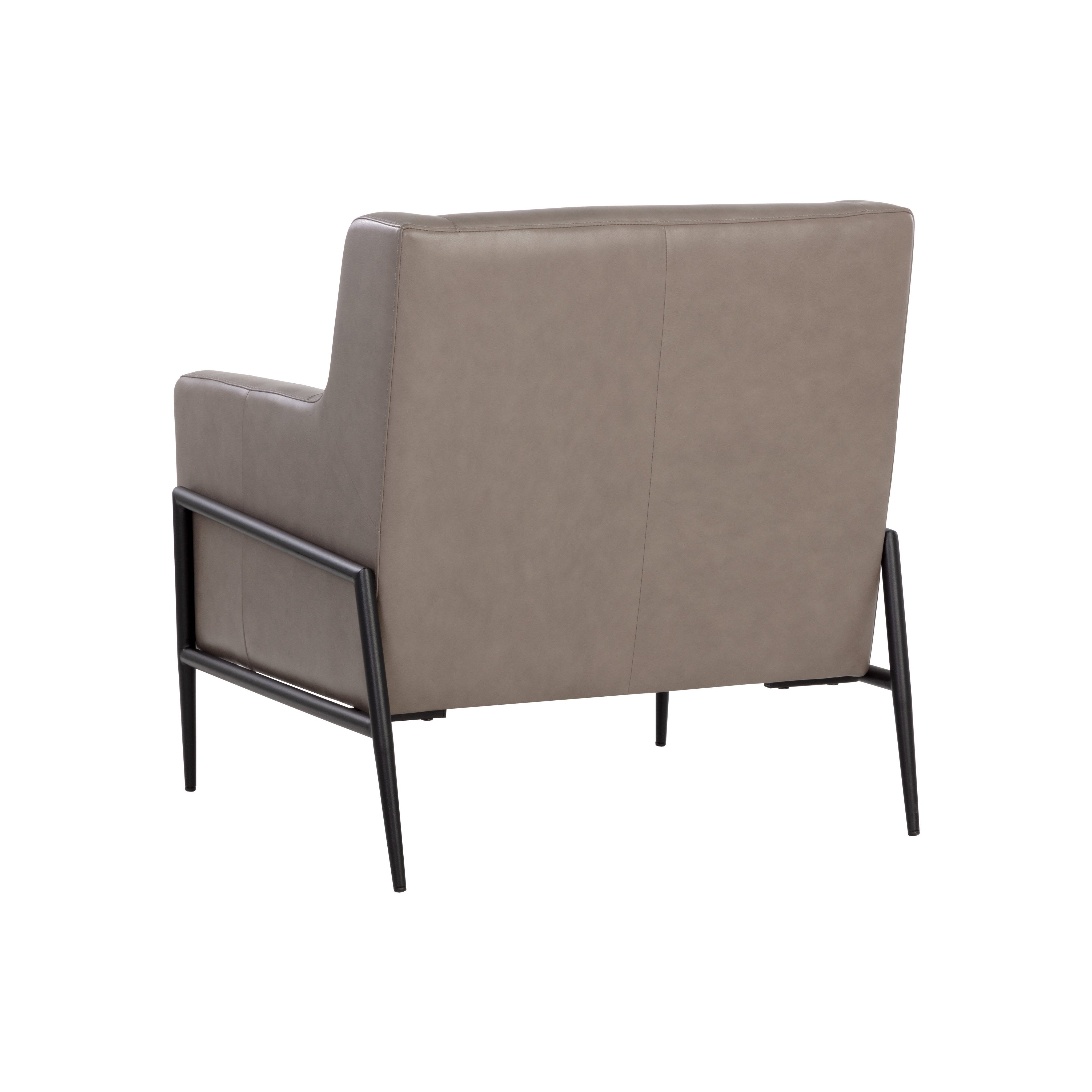 Introduce comfort to any space with this modern lounge chair. Upholstered in alpine grey Italian bovine leather and completed with a black powder coated steel frame.