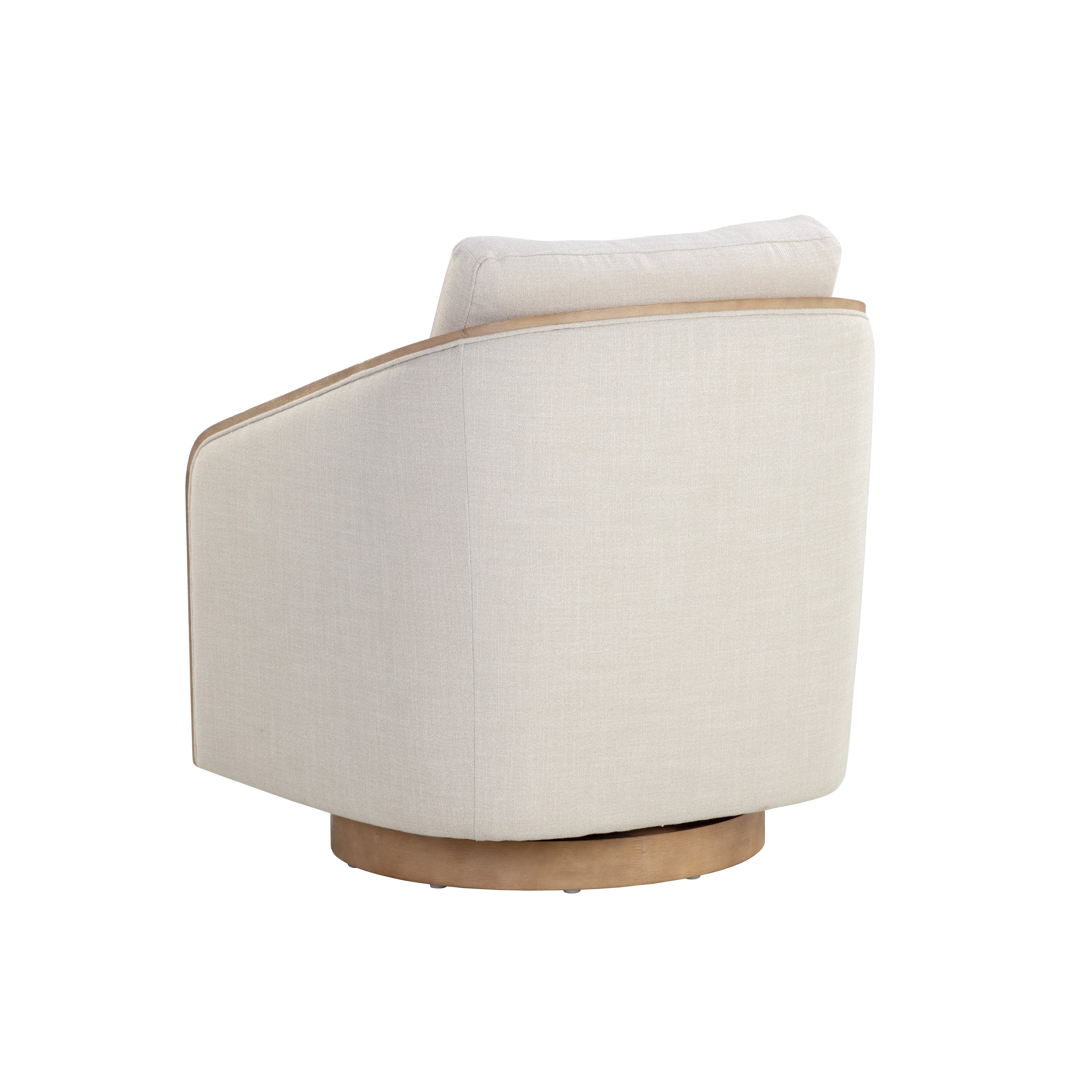 The Tasia Swivel Lounge Chair boasts a contemporary design that will fit into any living space. Upholstered in our effie linen fabric with an exposed natural birch wood frame and base. As wood is an organic, porous material, these pieces will contain natural variation of texture and may also exhibit fine indentations and cracks. Wood pieces will also display a disparity of colour and grain, and visible knots and burls that add to the character of each piece.