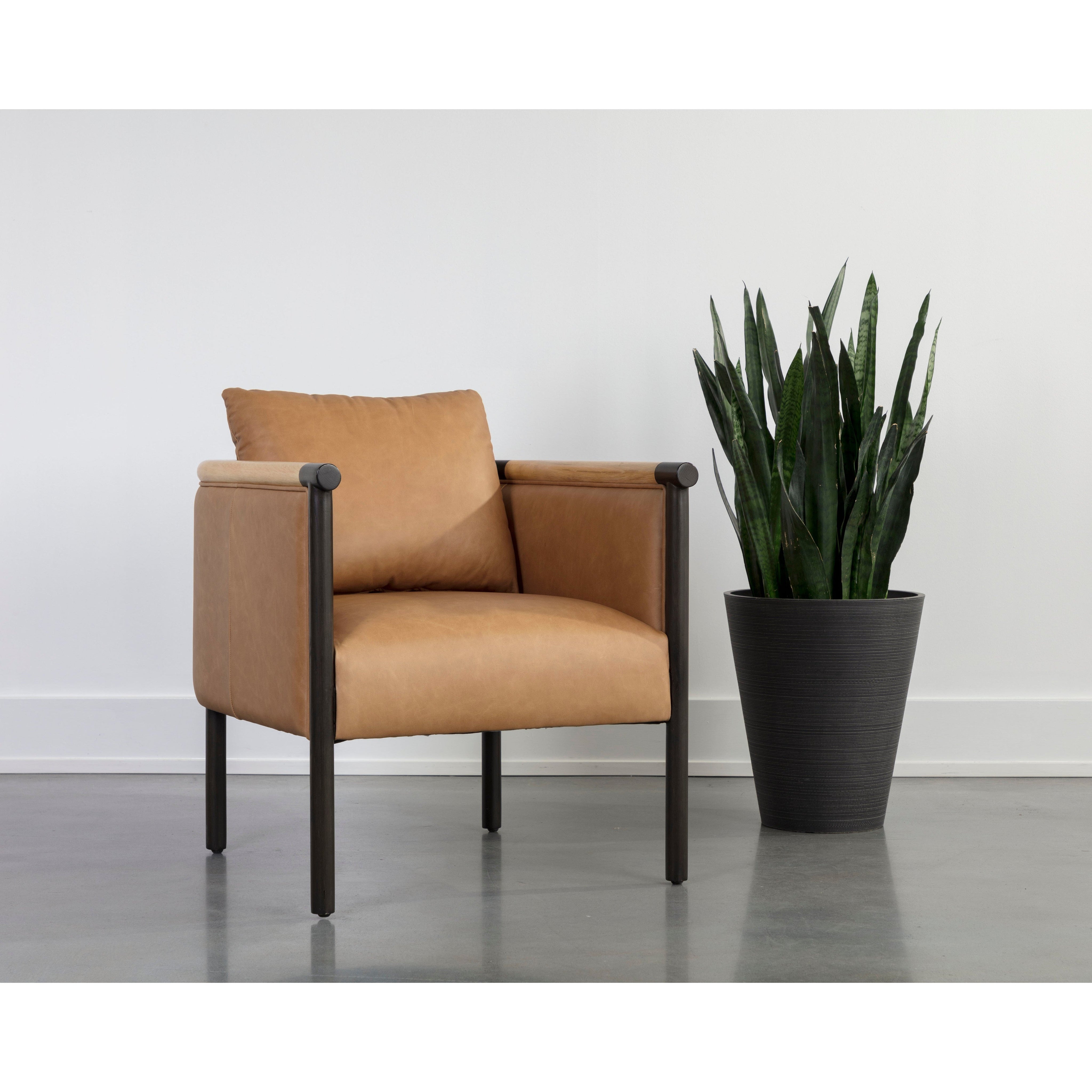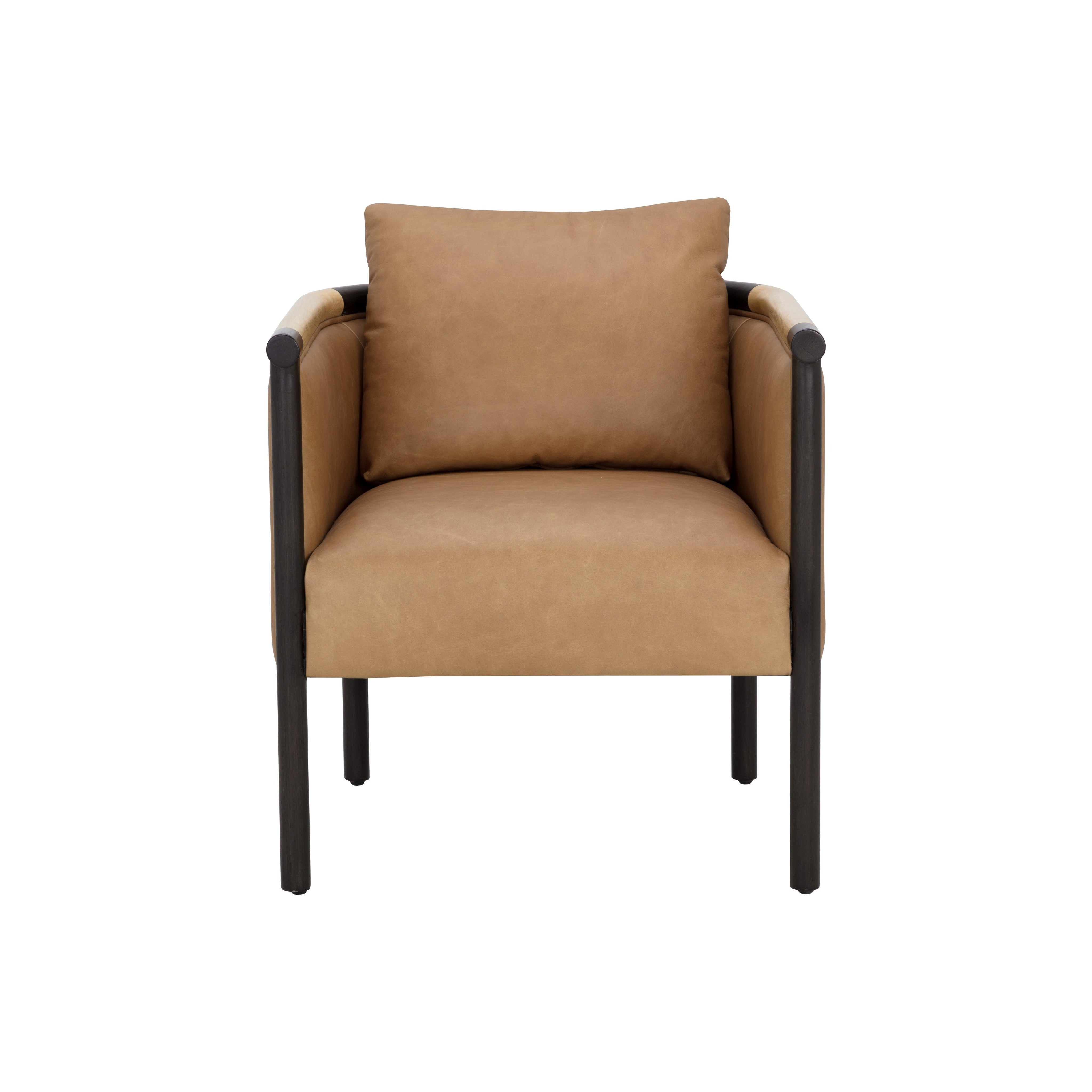 The generous curves of the Wilder Lounge Chair provide inviting comfort for ultimate relaxation. Featuring two tone armrests in contrasting black and rustic oak wood and upholstered in luxurious ludlow sesame leather. Handle with Care: This design has been crafted with top grain leather. Leather is a natural material; as such, colour variations, markings, wrinkles, grooves and light scratches are acceptable and appreciated characteristics. No two pieces are alike. Visit our Product Care page for more information on how to ensure the lasting beauty of this piece. As wood is an organic, porous material, these pieces will contain natural variation of texture and may also exhibit fine indentations and cracks. Wood pieces will also display a disparity of colour and grain, and visible knots and burls that add to the character of each piece.