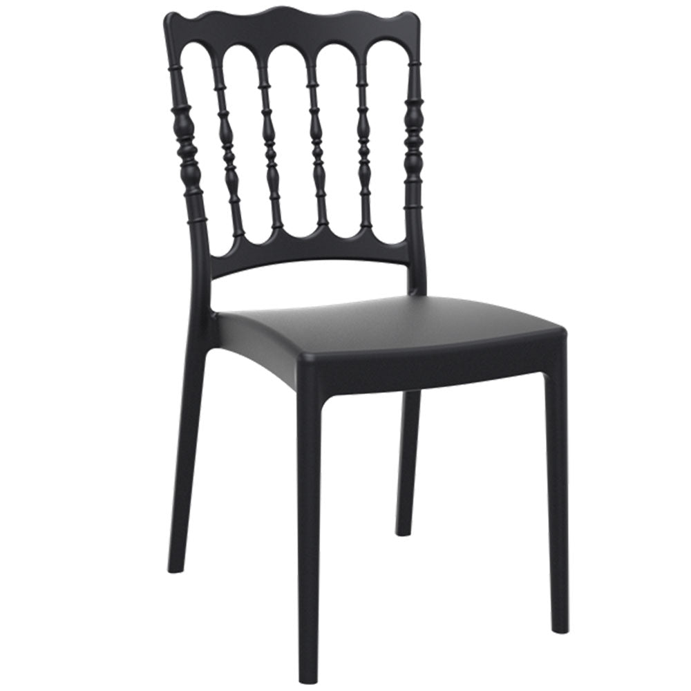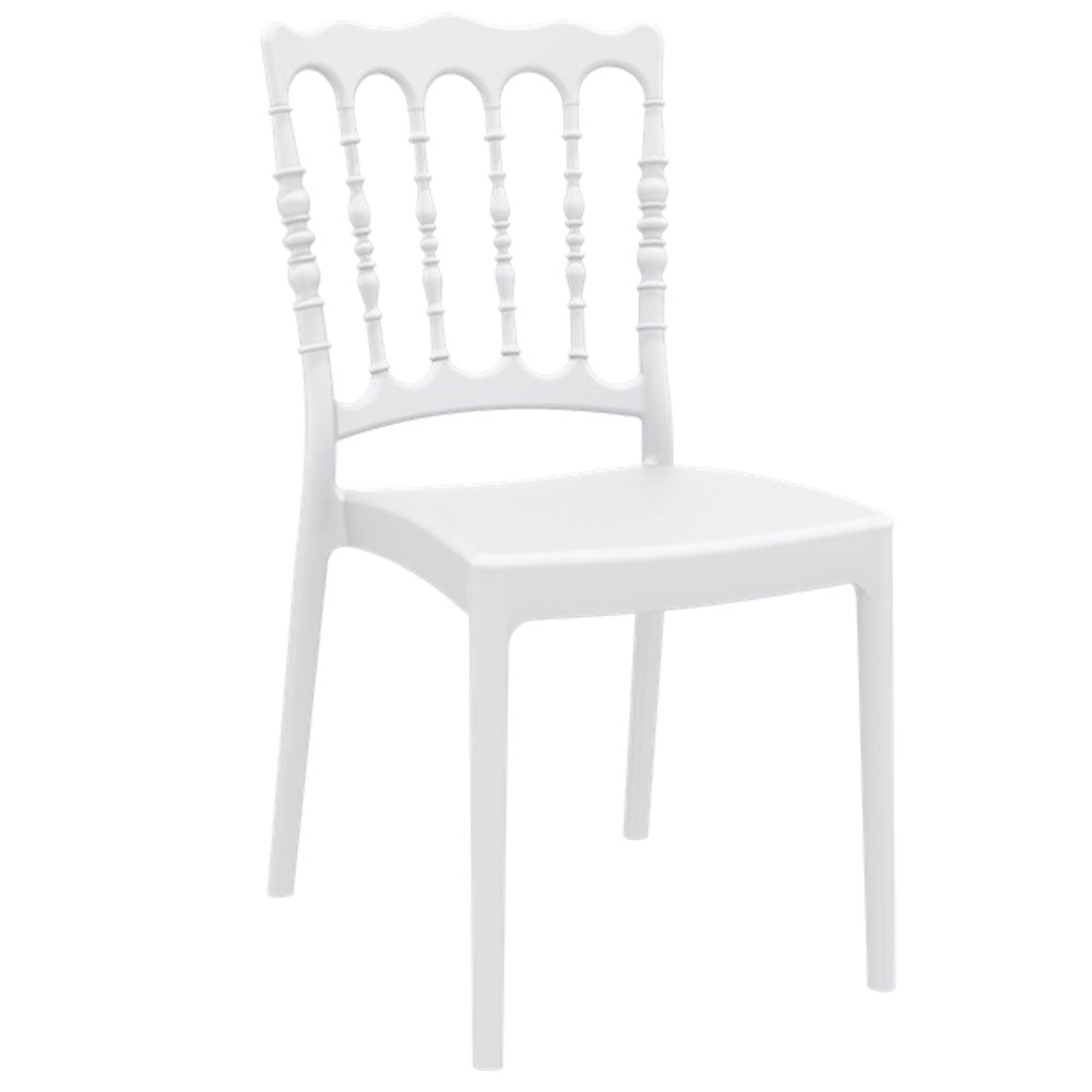 Napoleon wedding chair is produced with a single injection of polypropylene reinforced with glass fiber obtained by means of the latest generation of air moulding technology with neutral tones. For indoor and outdoor use.