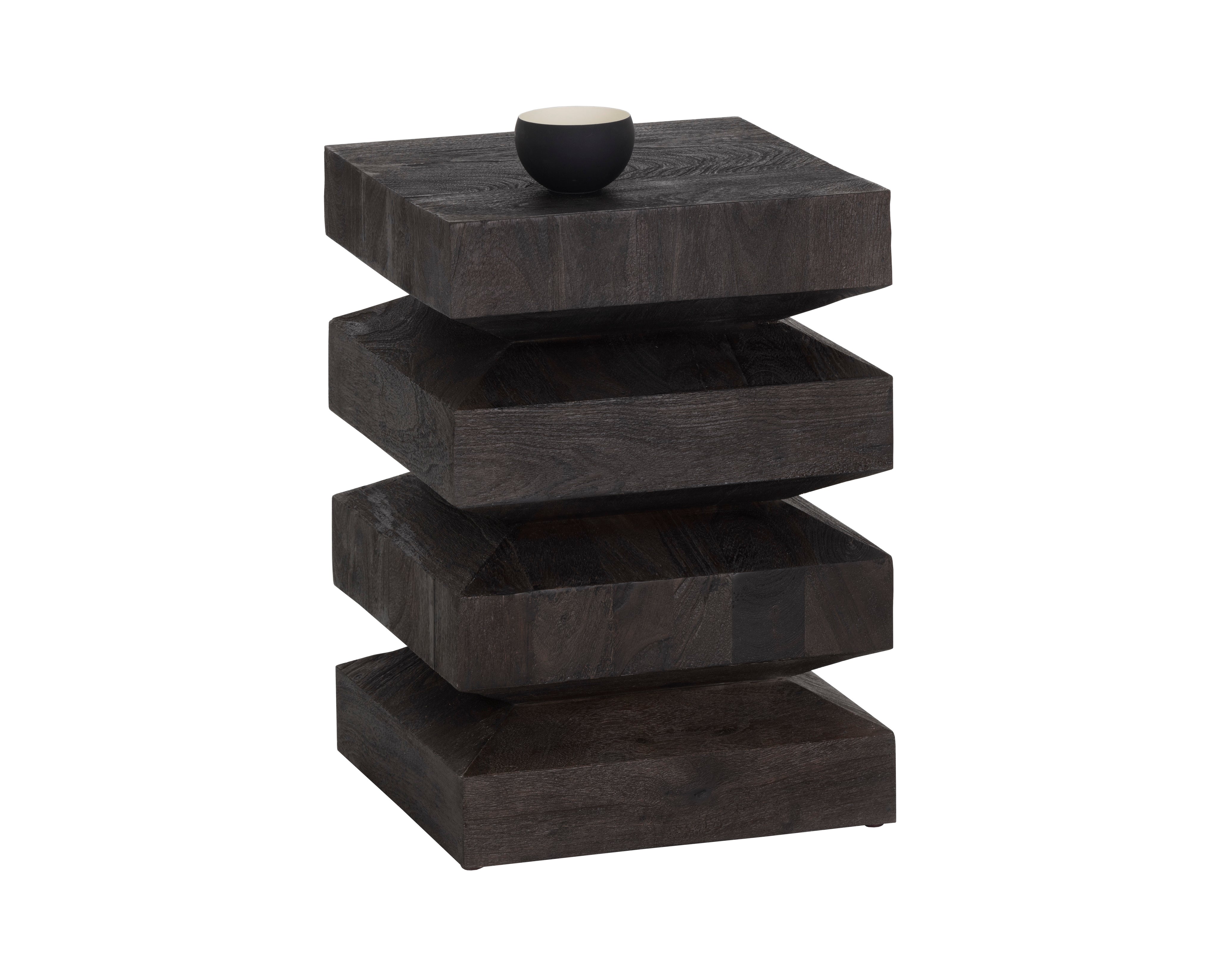 Make a bold statement with the Cormac End Table. Handcrafted from dark brown acacia wood, this piece makes the perfect addition to living, lounge and bedroom spaces. As wood is an organic, porous material, these pieces will contain natural variations of texture and may also exhibit fine indentations and cracks. Wood pieces will also display a disparity of colour and grain, and visible knots and burls that add to the character of each piece. Made in India. With refined craftsmanship, this design was brought to life by skilled local artisans. Due to the nature of handcraftsmanship, unique imperfections such as fissures, markings and variations in colour and shape are welcomed and appreciated characteristics for a truly one-of-a-kind piece.
