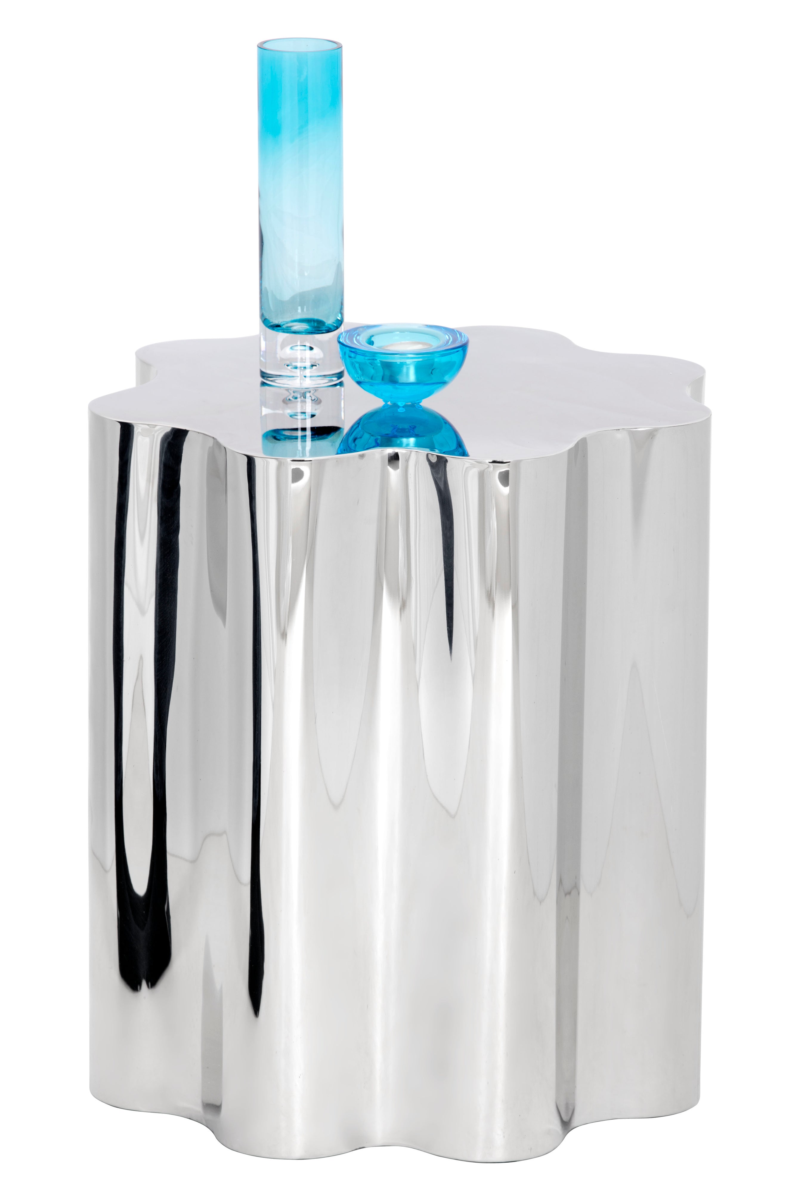 The Dahlia End Table is all about curves. Crafted from gold ombre stainless steel with a floral inspired design. An elegant and eye-catching piece to elevate any living space.