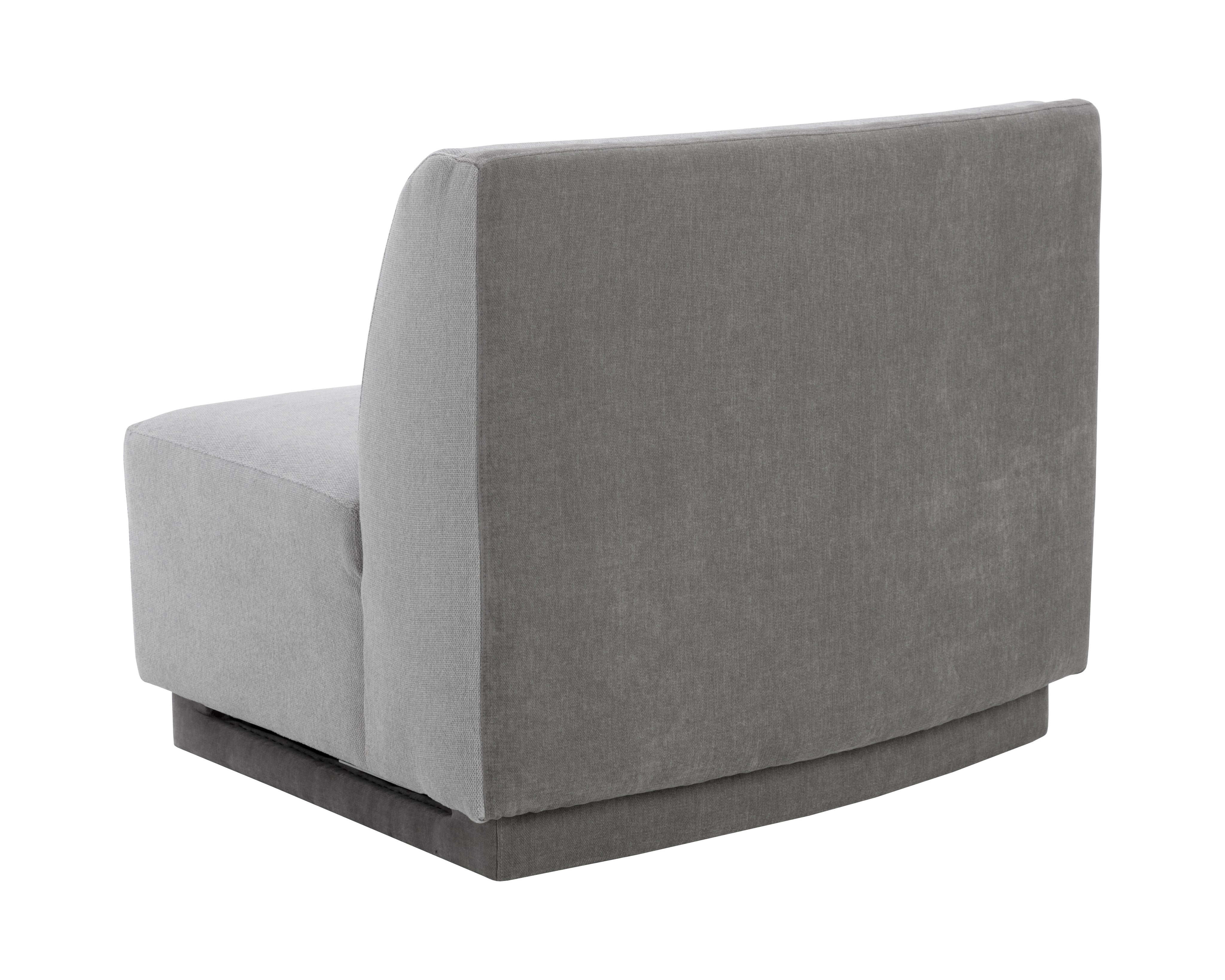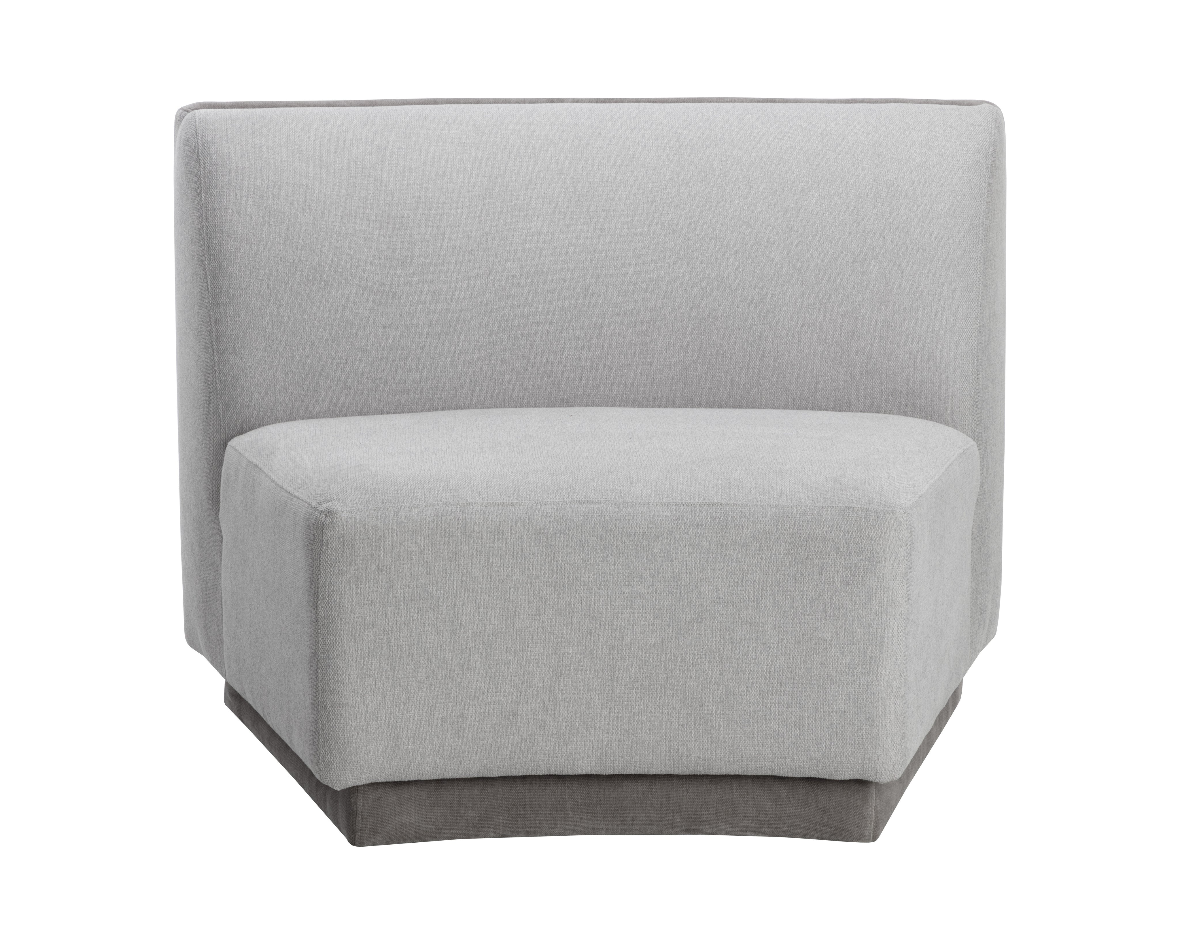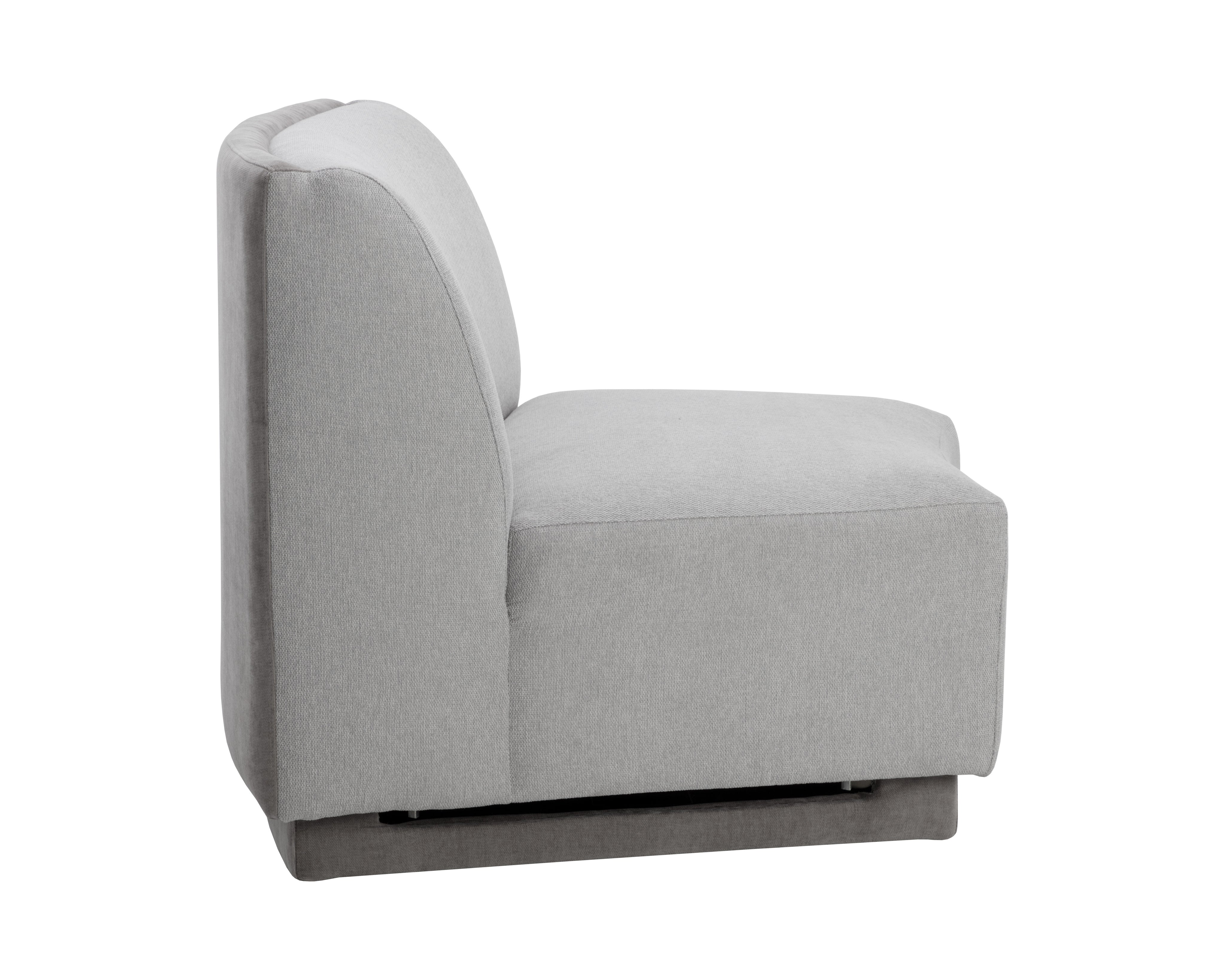 Infuse comfort into any space with this curvy, modular armless chair that offers versatility in its placement. Stocked in danny dusty blue fabric and completed with a pine wood frame. This piece can be sourced alone or in a variety of combinations with the coordinating Jaclyn left armchair and right armchair.