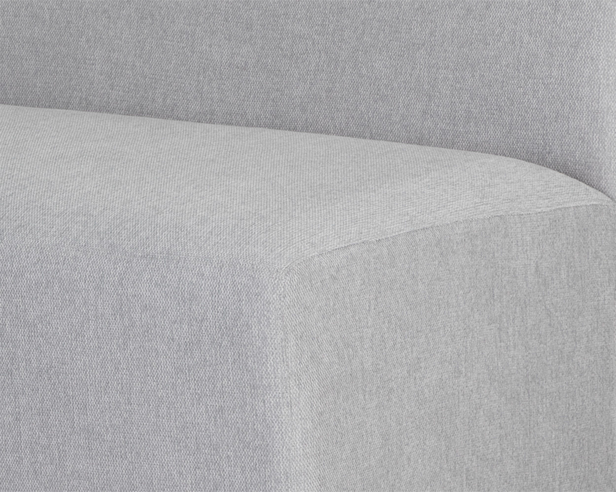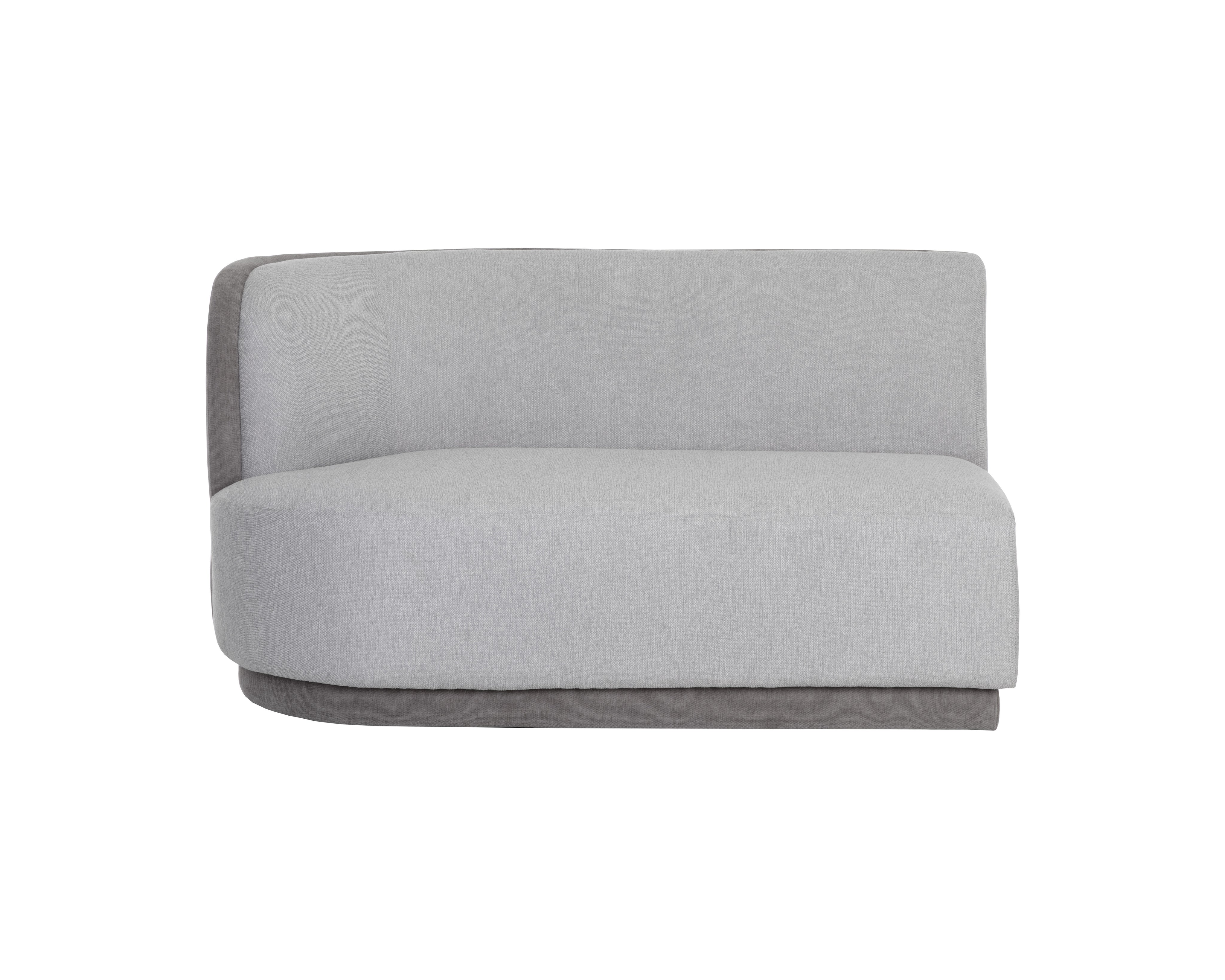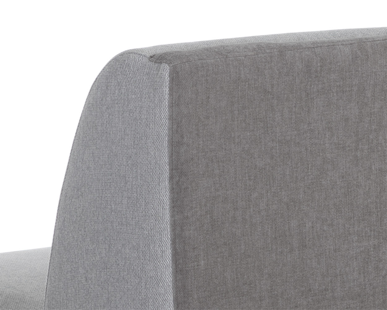 Infuse comfort into any space with this curvy, modular left armless chair that offers versatility in its placement. Stocked in danny dusty blue fabric and completed with a pine wood frame. This piece can be sourced alone or in a variety of combinations with the coordinating Jaclyn armless chair and right armchair.