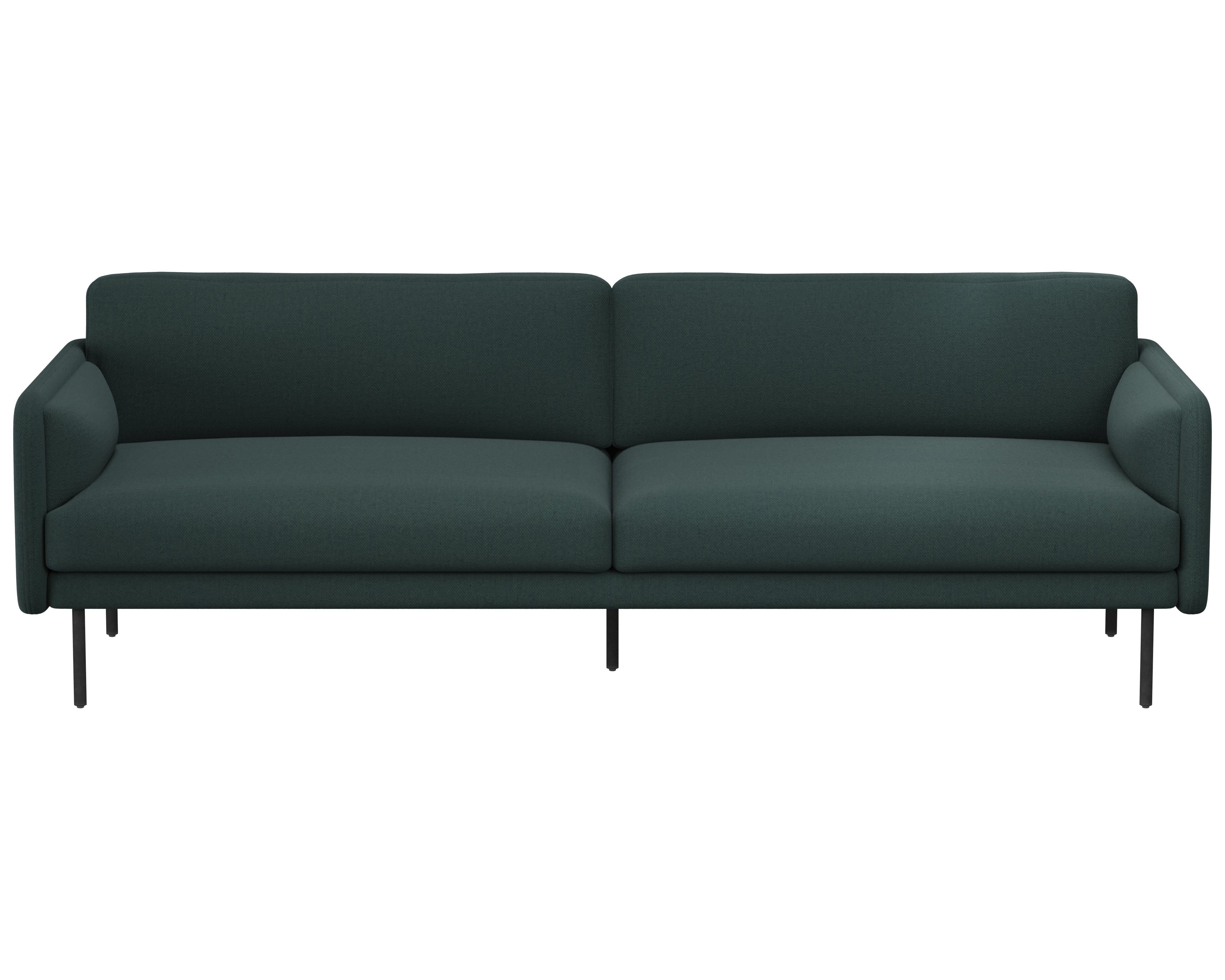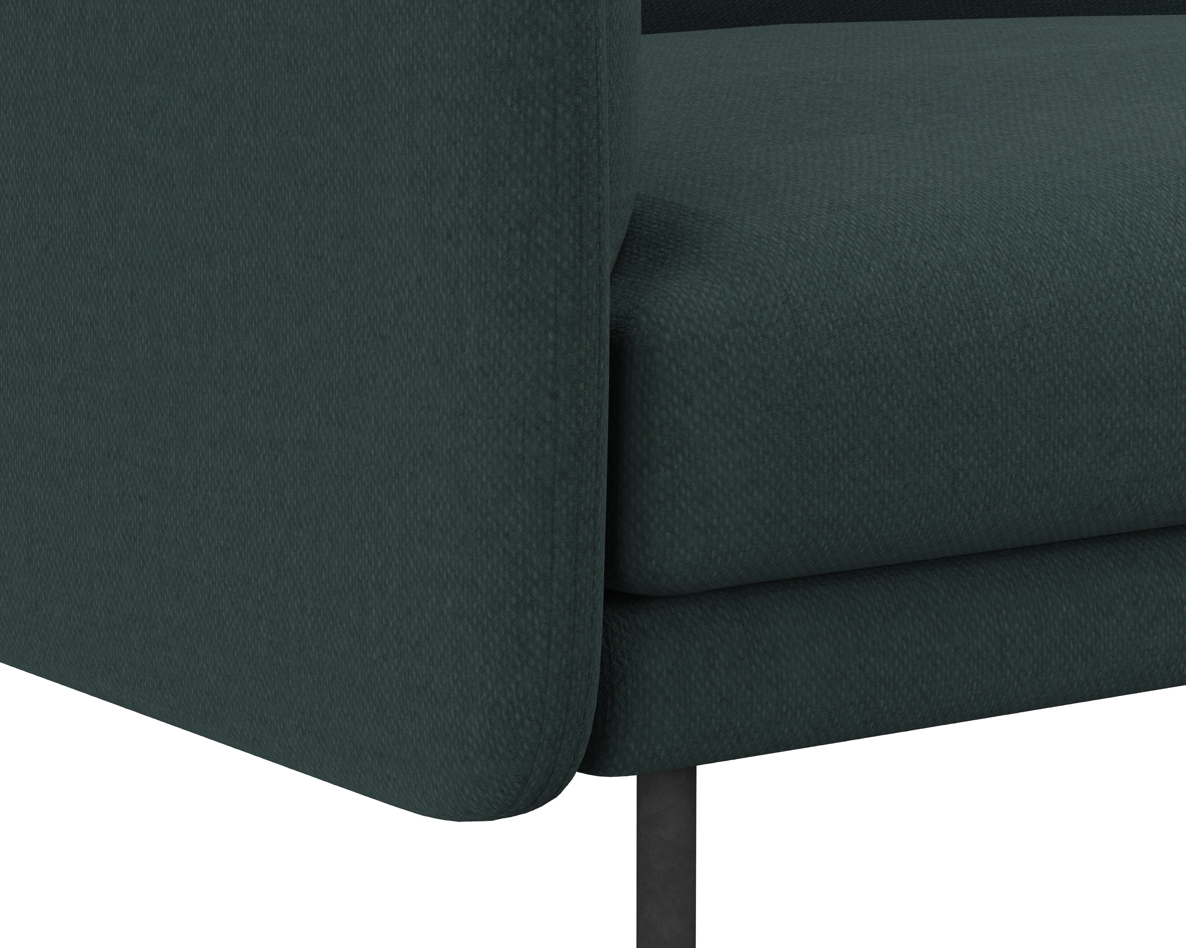 A classic and comfortable sofa that takes inspiration from mid-century designs. Stocked in mina ivory and pine fabrics with generously-cushioned seating. Completed with black metal legs. Coordinating armchair also available.