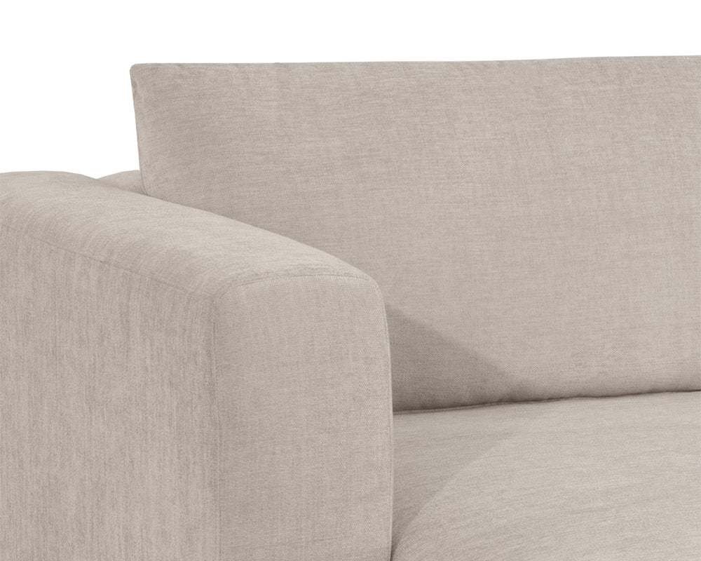 This contemporary sofa chaise features a low-profile design with a structured silhouette. A comfortable design with a left hand facing chaise. Stocked in danny cream and navy fabric. Also available with a right hand facing chaise.