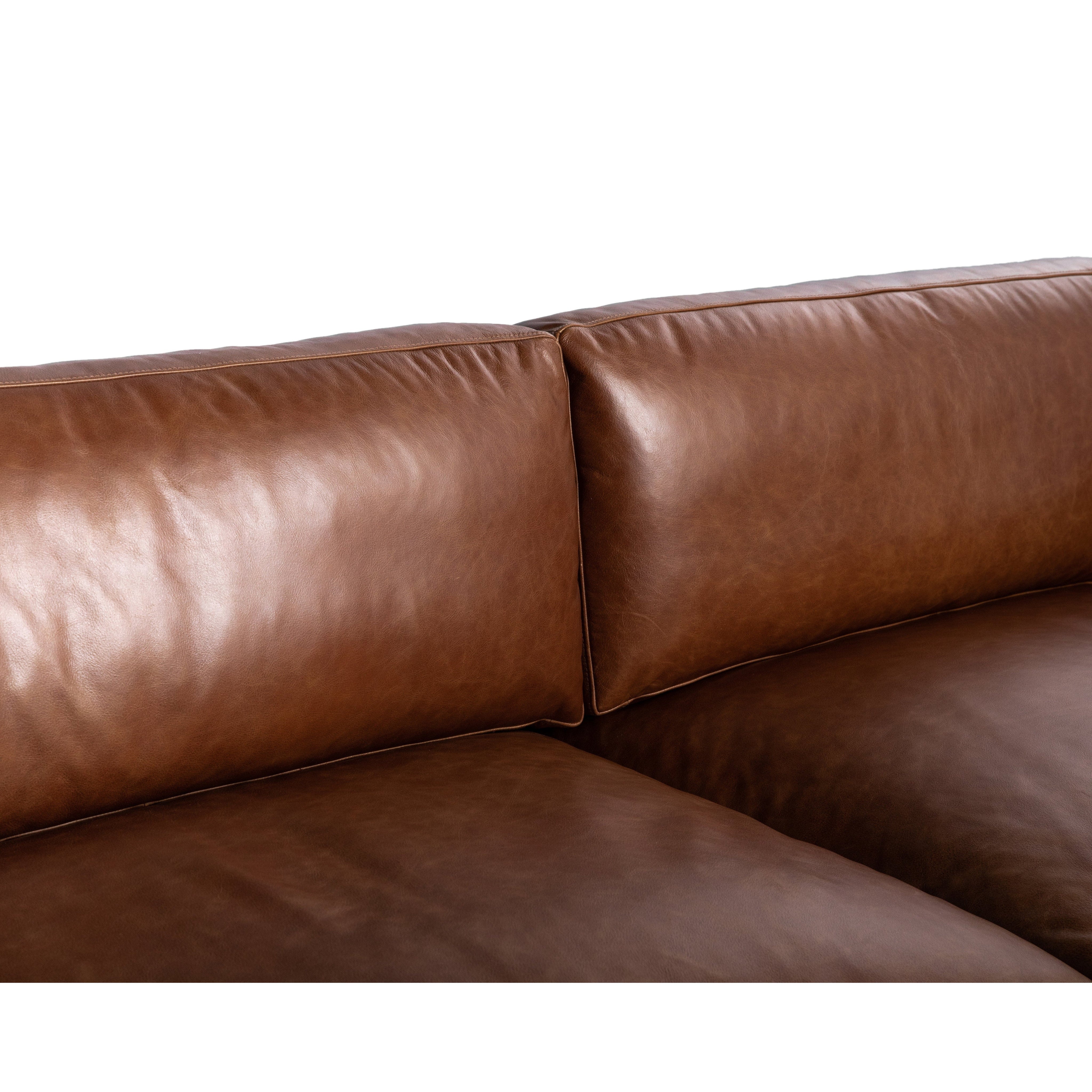 A stylish, retro-inspired sofa. The masculine design features a comfortable seat in shalimar tobacco leather with dark brown solid oak wood legs.