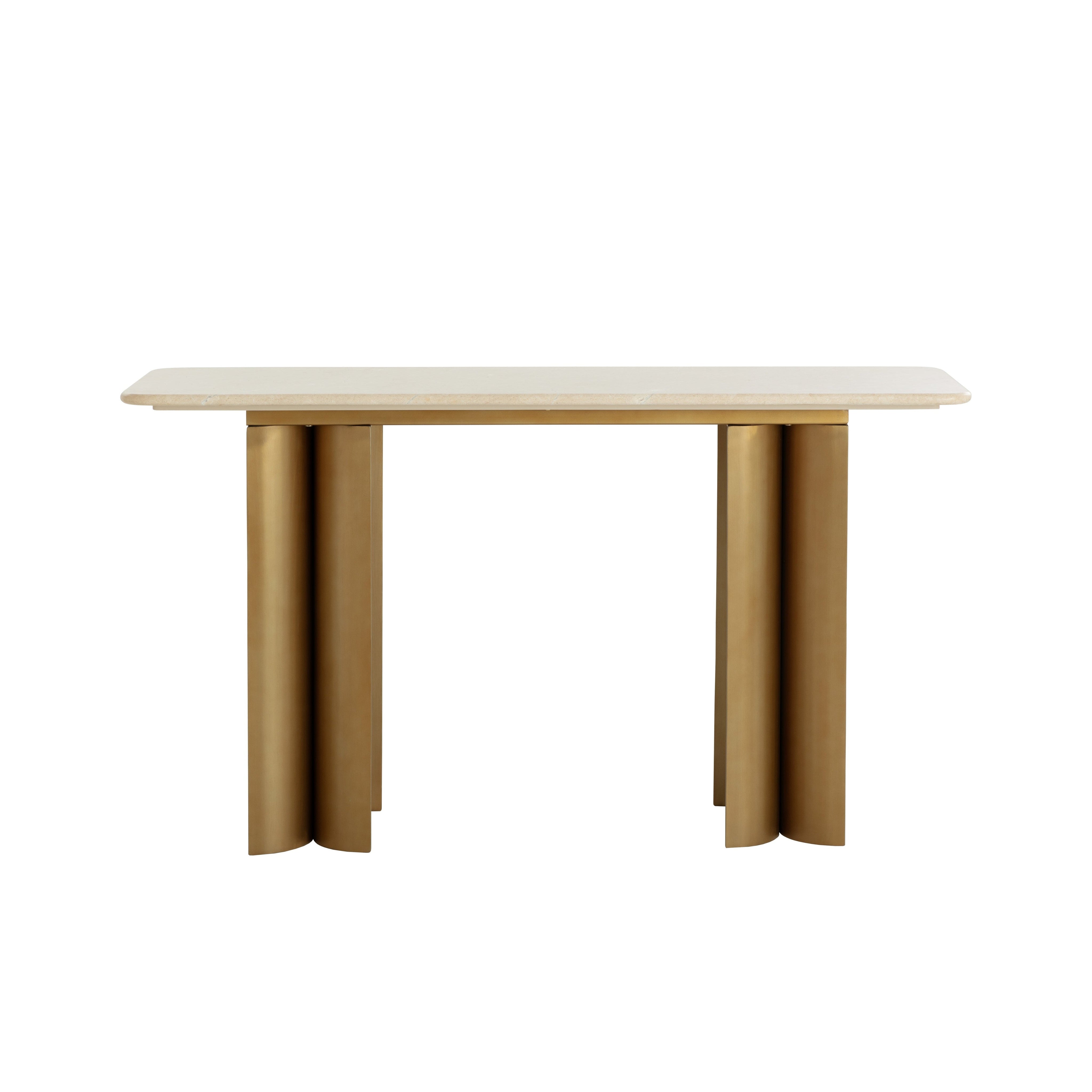 The luxuriant materials of the Astara Console Table bring a mesmerizing feel that will transform any space. A beautiful cream marble table top paired with brushed antique gold stainless steel legs lend an appreciation for sophisticated modern style.