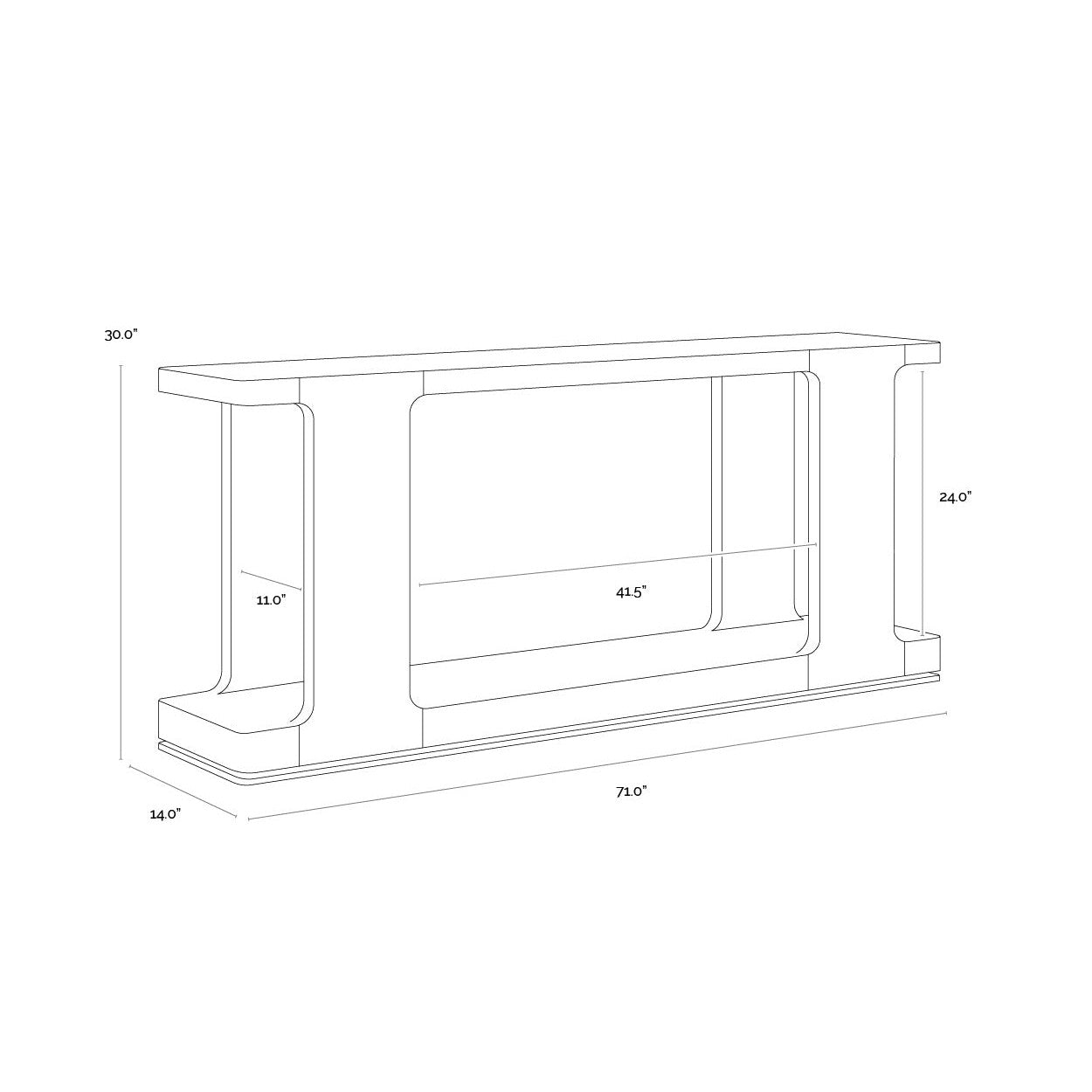 The Hercules Console Table is a seamless union of flared curves and precise lines that lend a refined, architectural silhouette. Expertly crafted from reclaimed oak veneer, each piece retains the natural knots, cracks, and graining found in wood to bring enhanced texture and distinct character to the design.