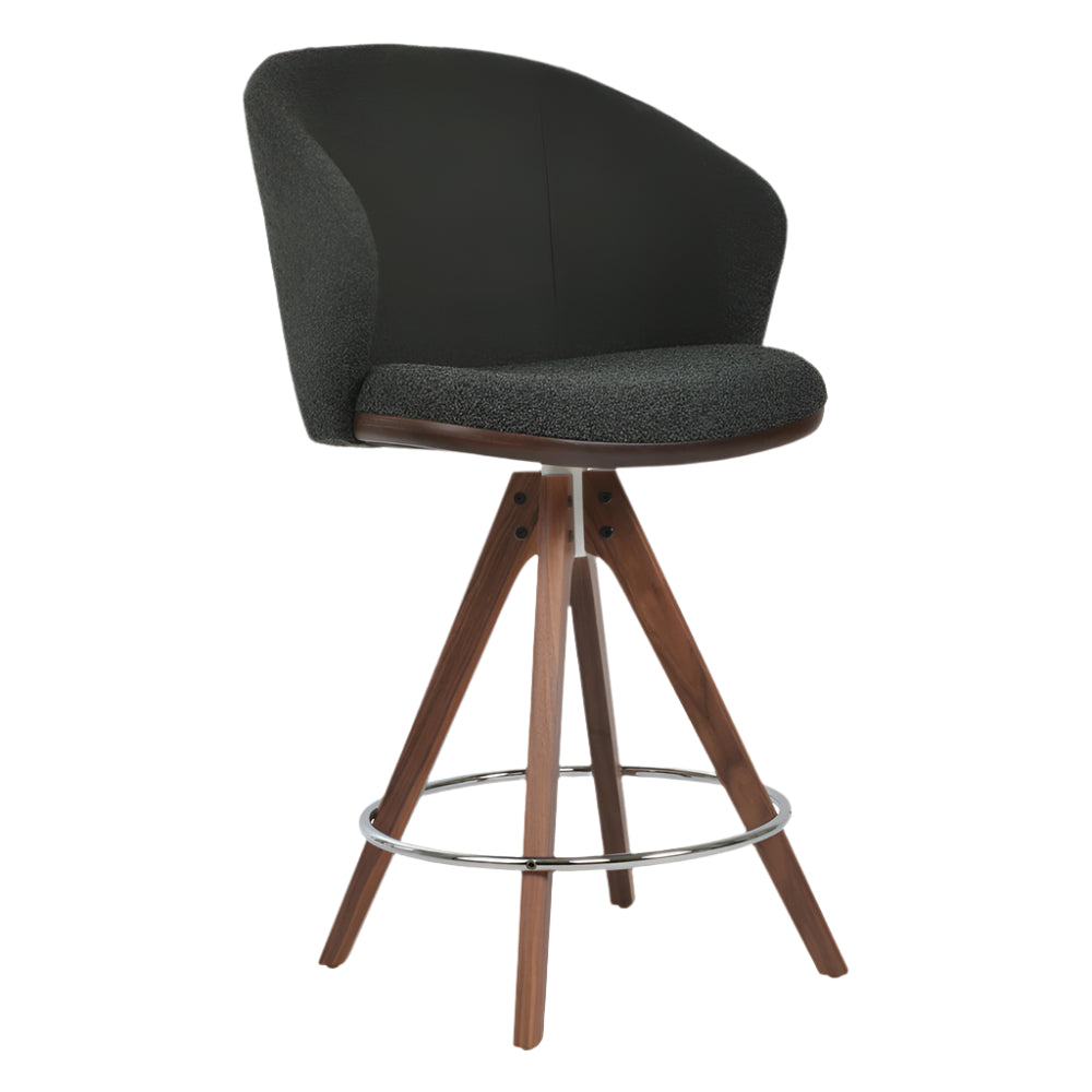 Athena Pyramid is a contemporary stool with a comfortable upholstered seat and backrest on wood legs available in walnut and natural finish. The seat has a steel structure with “S” shape springs for extra flexibility and strength. This steel frame molded by injecting polyurethane foam. Athena seat is upholstered with a removable zipper enclosed leather, PPM, leatherette or wool fabric slip cover. This contemporary stool is suitable for both residential and commercial use.