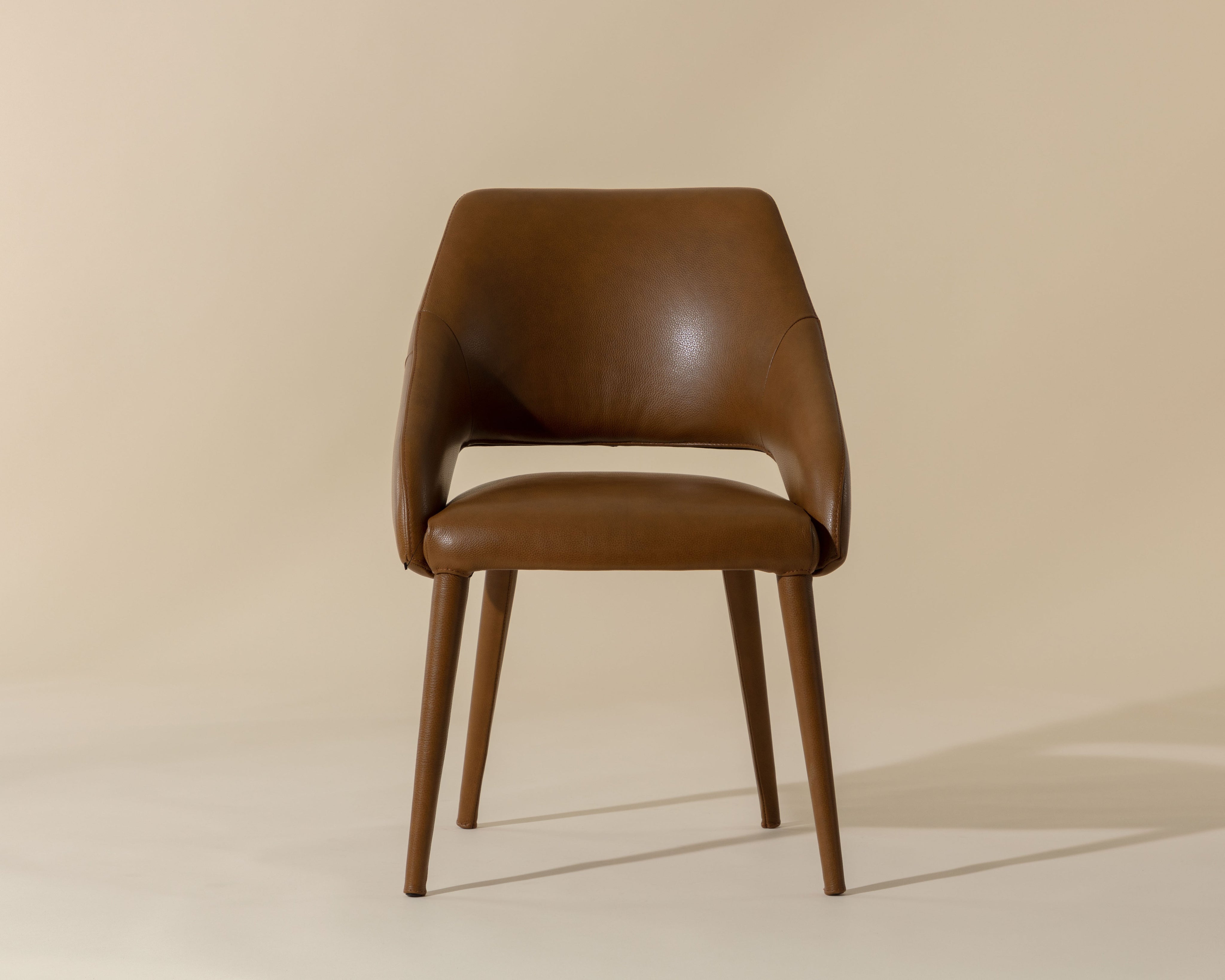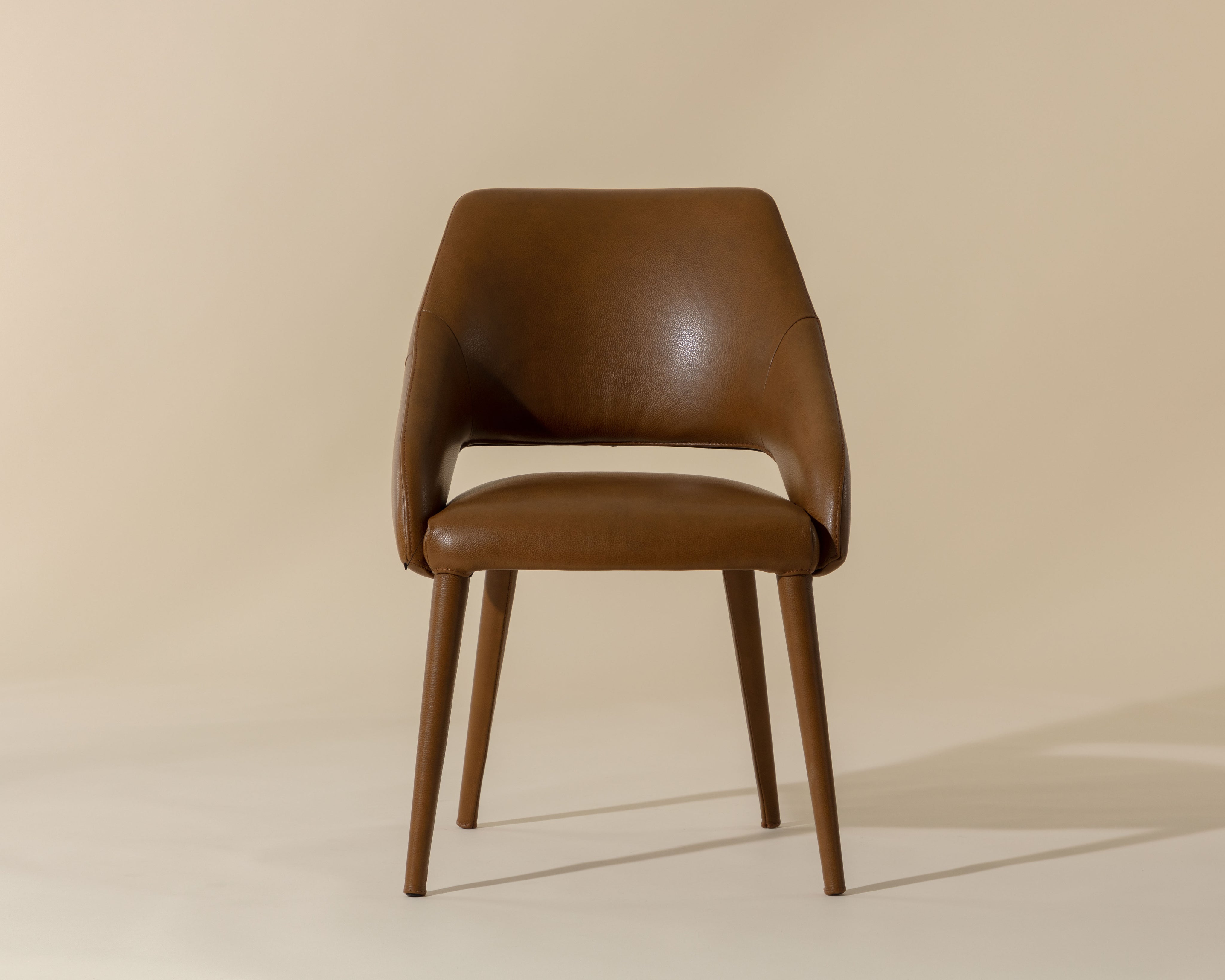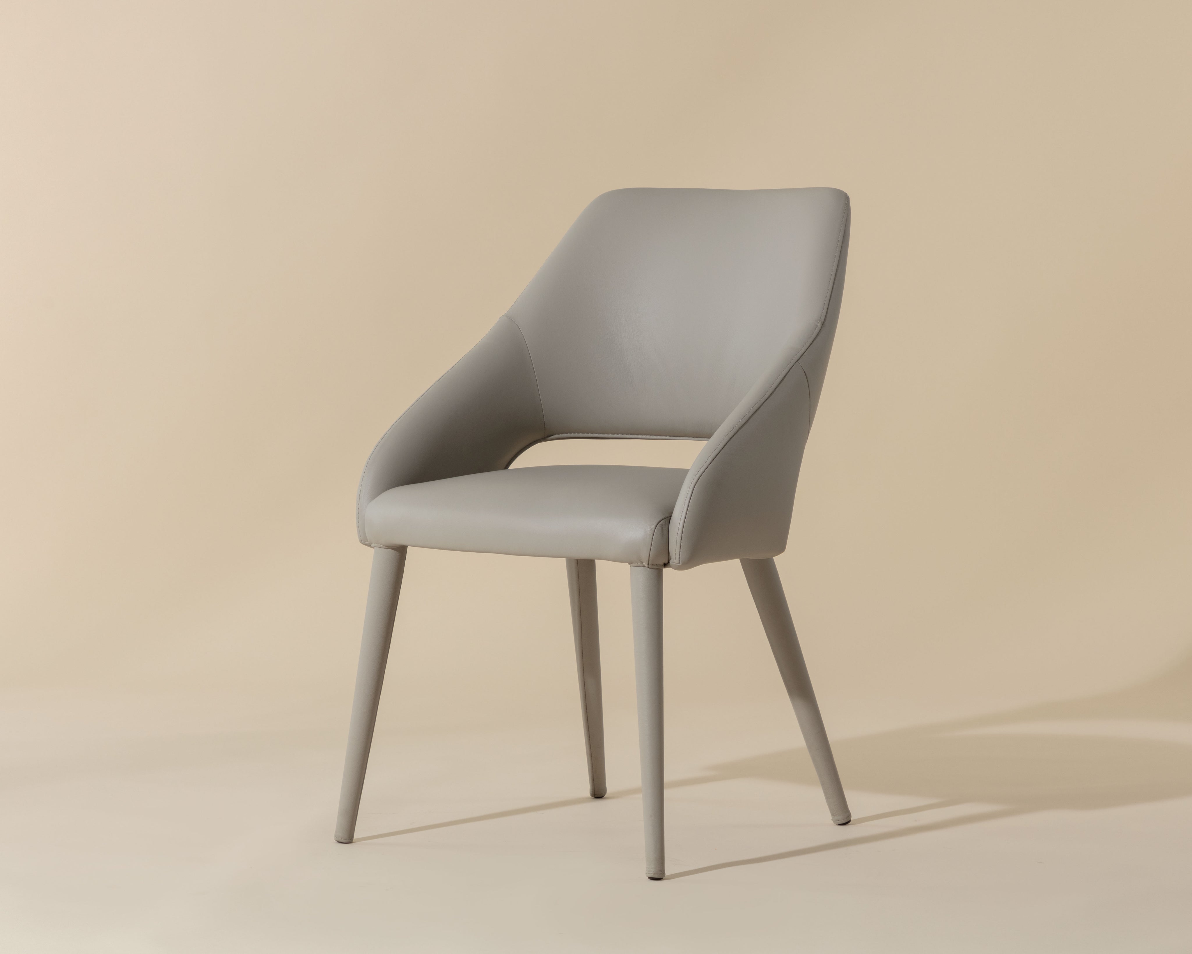 With a modern and monochromatic design, the Galen Dining Armchair will stun in any dining space. Fully upholstered in linea light grey leather, its minimal profile features sloped arms and a cutout back rest for everyday comfort. Handle with Care: This design has been crafted with 100% leather. Leather is a natural material; as such, colour variations, markings, wrinkles, grooves and light scratches are acceptable and appreciated characteristics. No two pieces are alike. Visit our Product Care page for more information on how to ensure the lasting beauty of this piece.