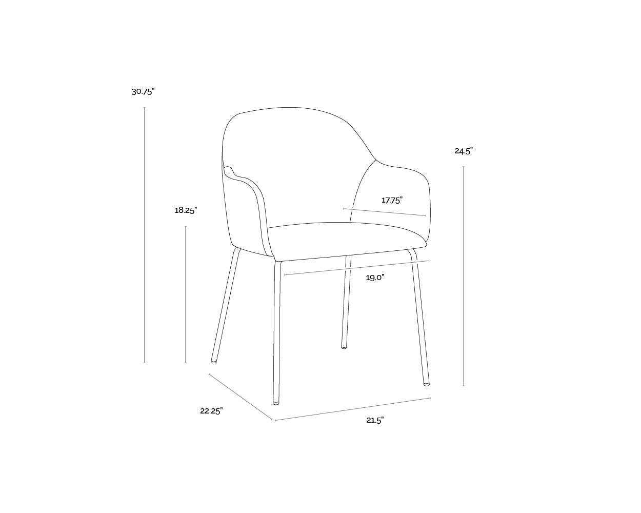 A clean and scompact dining armchair that features a modern and urban style. Stocked in dark teal faux leather and completed with powder-coated metal legs in a matte black finish. Handle With Care: This design has been crafted with faux leather. Faux leather is manufactured to reflect the natural characteristics of leather; as such, colour variations, markings wrinkles, grooves, and light scratches are appreciated characteristics. No two pieces will be alike. Visit our Product Care page for more information on how to ensure the lasting beauty of this piece.