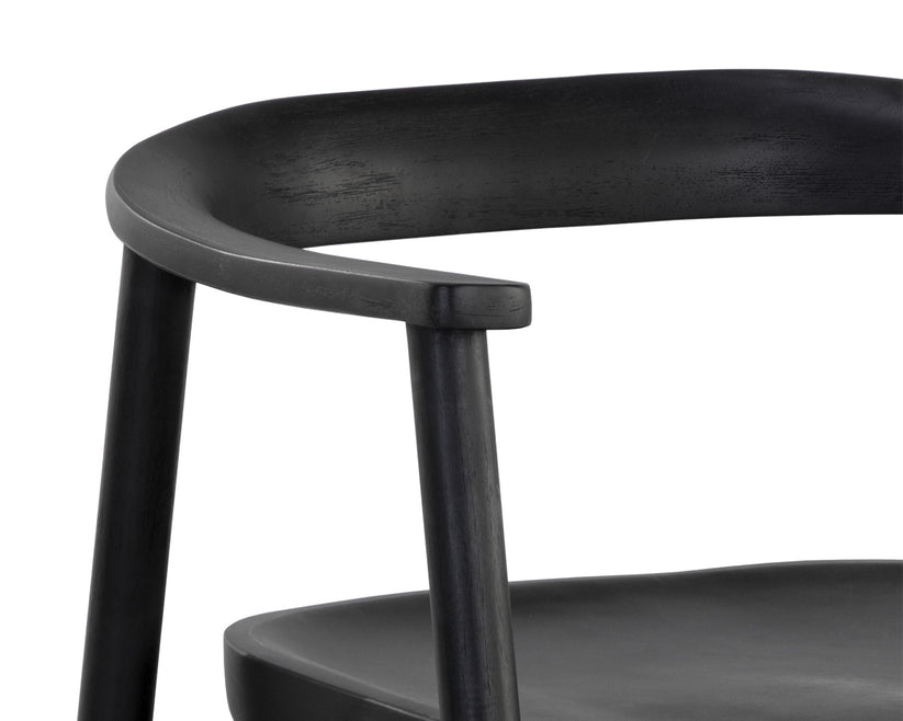 An alluring mid-century dining armchair that embraces the beauty of simplicity. Expertly crafted from black acacia wood for a sleek look. As wood is an organic, porous material, these pieces will contain natural variation of texture and may also exhibit fine indentations and cracks. Wood pieces will also display a disparity of colour and grain, and visible knots and burls that add to the character of each piece.
