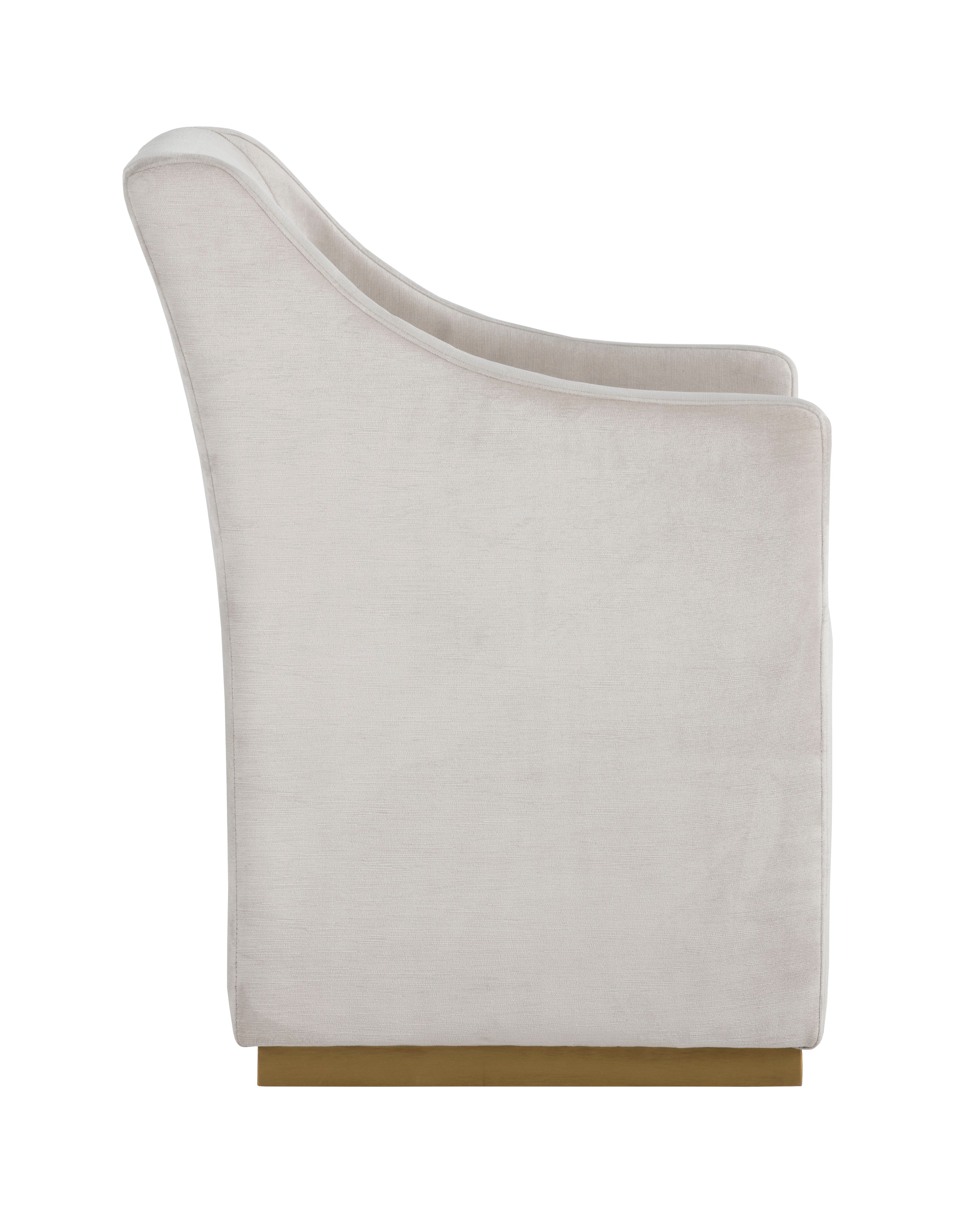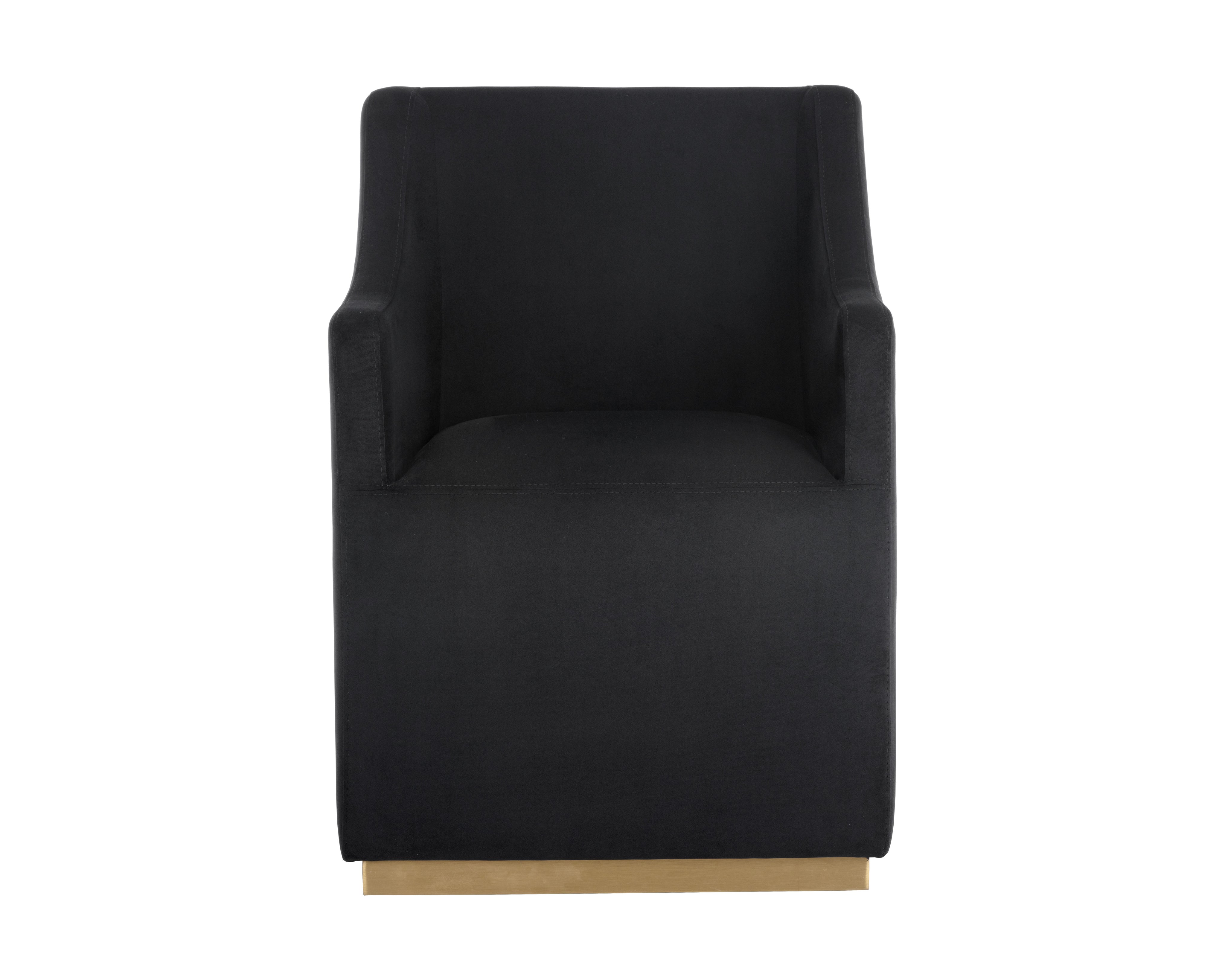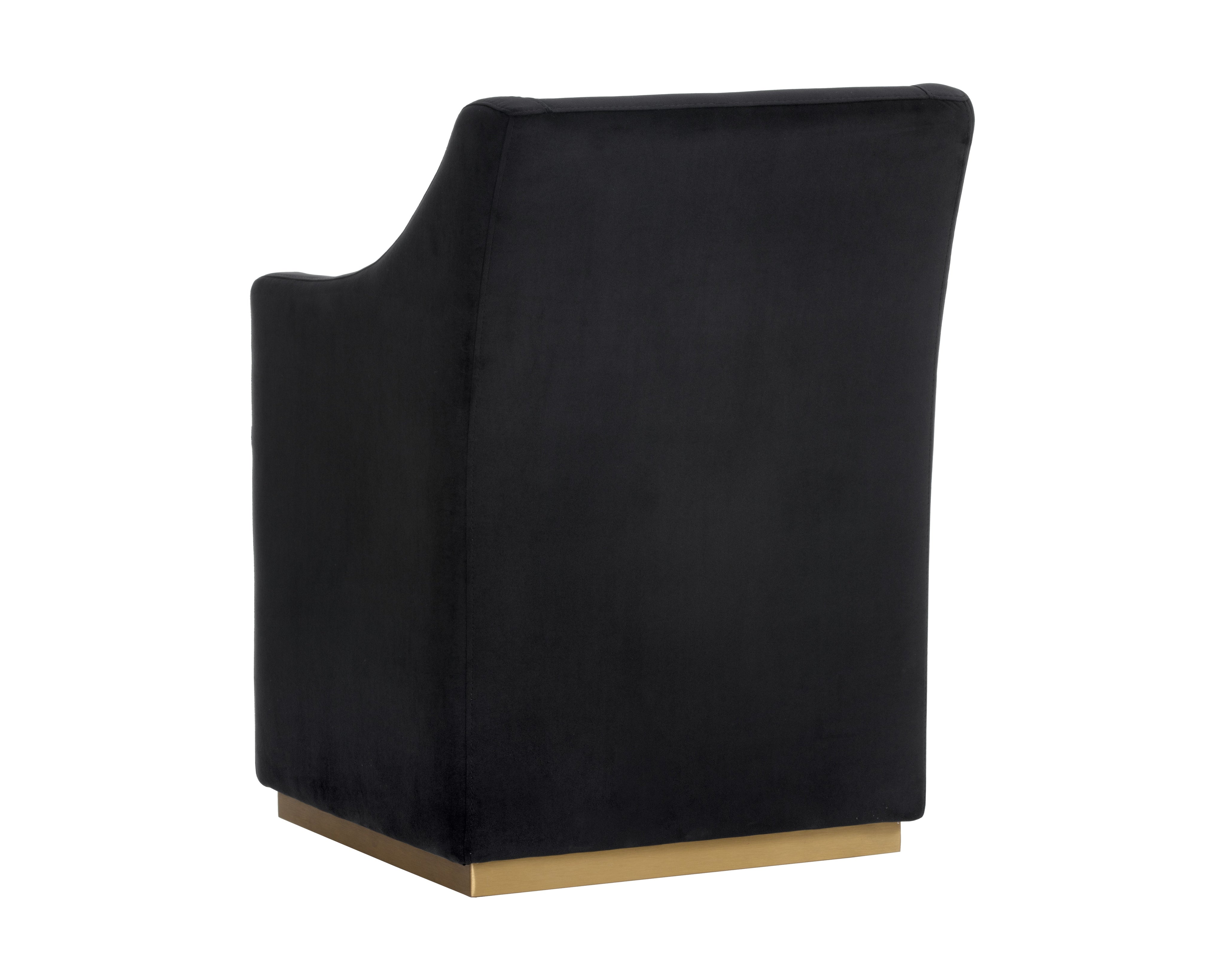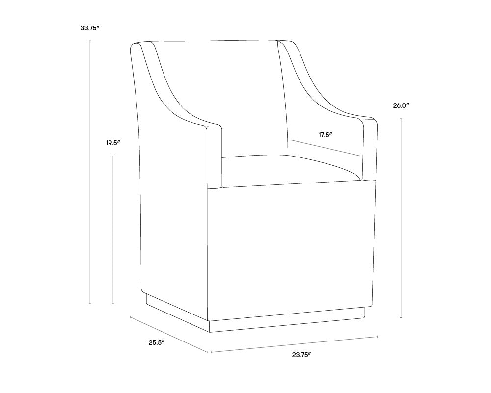 An eye-catching, ultra glamourous wheeled dining chair. Sophistication and comfort fit for various dining and lounge spaces.
