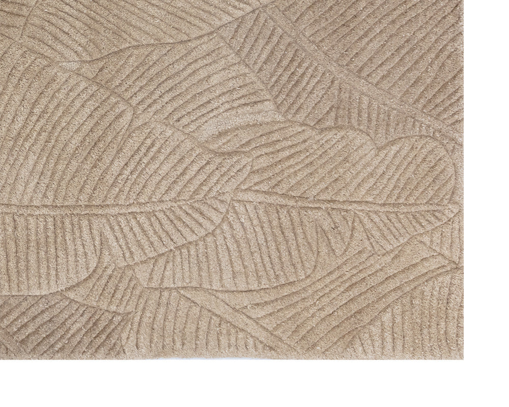 Introduce an understated tropical element to your space with this hand-tufted rug featuring a pattern reminiscent of large palm leaves. Available in oatmeal and sand, and in four sizes. Variations in colour, design and size are to be expected and embraced in each rug due to the distinctive weaving process followed by each artisan, resulting in a truly one-of-a-kind piece. Shedding is inherent to wool rugs and will subside over time with regular vacuuming.