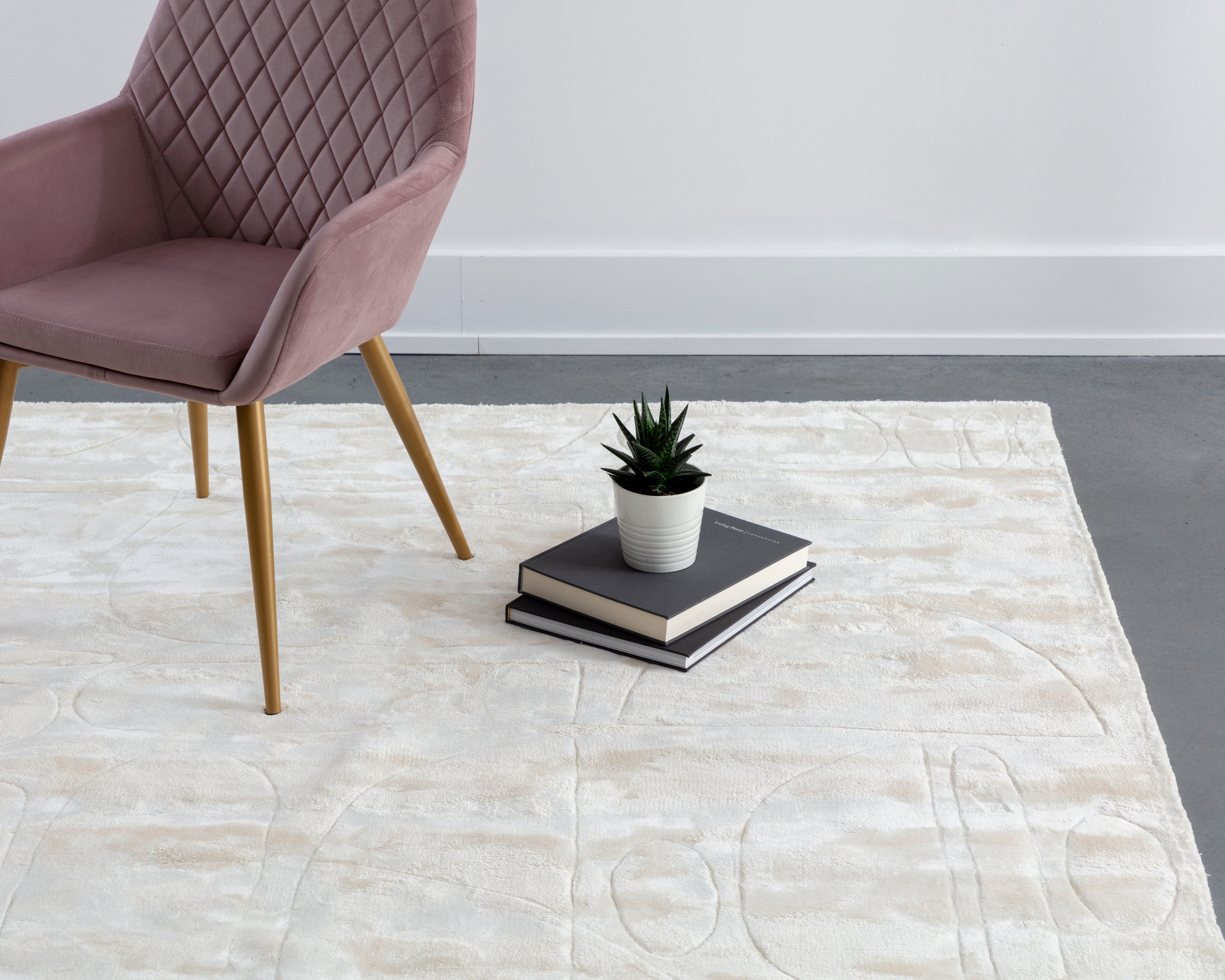 Crafted by local artisans, this hand-loomed rug has a rich texture with a velvety soft finish. Made with cream and ivory viscose with unique patterning featuring organic shapes. Available in four sizes. Variations in colour, design and size are to be expected and embraced in each rug due to the distinctive weaving process followed by each artisan, resulting in a truly one-of-a-kind piece.
