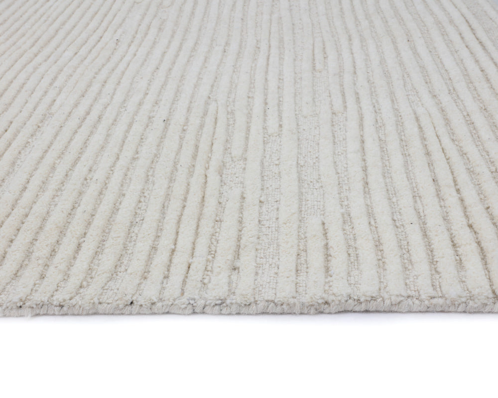 Masterfully hand-woven from 100 percent wool with a bold linear pattern, the Deva Rug offers a luxuriously soft touch to any room. Its unique craftsmanship highlights dynamic lines running across the rug in varying heights, creating a shifting pattern of nuanced textures and the illusion of a continuous flow.
