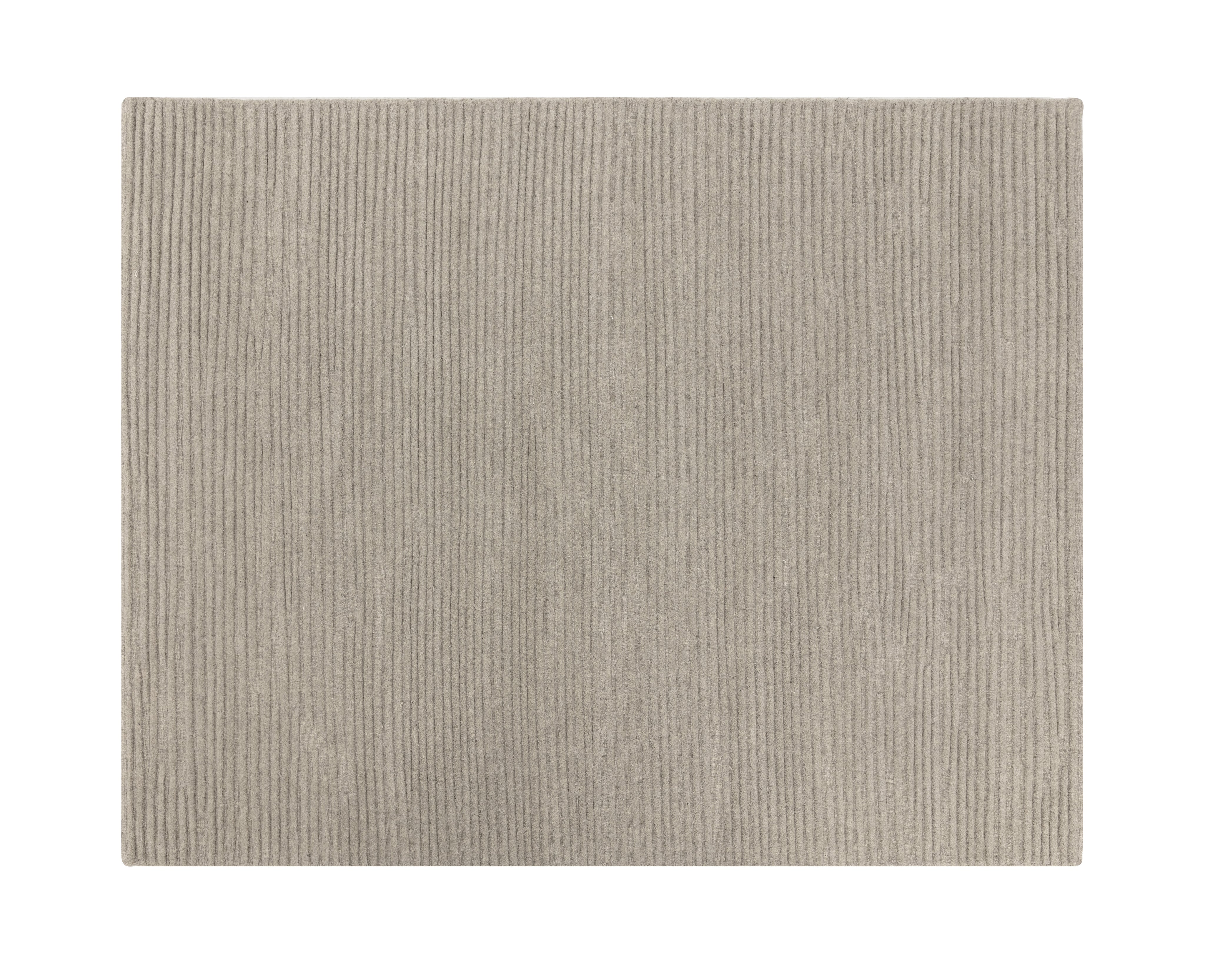 Masterfully hand-woven from 100 percent wool with a bold linear pattern, the Deva Rug offers a luxuriously soft touch to any room. Its unique craftsmanship highlights dynamic lines running across the rug in varying heights, creating a shifting pattern of nuanced textures and the illusion of a continuous flow.