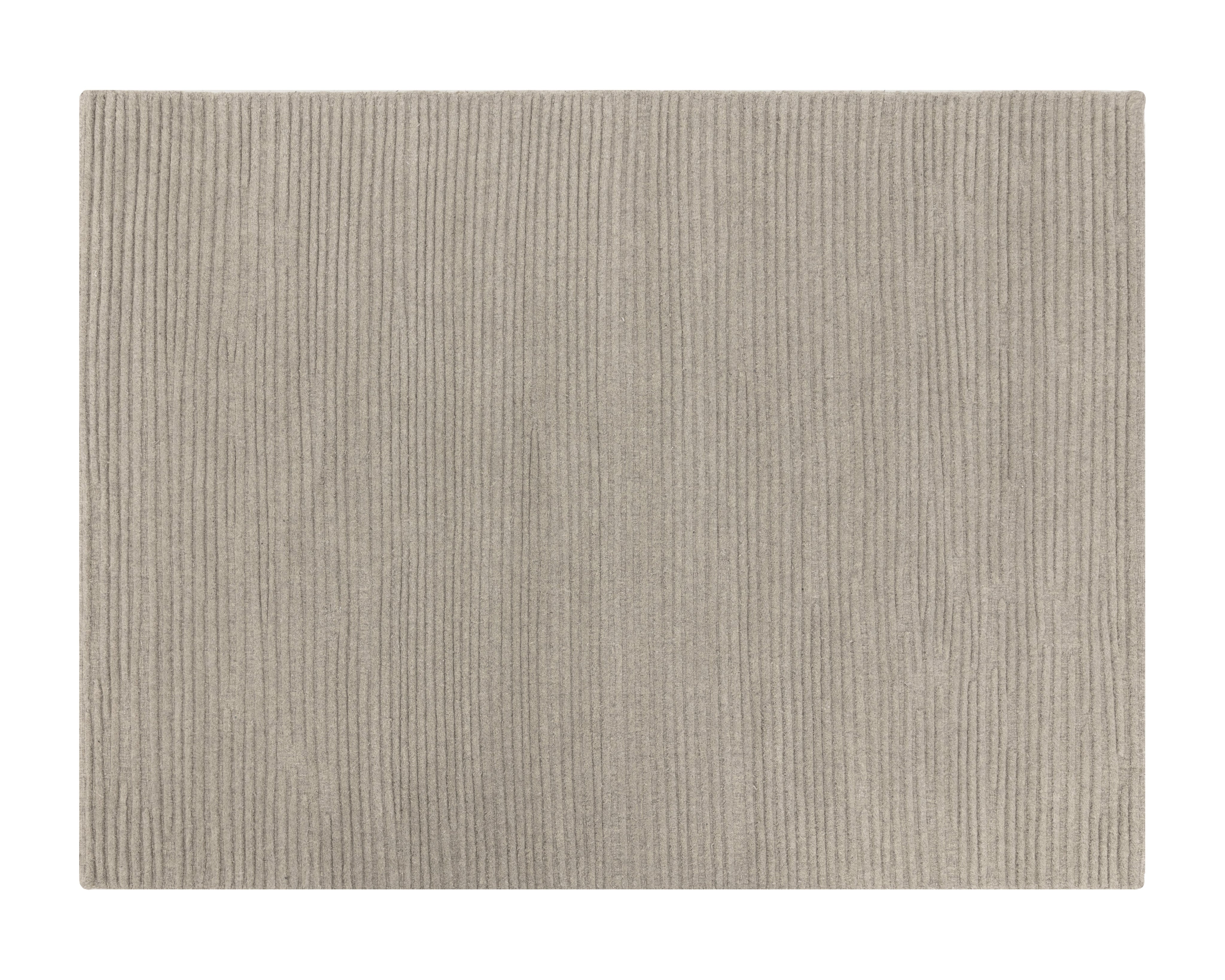 Masterfully hand-woven from 100 percent wool with a bold linear pattern, the Deva Rug offers a luxuriously soft touch to any room. Its unique craftsmanship highlights dynamic lines running across the rug in varying heights, creating a shifting pattern of nuanced textures and the illusion of a continuous flow.