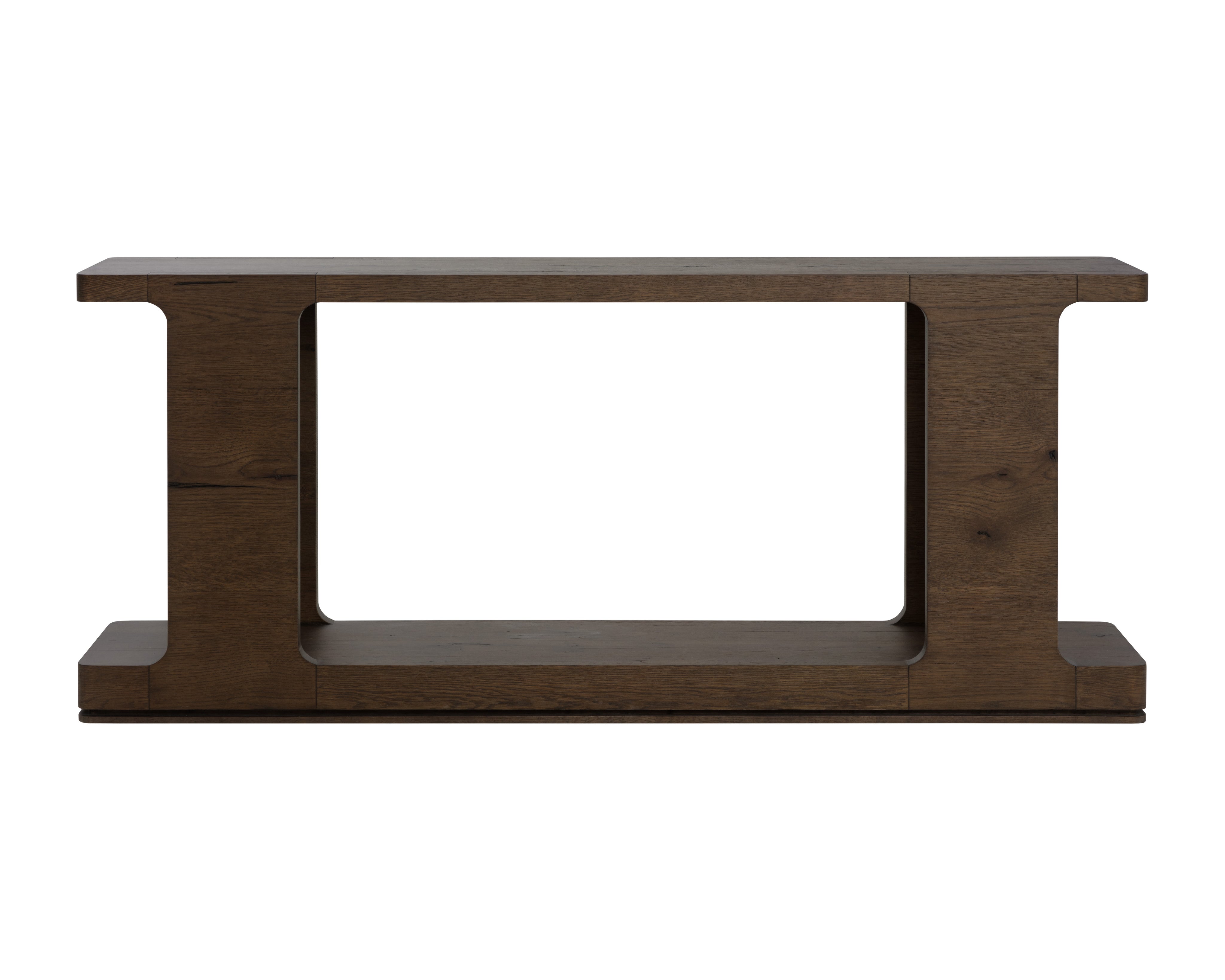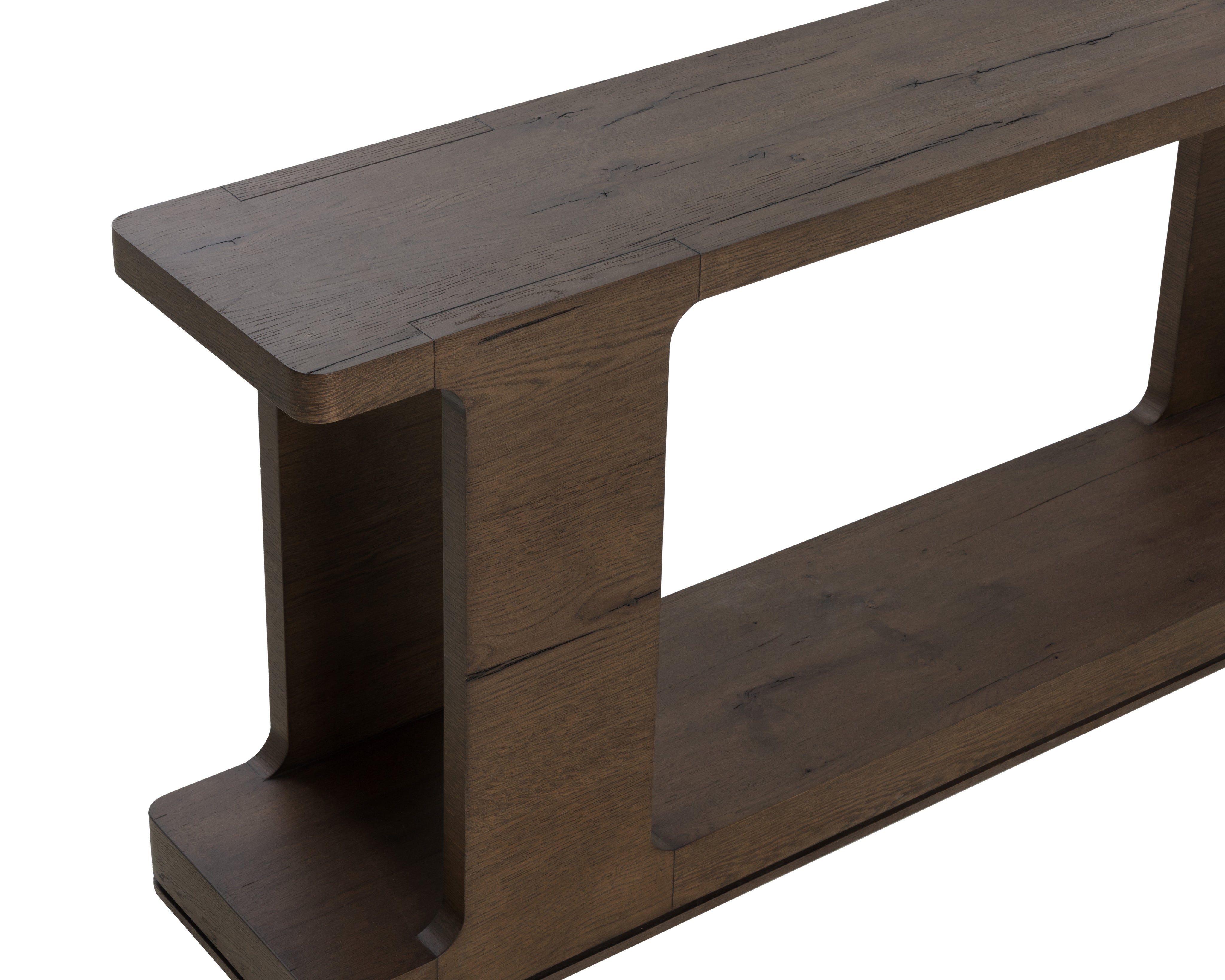 The Hercules Console Table is a seamless union of flared curves and precise lines that lend a refined, architectural silhouette. Expertly crafted from reclaimed oak veneer, each piece retains the natural knots, cracks, and graining found in wood to bring enhanced texture and distinct character to the design.