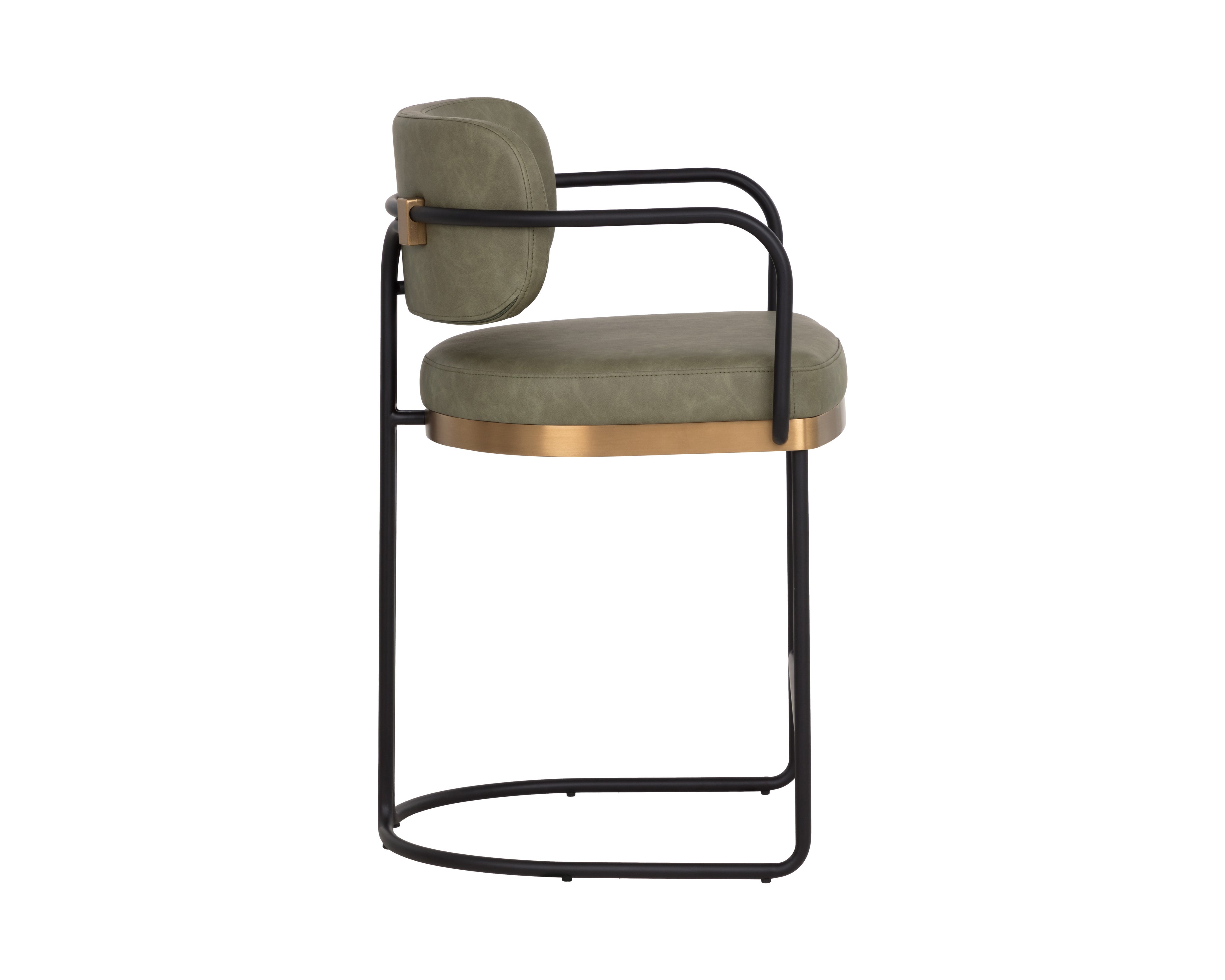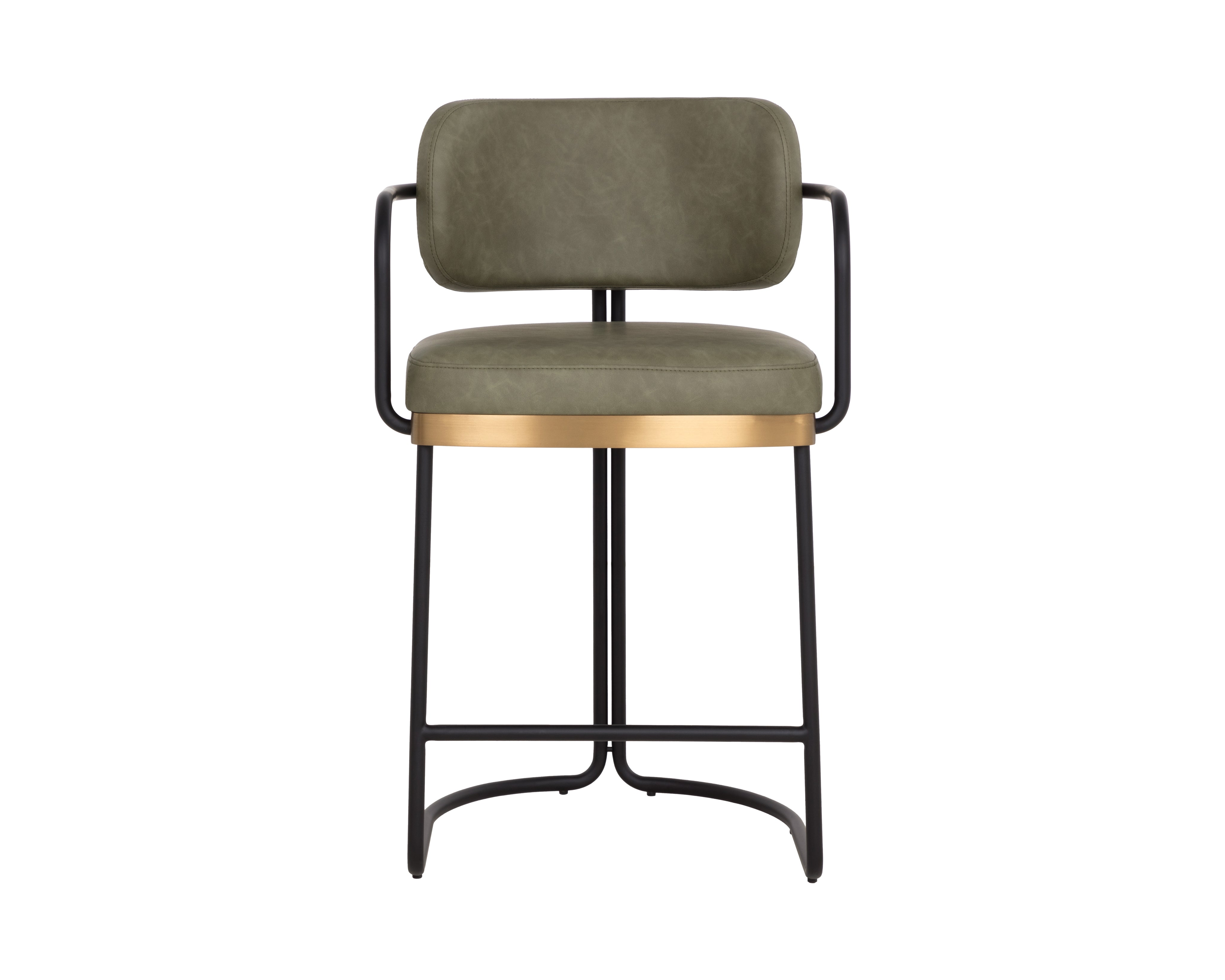 The Jalen Counter Stool is poised to be a guest favourite thanks to its free flowing curves and gold stainless steel accents. Made from powder-coated iron with a supportive seat and back upholstered in smooth faux leather, this armchair will fit into any residential or commercial setting.