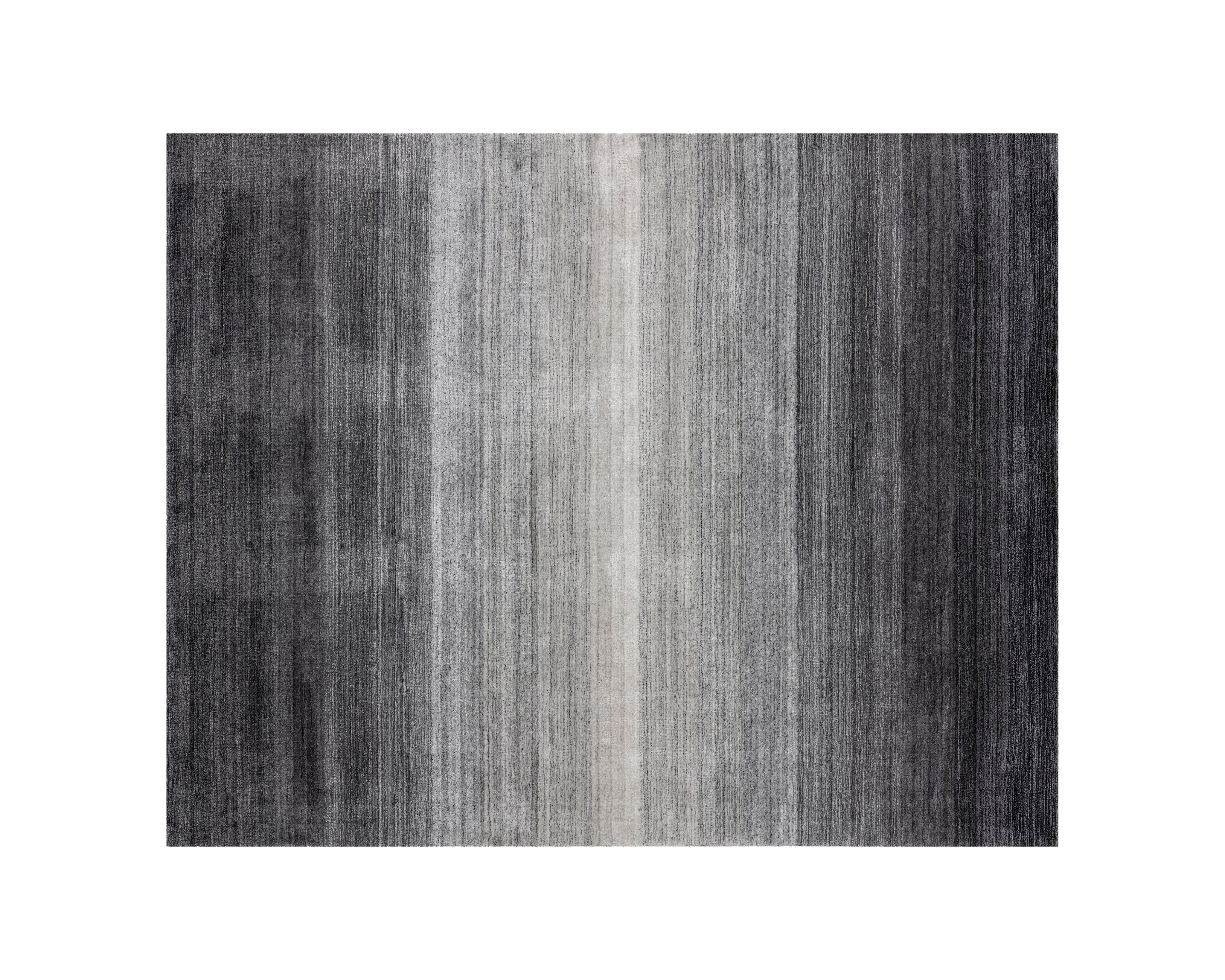 Create a dramatic space with this alluring handloomed rug that is made with a wool-blend. Made by skilled local artisans. Tight weaves create an ombre effect in blue or grey. Available in three sizes. Variations in colour, design and size are to be expected and embraced in each rug due to the distinctive weaving process followed by each artisan, resulting in a truly one-of-a-kind piece.