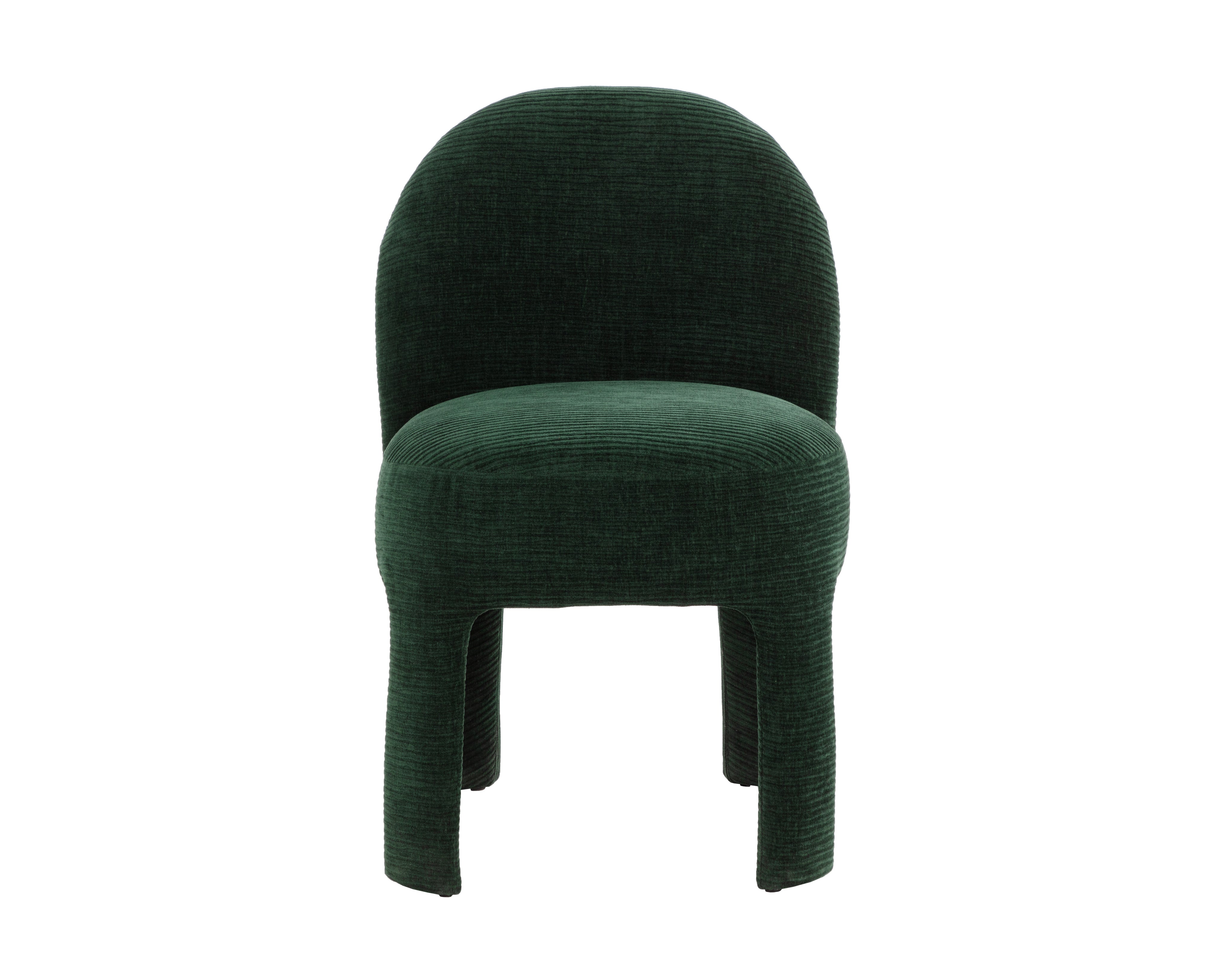 Enjoy the trendy and plush lines of the modern Myrtle Dining Chair. Artfully upholstered in rich textured opera nori fabric, this masterfully built dining chair is a true meeting of style and comfort with its sleek and modern curves and contours.
