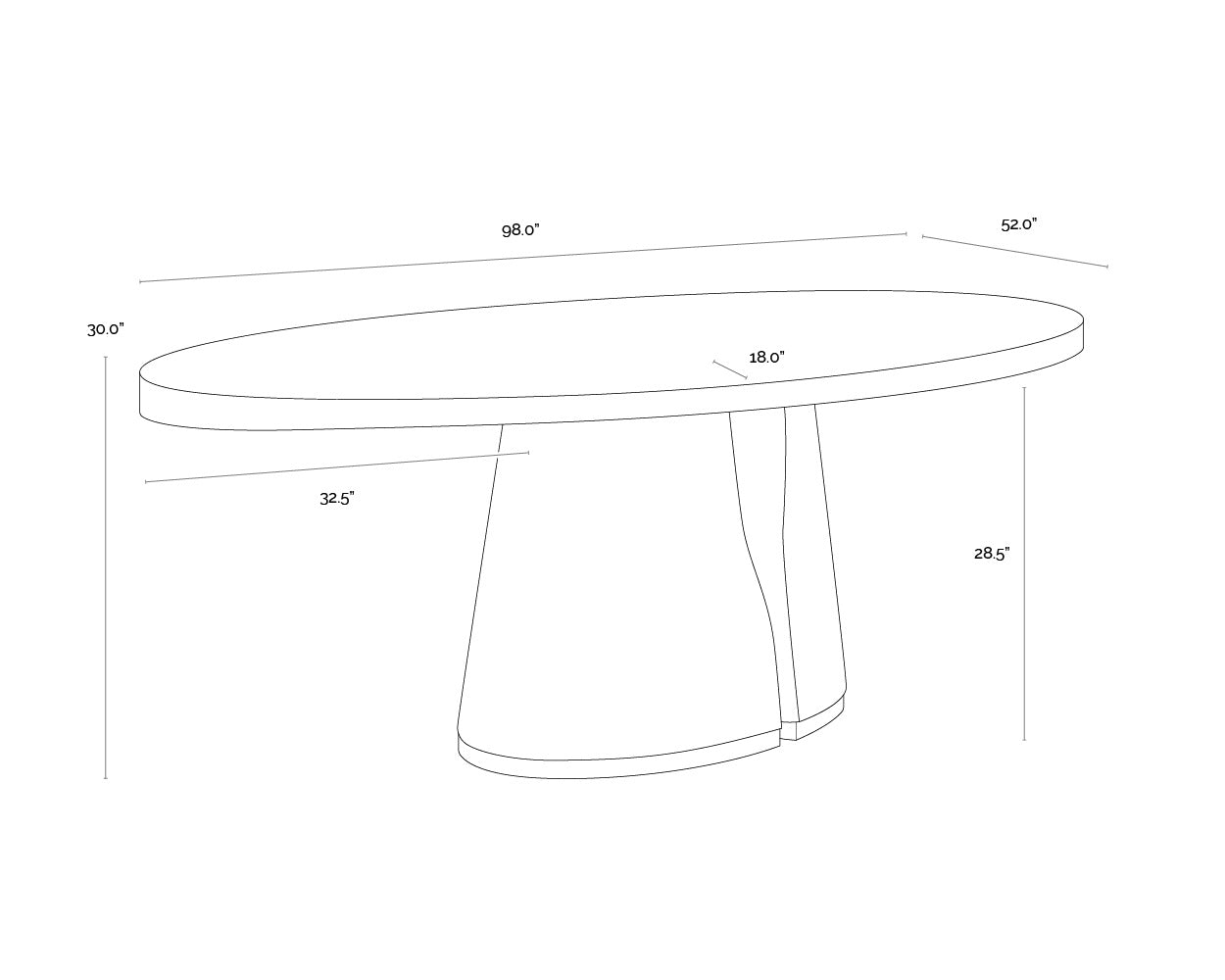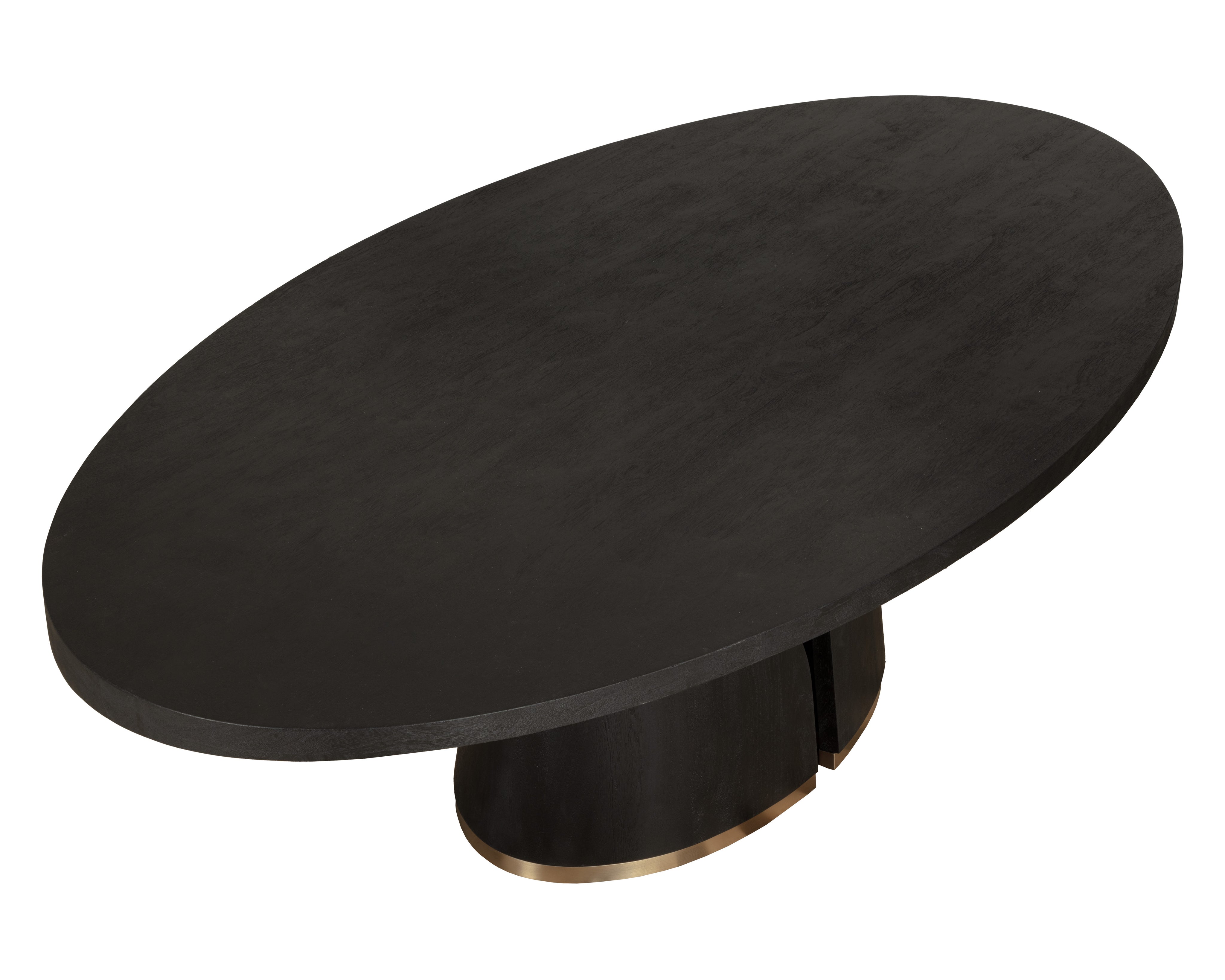 The Tasmin Dining Table brings sculptural elegance to modern dining spaces. Crafted from solid acacia wood, its dual pedestal base draws the eye with softly flared silhouettes. A brushed gold trim along the base offers a subtle hint of glamour.