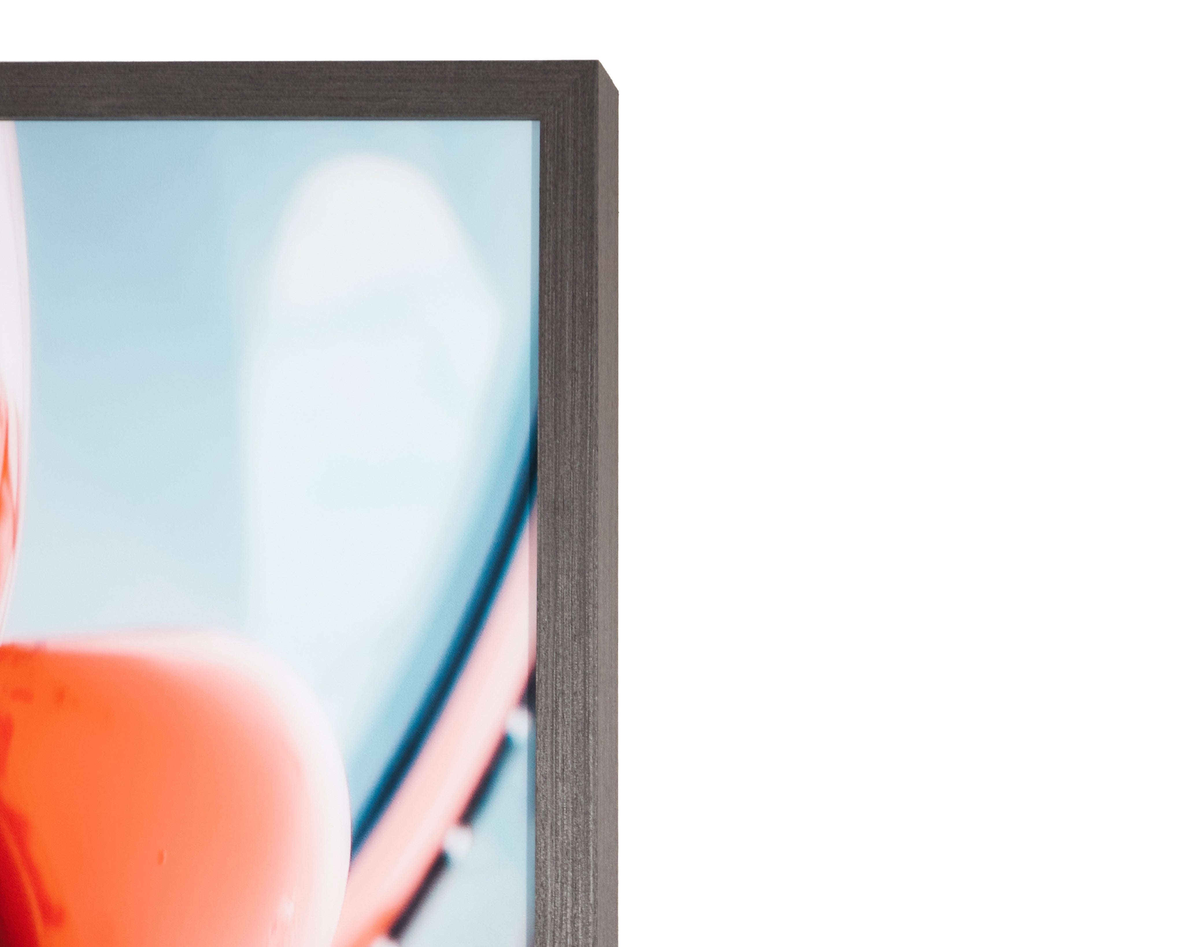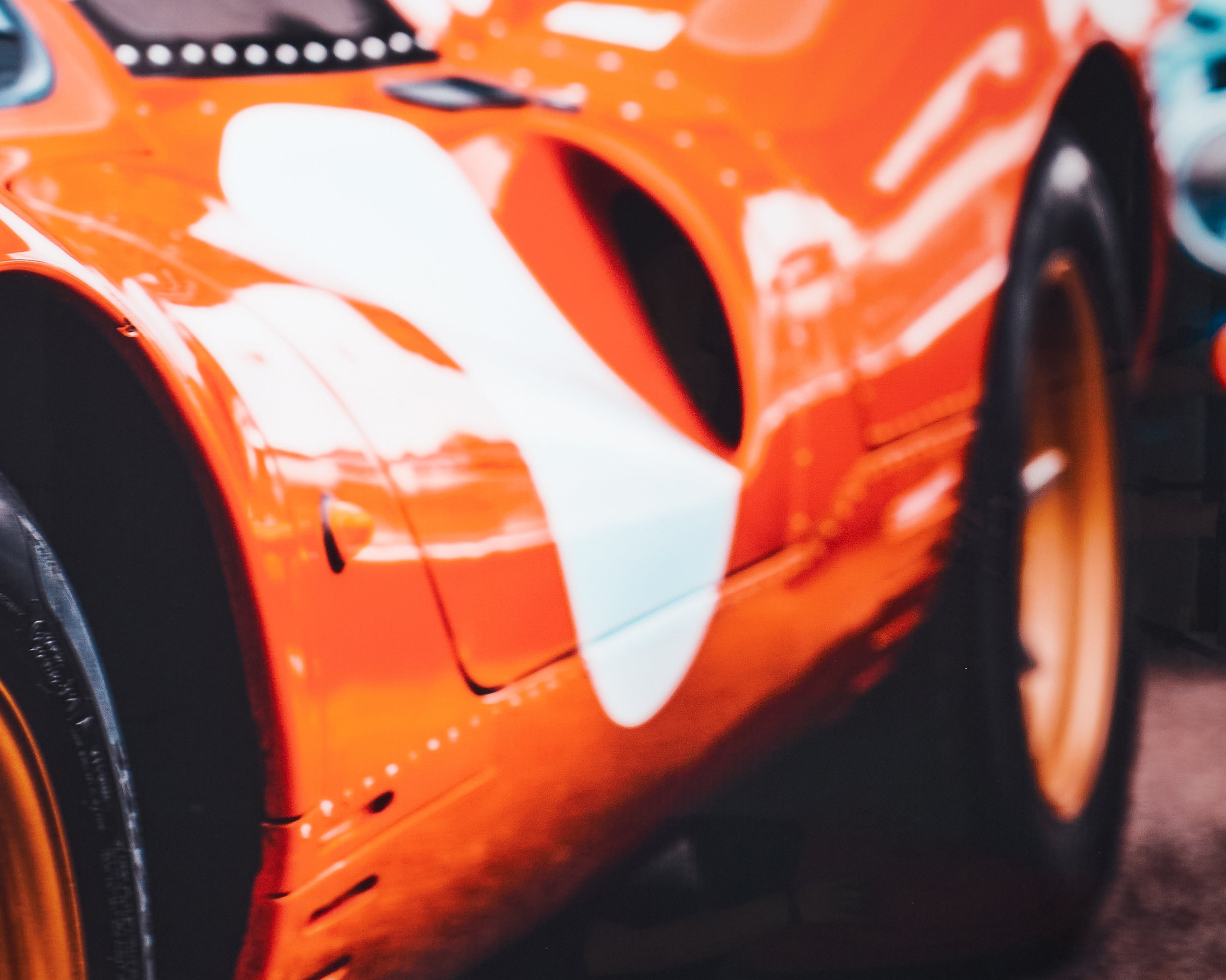 This bold print from our Luxe Art collection is perfect for the car enthusiast. Taken at the Silverstone Circuit, home of British Motor Racing, it features a 1956 Ferrari 860 Monza. Orange and teal tones are graded to pop for a graphic statement. Finished with a charcoal wood floater frames. Due to the reflective nature of acrylic, images on site may not capture the artisanal characteristics precisely.