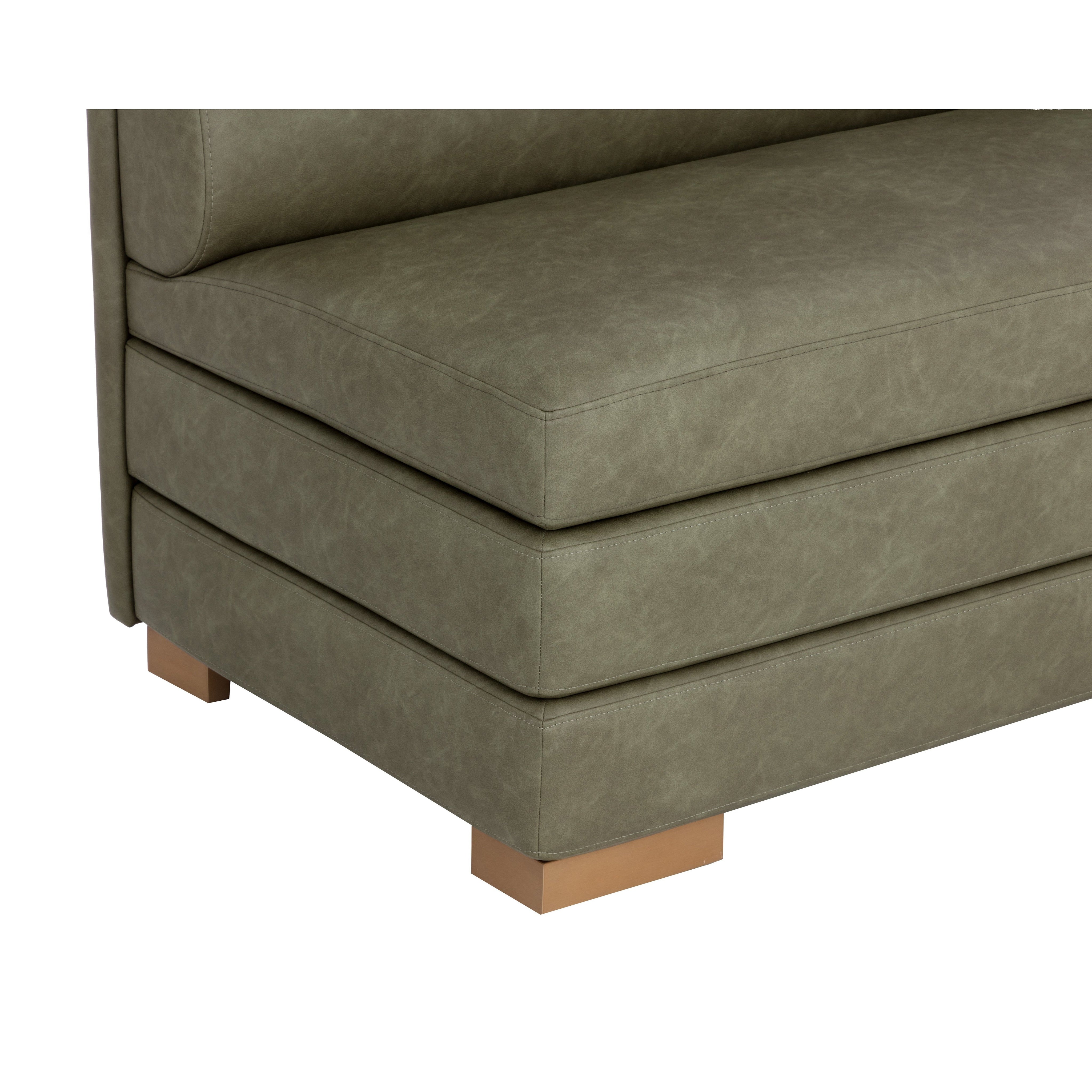 The streamlined design of the Radcliff Banquette enhances the elegance and comfort of your favourite nook. Upholstered in ivanhoe pine faux leather with gold stainless steel legs, it is a combination of durability and style.