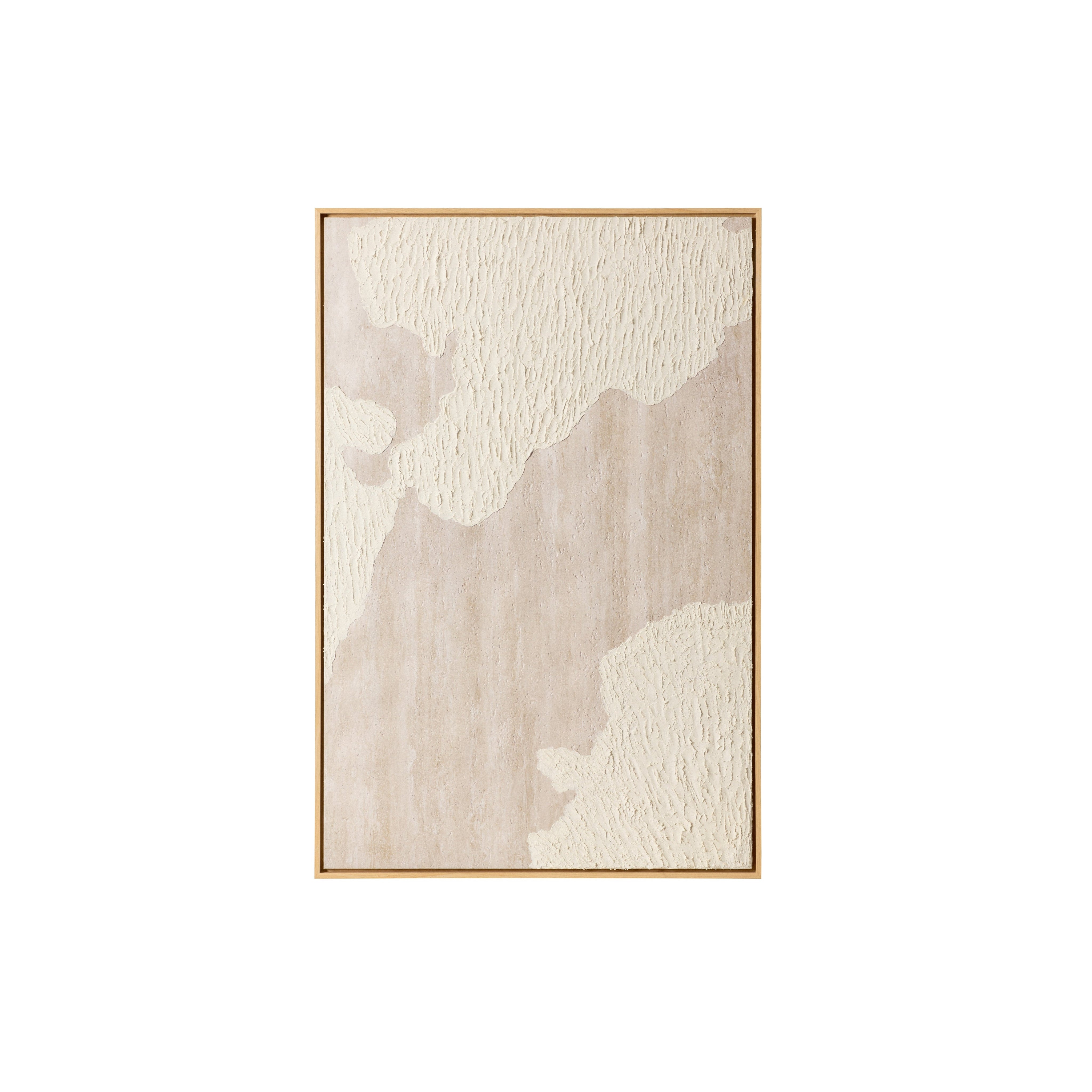A closer look at World Views suggests an abstract illustration of a geographical map. This modern artwork is UV printed with the natural striations and tones commonfly found in travertine. Painted forms of creamy texture bear semblance to land formations, encouraging feelings of wanderlust and curiosity.