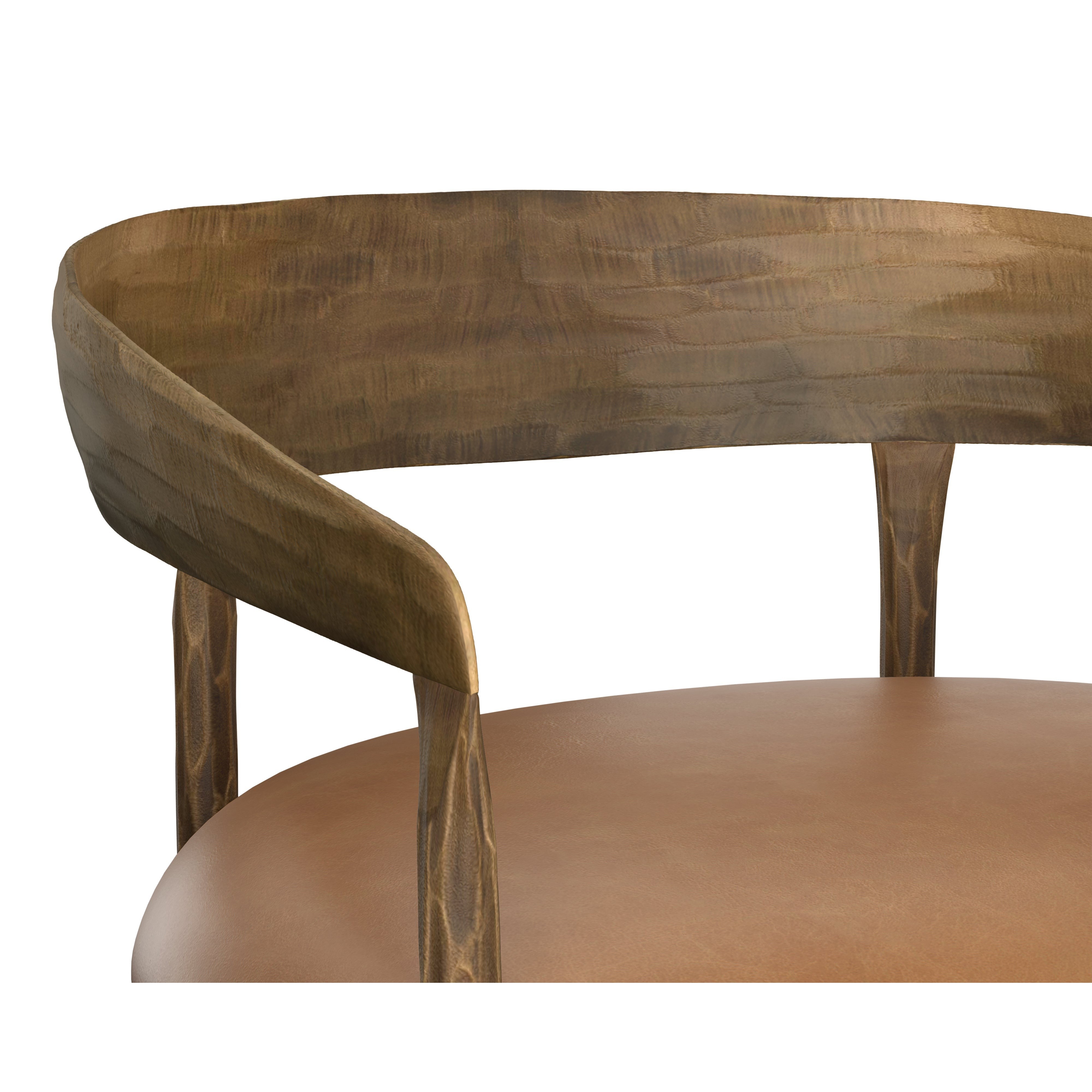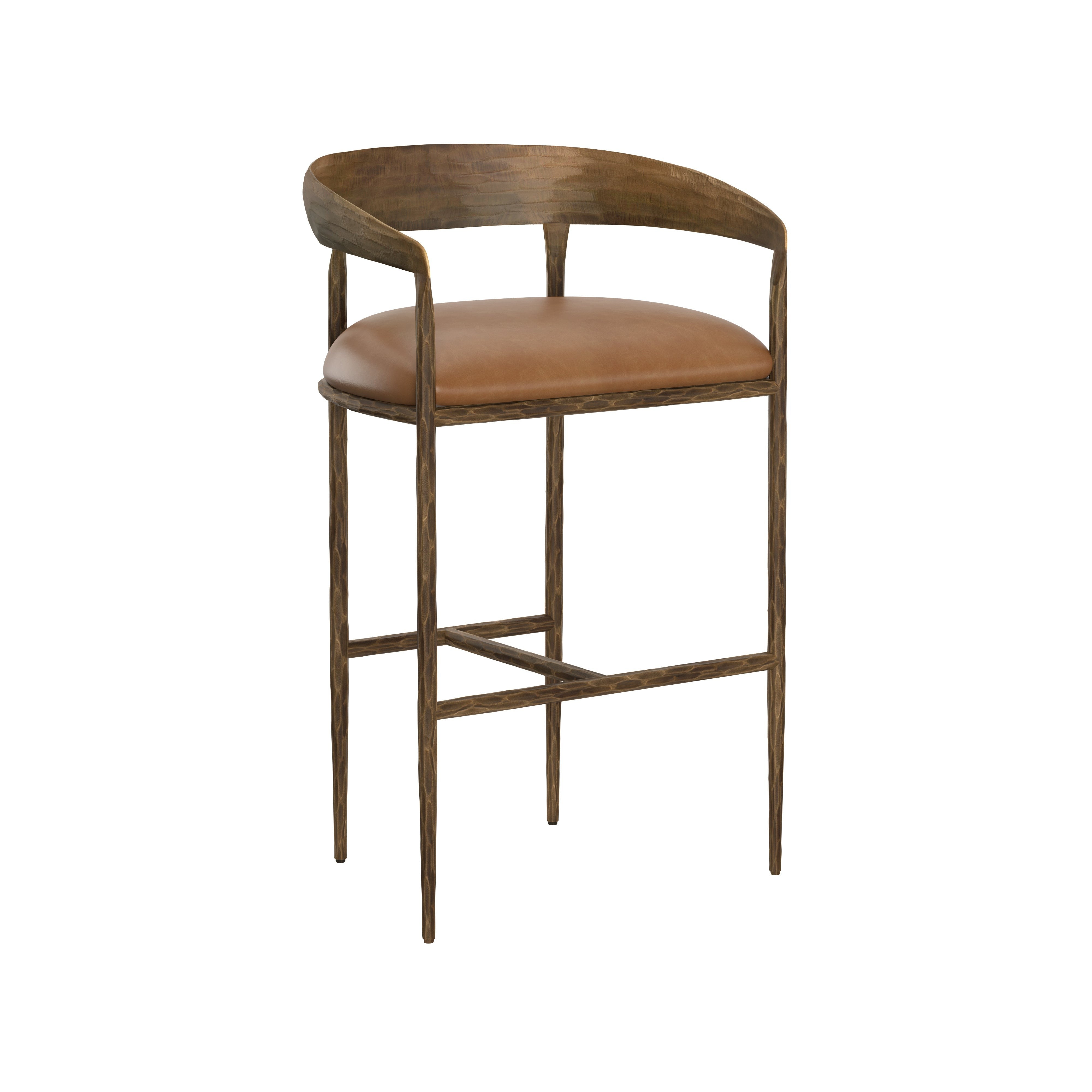 The Zanatta Barstool is all about the subtle details. The hammered metal detailing in the antique brass curved frame provides visual interest that will stand out in any dining space. A tan leather seat completes the look. Handle with Care: This design has been crafted with aniline leather. Leather is a natural material; as such, colour variations, markings, wrinkles, grooves and light scratches are acceptable and appreciated characteristics. No two pieces are alike. Visit our Product Care page for more information on how to ensure the lasting beauty of this piece. Made in India. With refined craftsmanship, this design was brought to life by skilled local artisans. Due to the nature of handcraftsmanship, unique imperfections such as fissures, markings and variations in colour and shape are welcomed and appreciated characteristics for a truly one-of-a-kind piece.