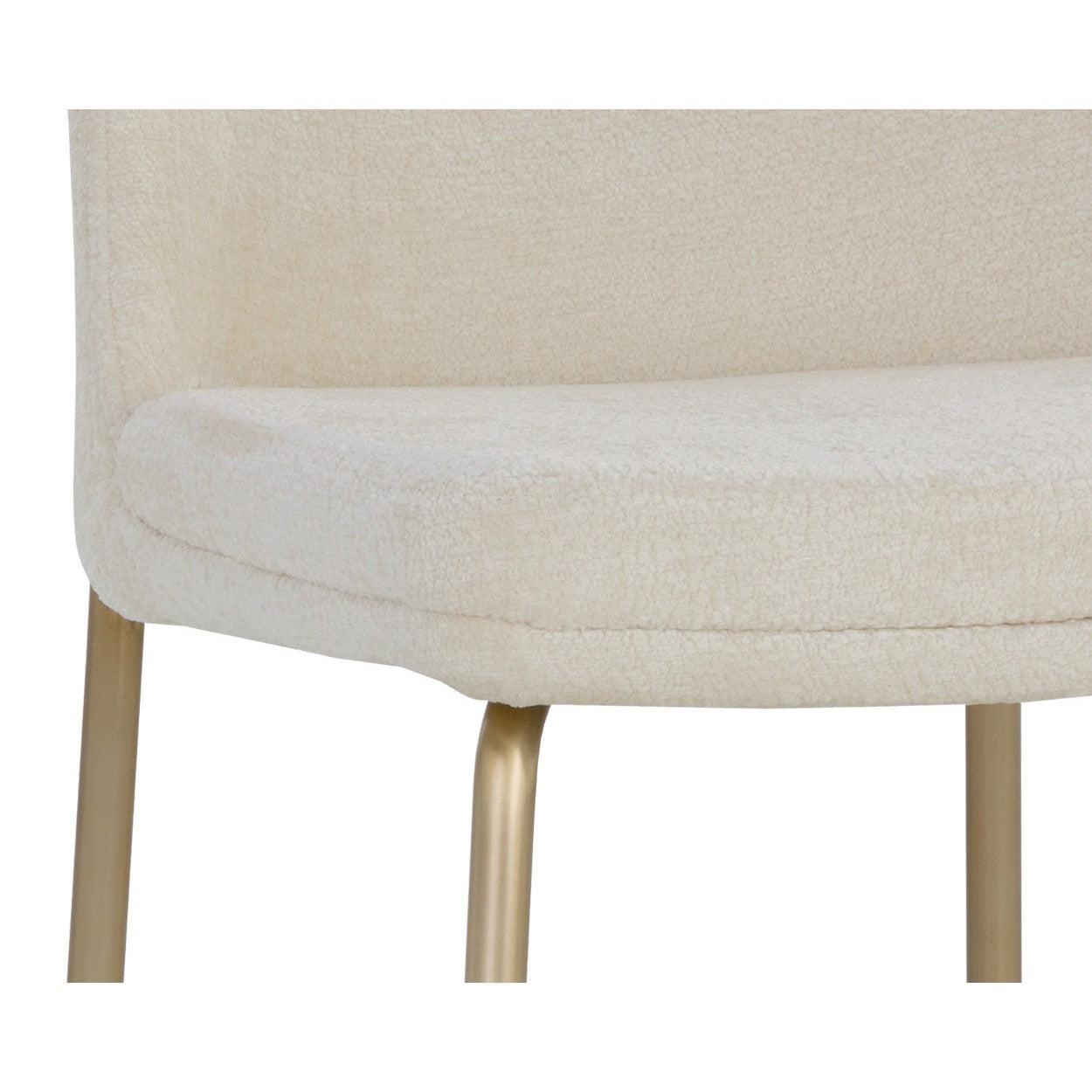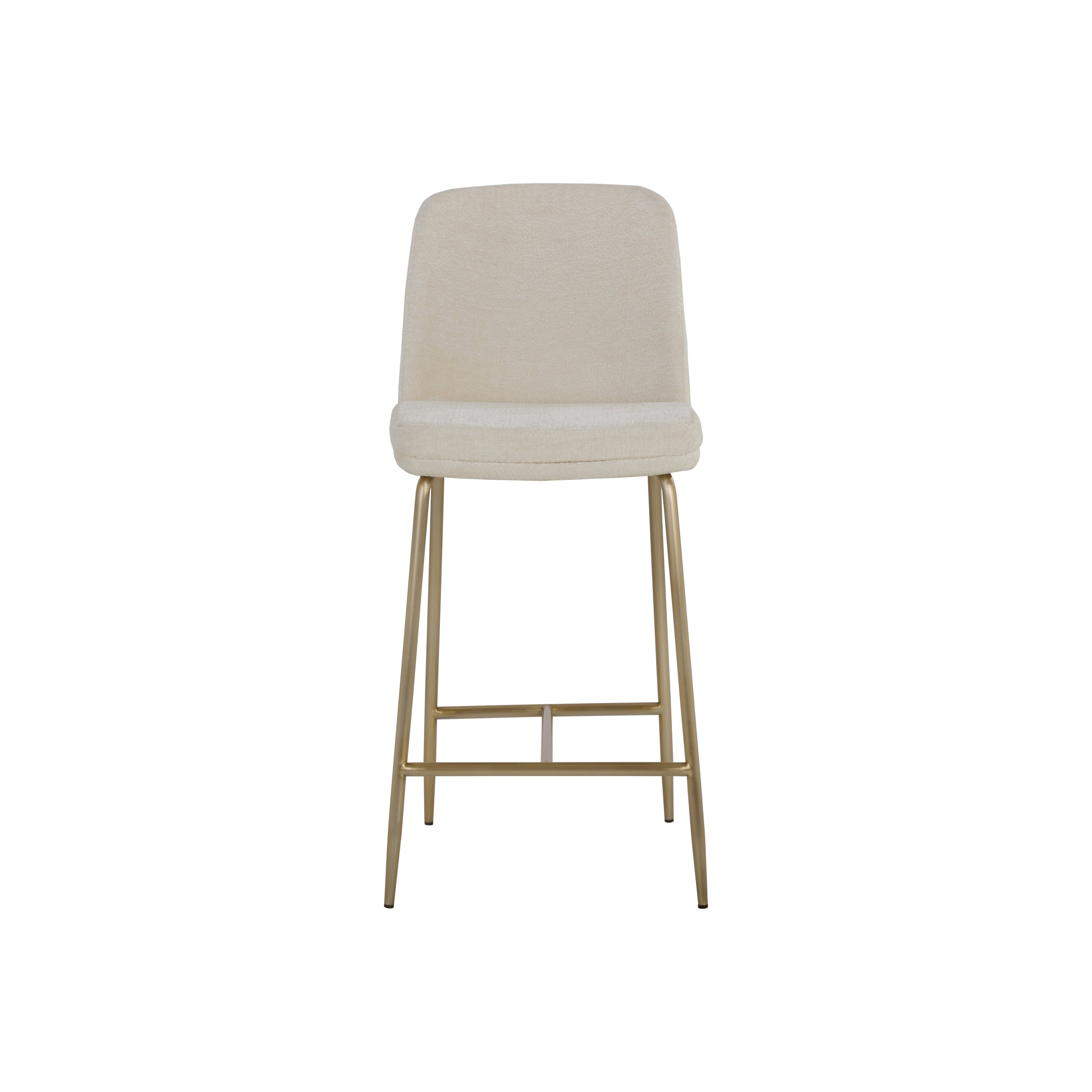 This stylish counter stool features a classic silhouette that provides comfortable seating in any modern living space. Features an antique brass stainless steel frame and curved backrest upholstered in bergen ivory fabric.