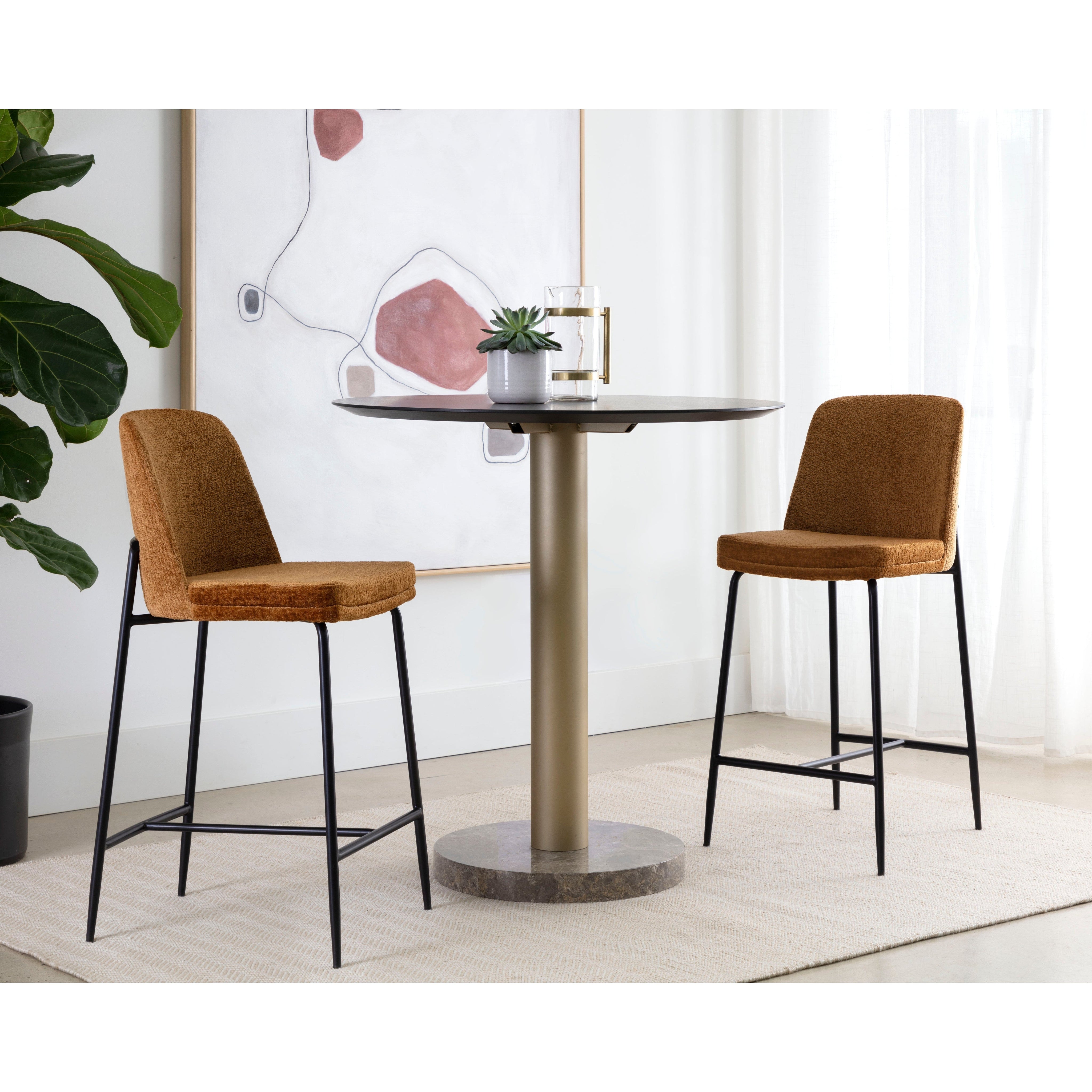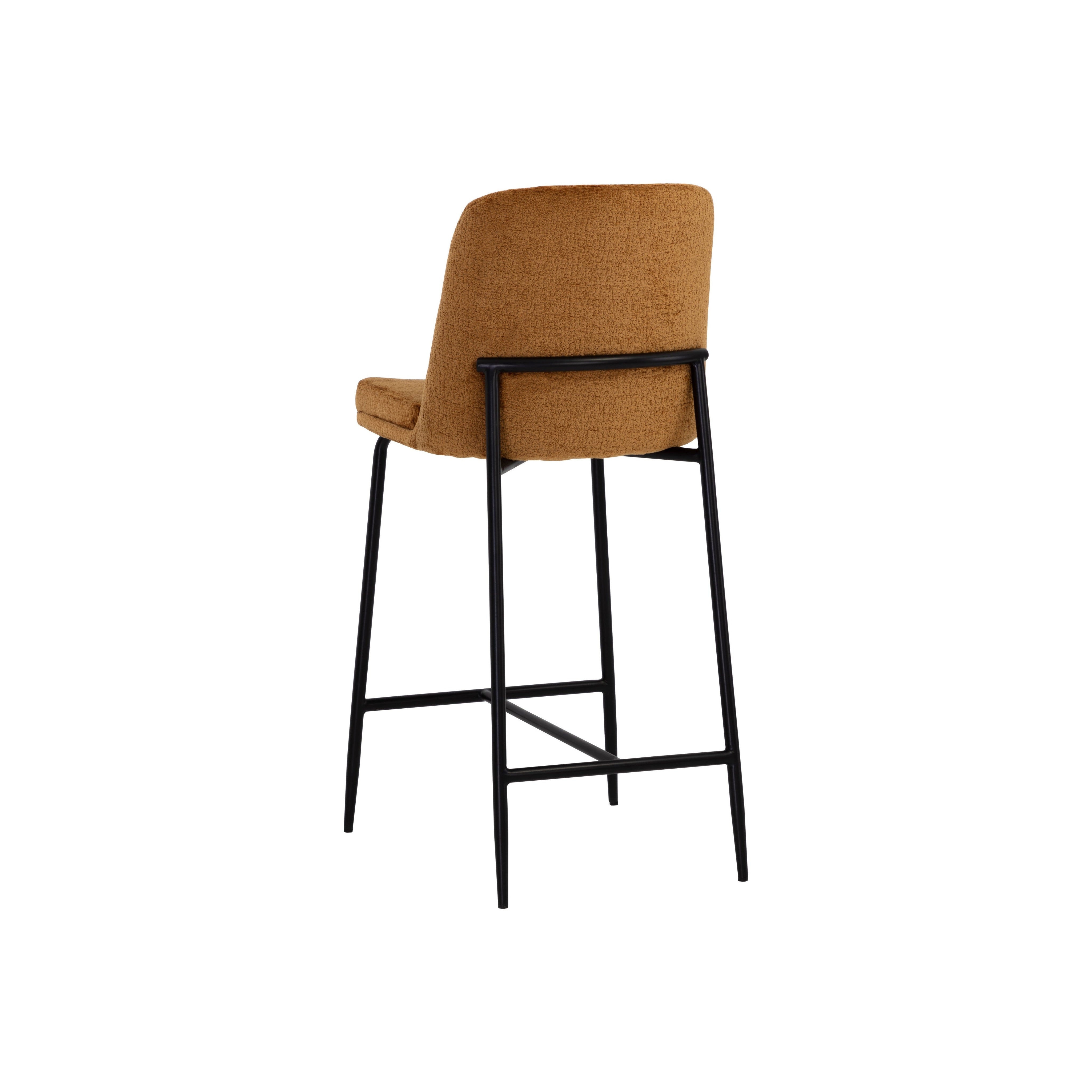 This stylish counter stool features a classic silhouette that provides comfortable seating in any modern living space. Features a matte black steel frame and curved backrest. Stocked in bergen marmalade fabric.