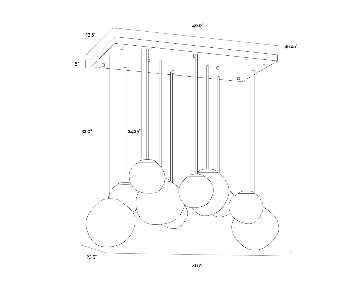 The Dionis Chandelier combines the refined look of hand-blown glass with contemporary appeal. Suspended from a brushed gold iron fixture are glass globes in dual sizes that are artfully arranged to produce a lustrous glow.