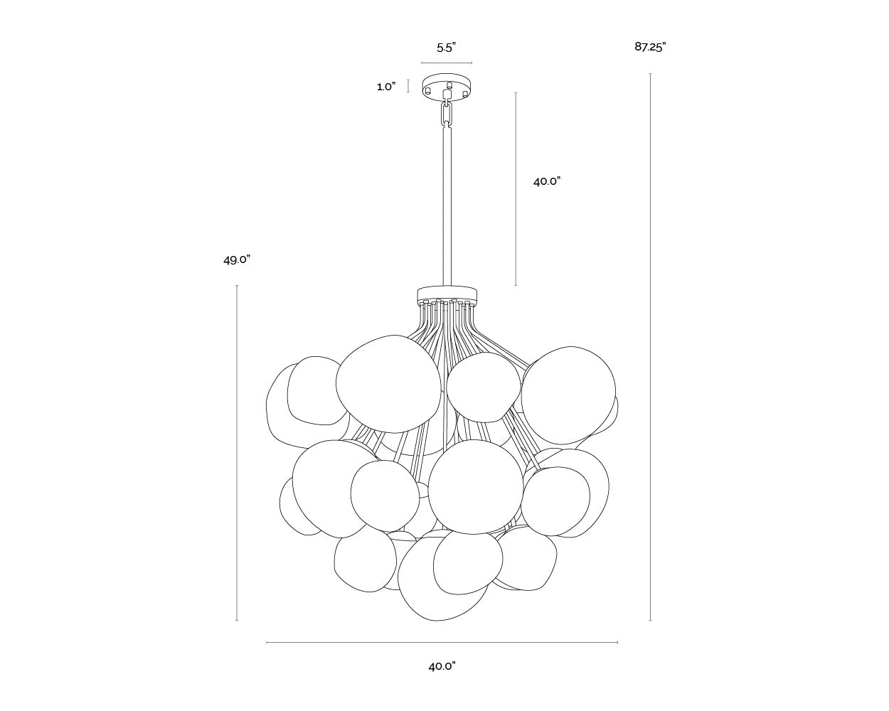 The Dionis Chandelier combines the refined look of hand-blown glass with contemporary appeal. Suspended from a brushed gold iron fixture are glass globes in dual sizes that are artfully arranged to produce a lustrous glow.