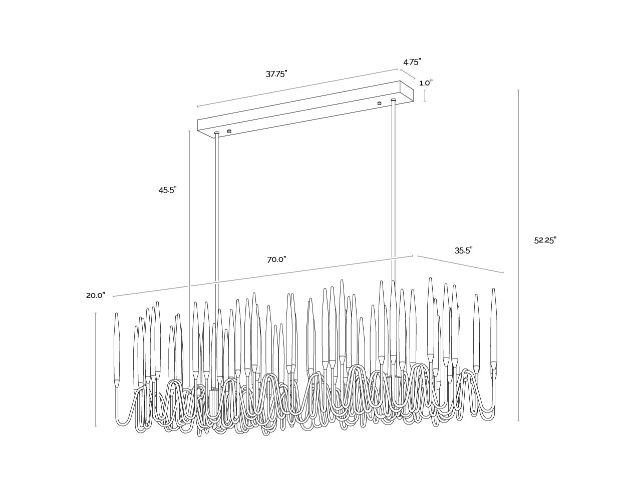 The Hestia Chandelier gives a nod to classic style. Cleverly crafted from an iron frame in a brushed gold finish. Acrylic rods sit atop the sinuous curves of the suspended fixture.