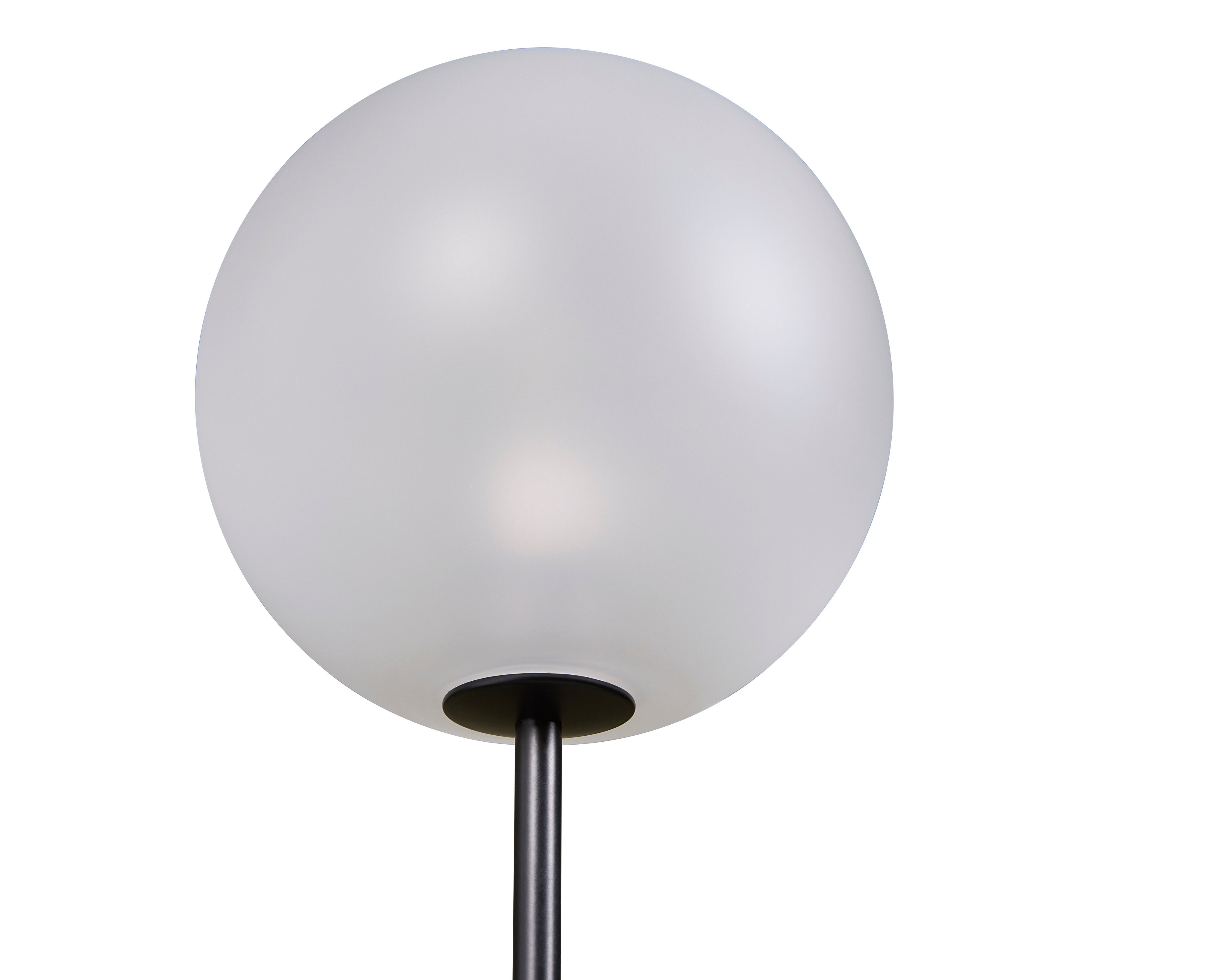 Accentuate any wall space with this modern sconce that is stylish and functional. Features a frosted glass sphere shade with a black powder-coated metal frame.