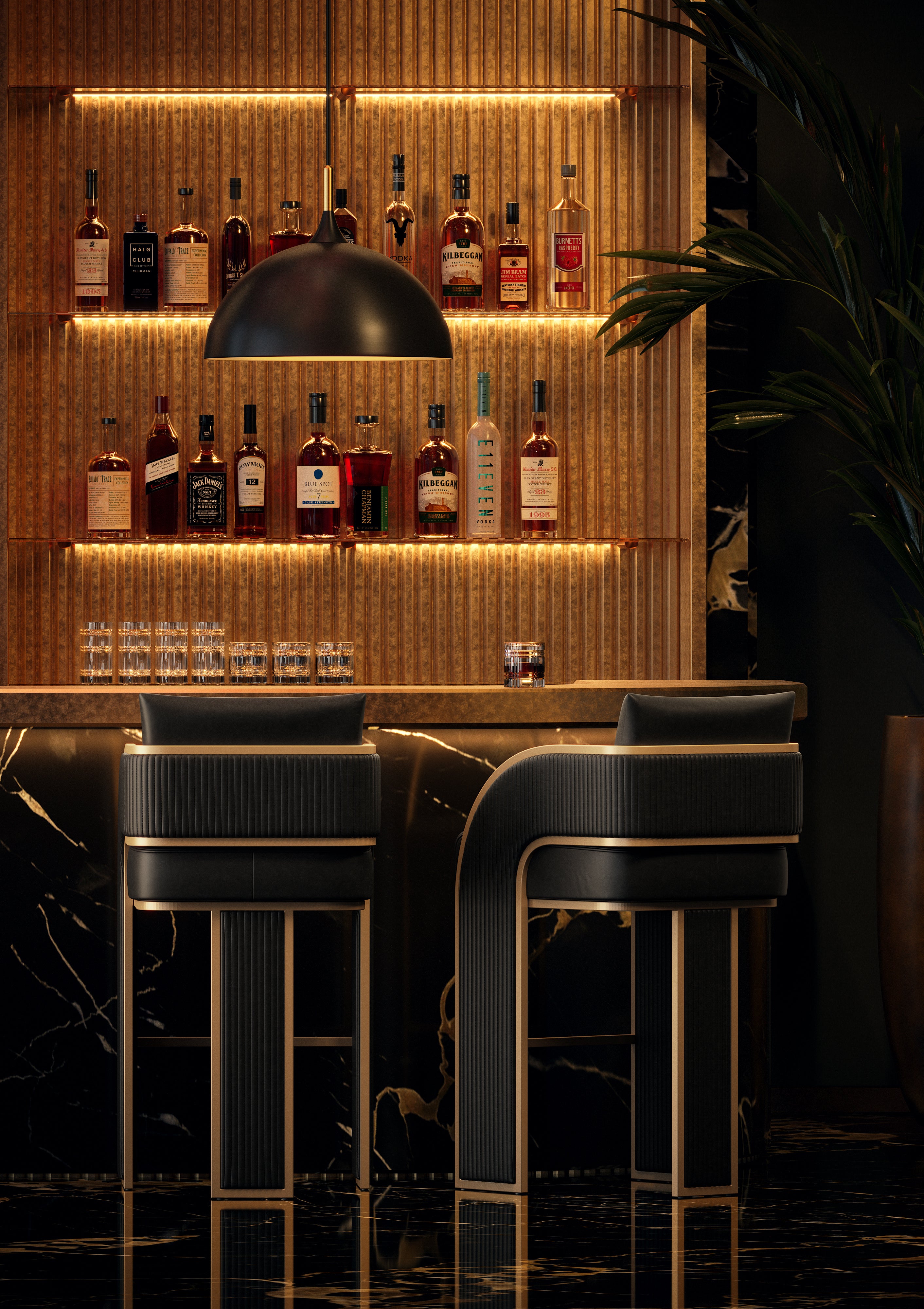 A chic and modern pendant light in a fabulous dome shape. Made with a matte black powder-coated metal frame and completed with a painted gold interior.