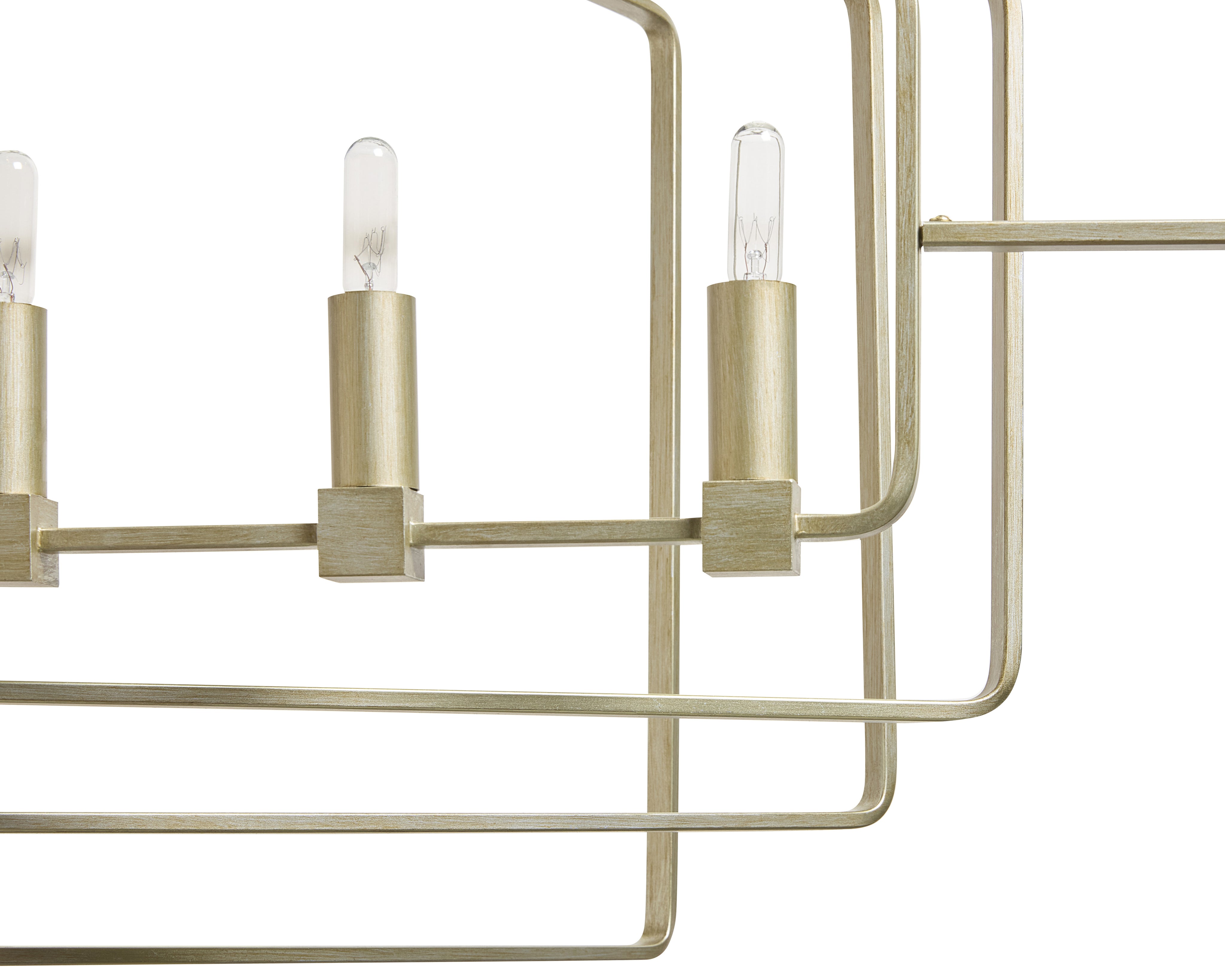 With an unconventional design that takes inspiration from candelabras, this modern chandelier will illuminate any space with style. Features a geometrical metal frame in a champagne gold finish.