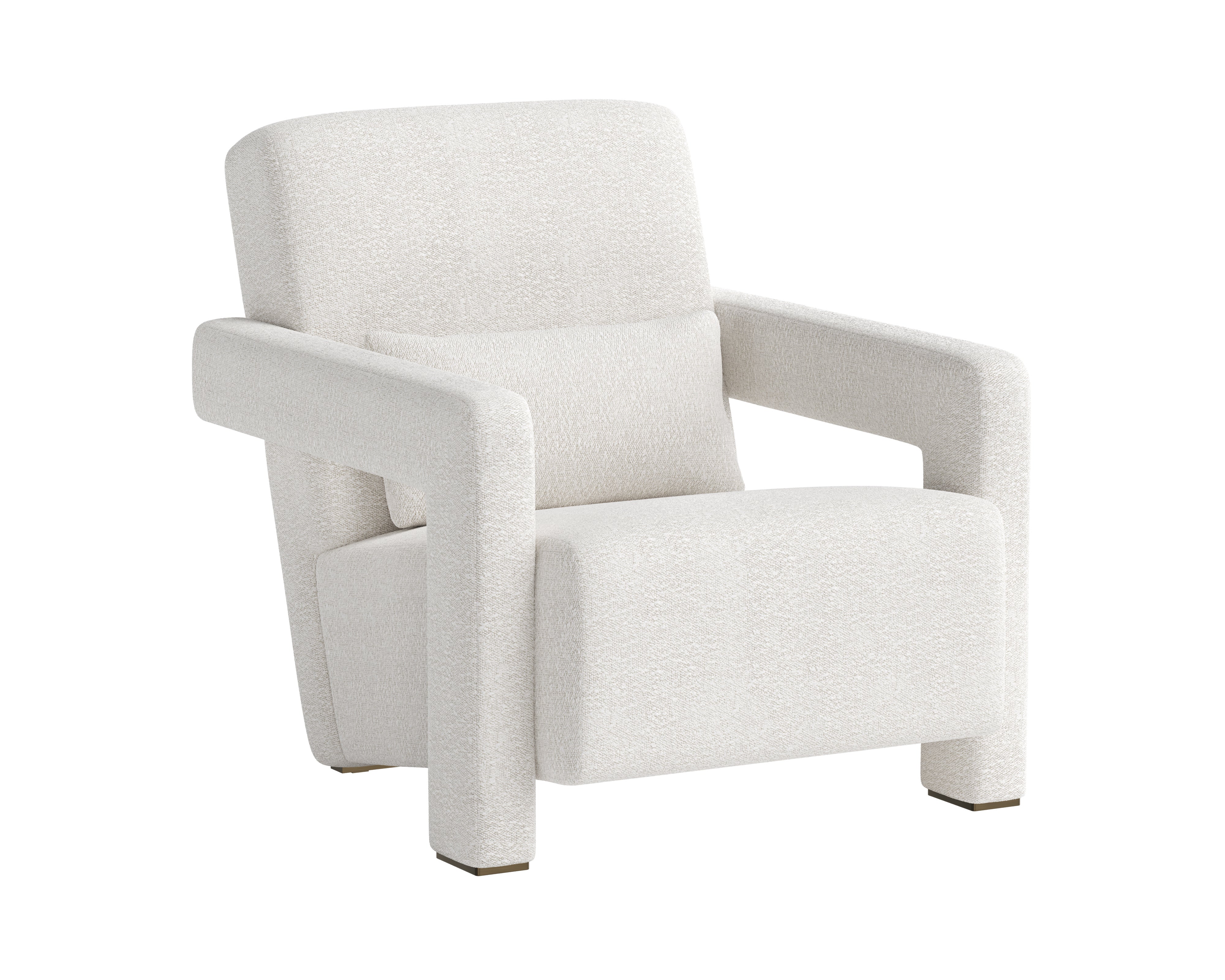 Strong angles and plush seating allow the Forester Lounge Chair to stand out in any living space. Upholstered in copenhagen olive fabric with sculpted arms that give the reclining seat a floating appearance. Metal accents at the back of the armrests match the powder coated antique gold stainless steel base to finish the look.