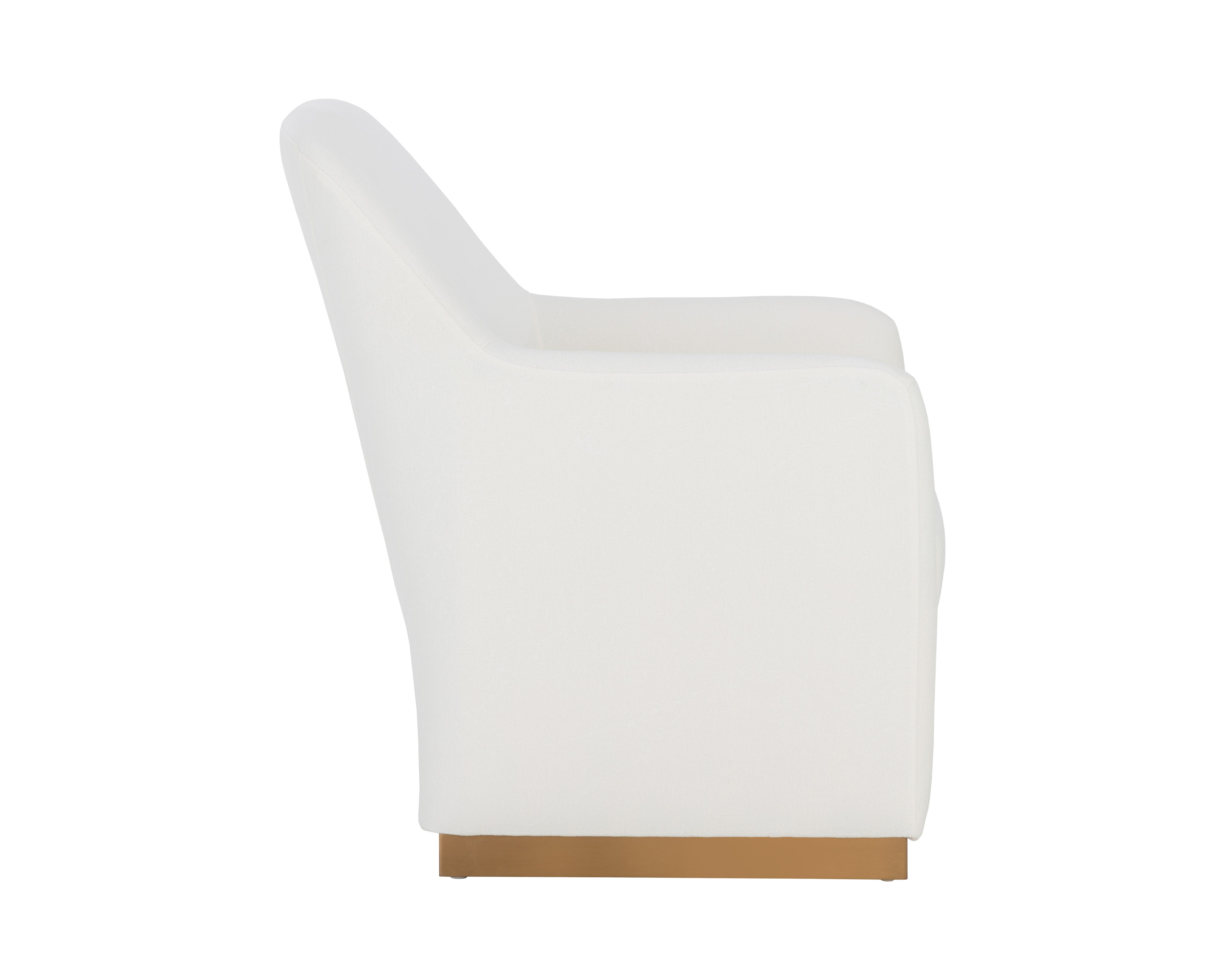 Make a bold statement with this spectacular lounge chair that will elevate any space. Upholstered in fior vanilla fabric and completed with a gold stainless steel base. Performance fabric is moisture repellent, durable and easy to clean.