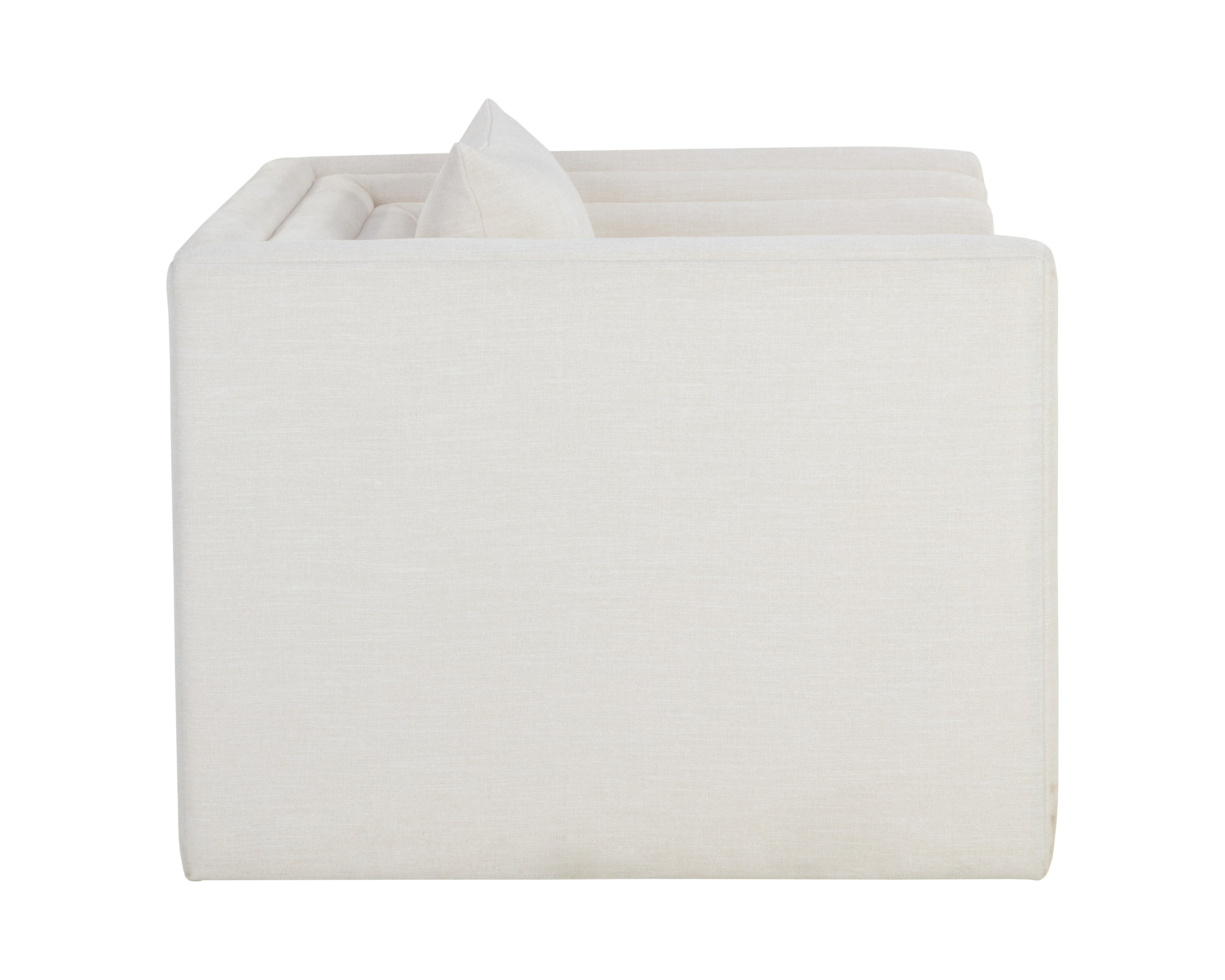 Artfully designed with soft geometric lines, the Kira Armchair evokes a distinctly modern style. Fully upholstered in our heather ivory tweed performance fabric, this sofa is velvety soft. Performance fabric is moisture repellent, durable and easy to clean.
