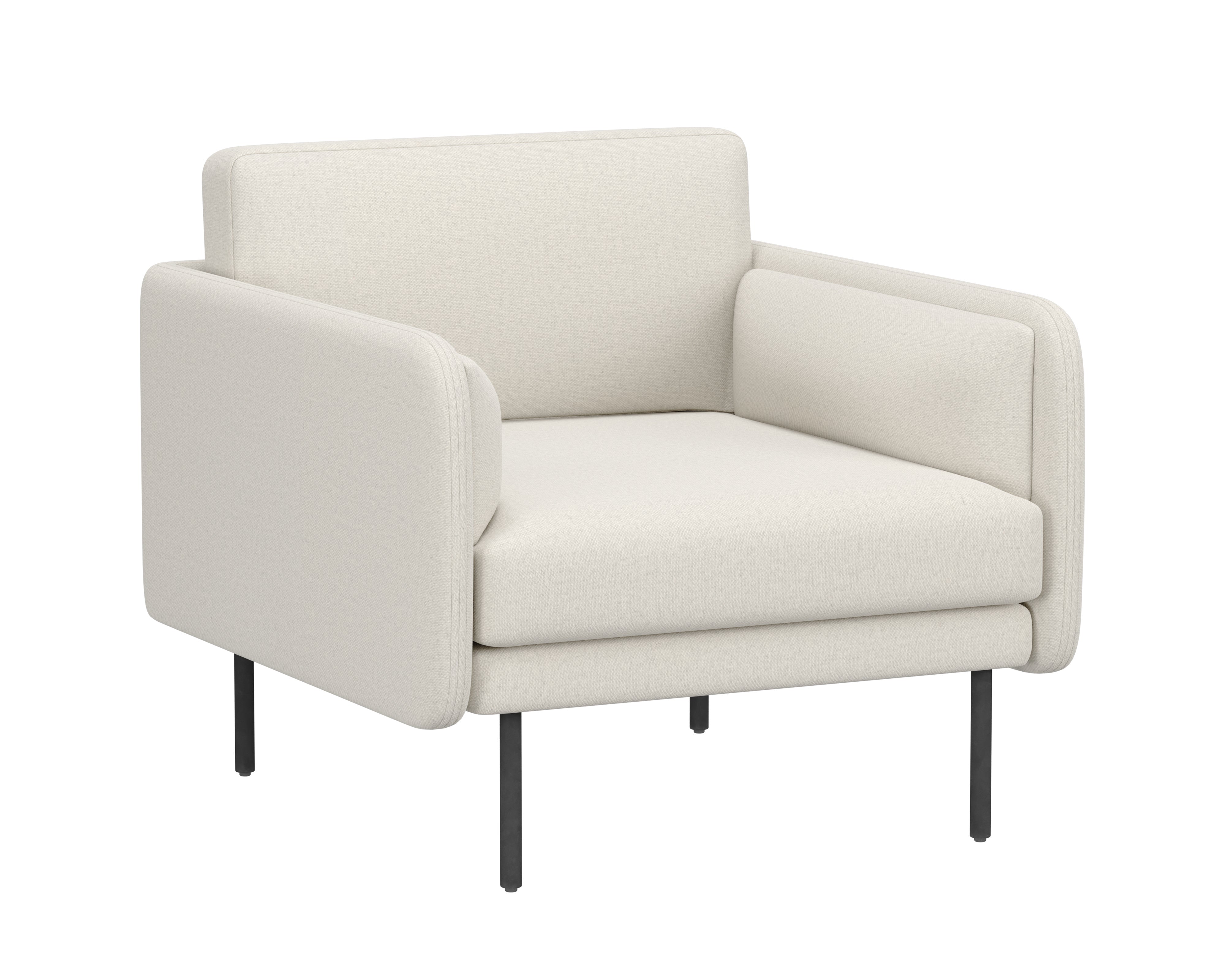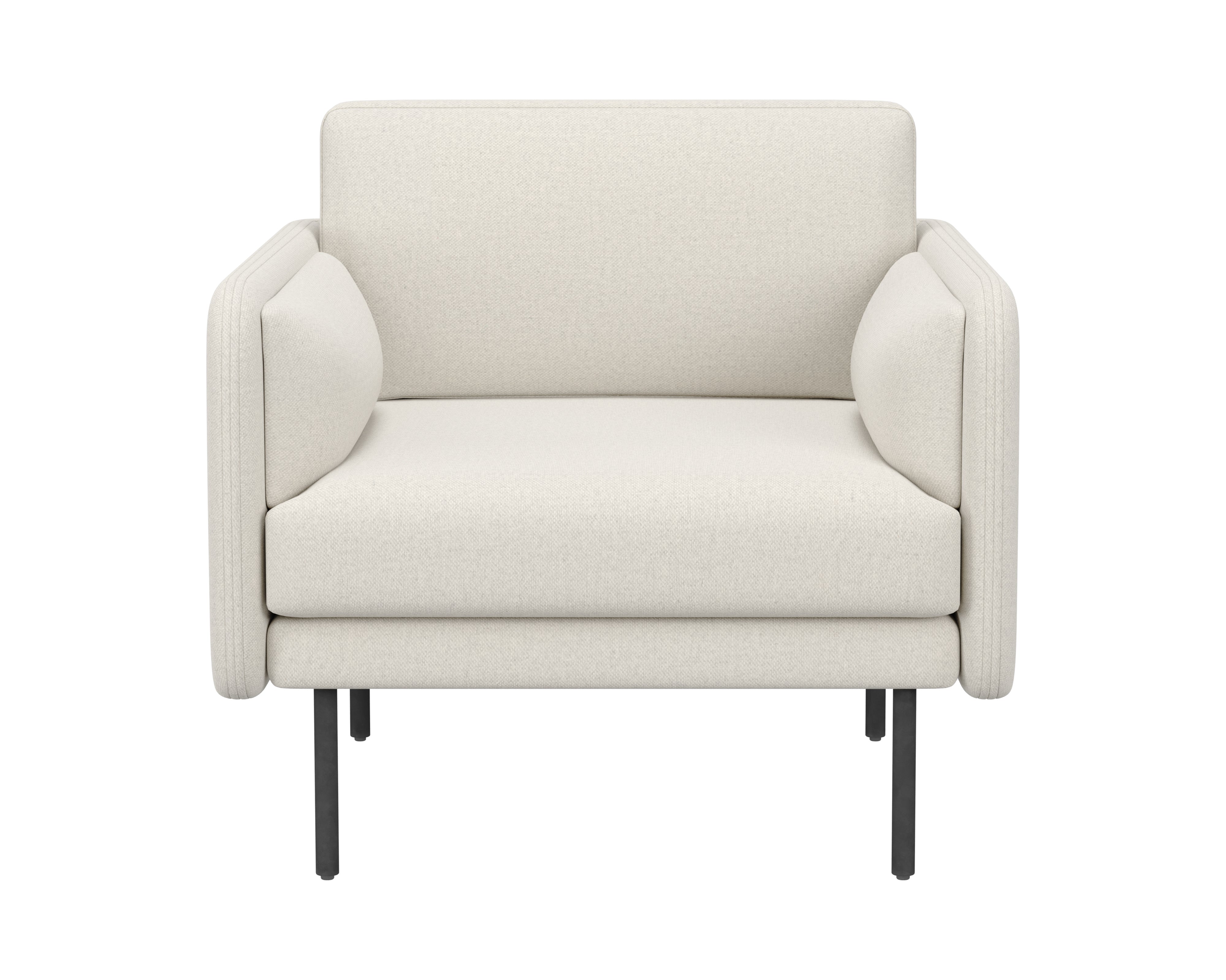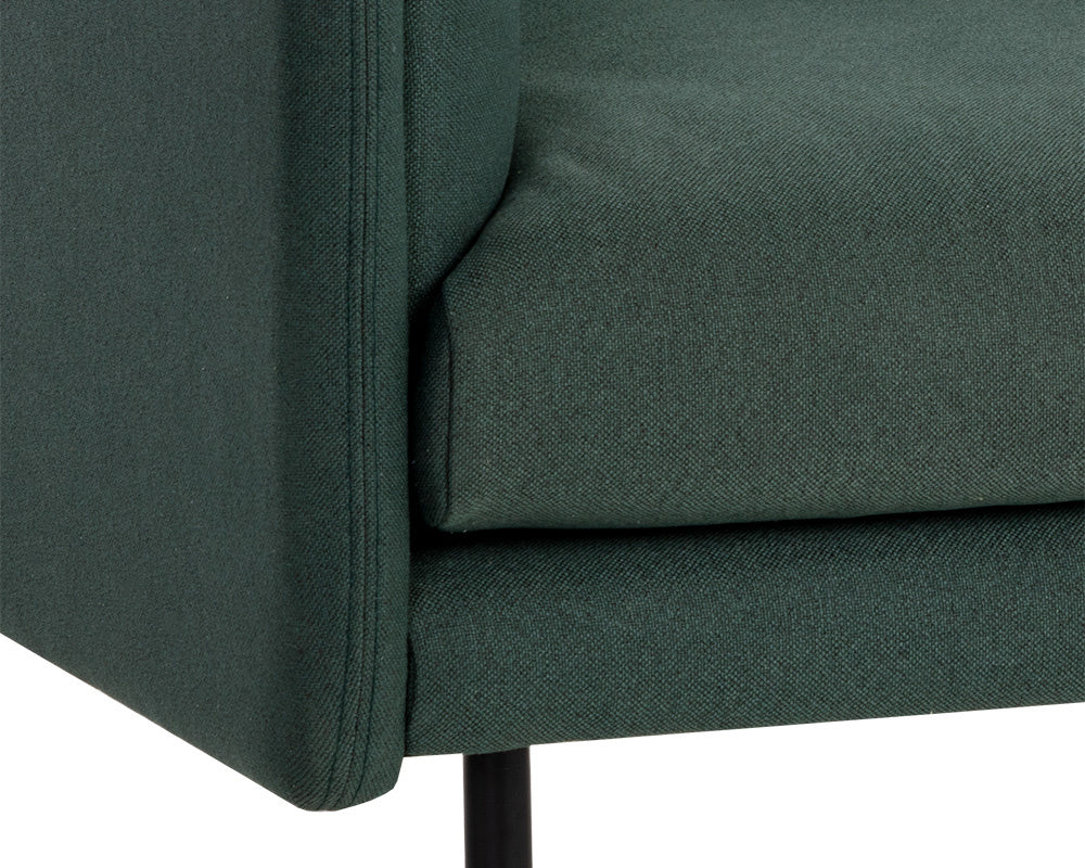 A classic and comfortable armchair that takes inspiration from mid-century designs. Stocked in mina ivory and pine fabrics with generously-cushioned seating. Completed with powder coated black metal legs. Coordinating sofa also available.
