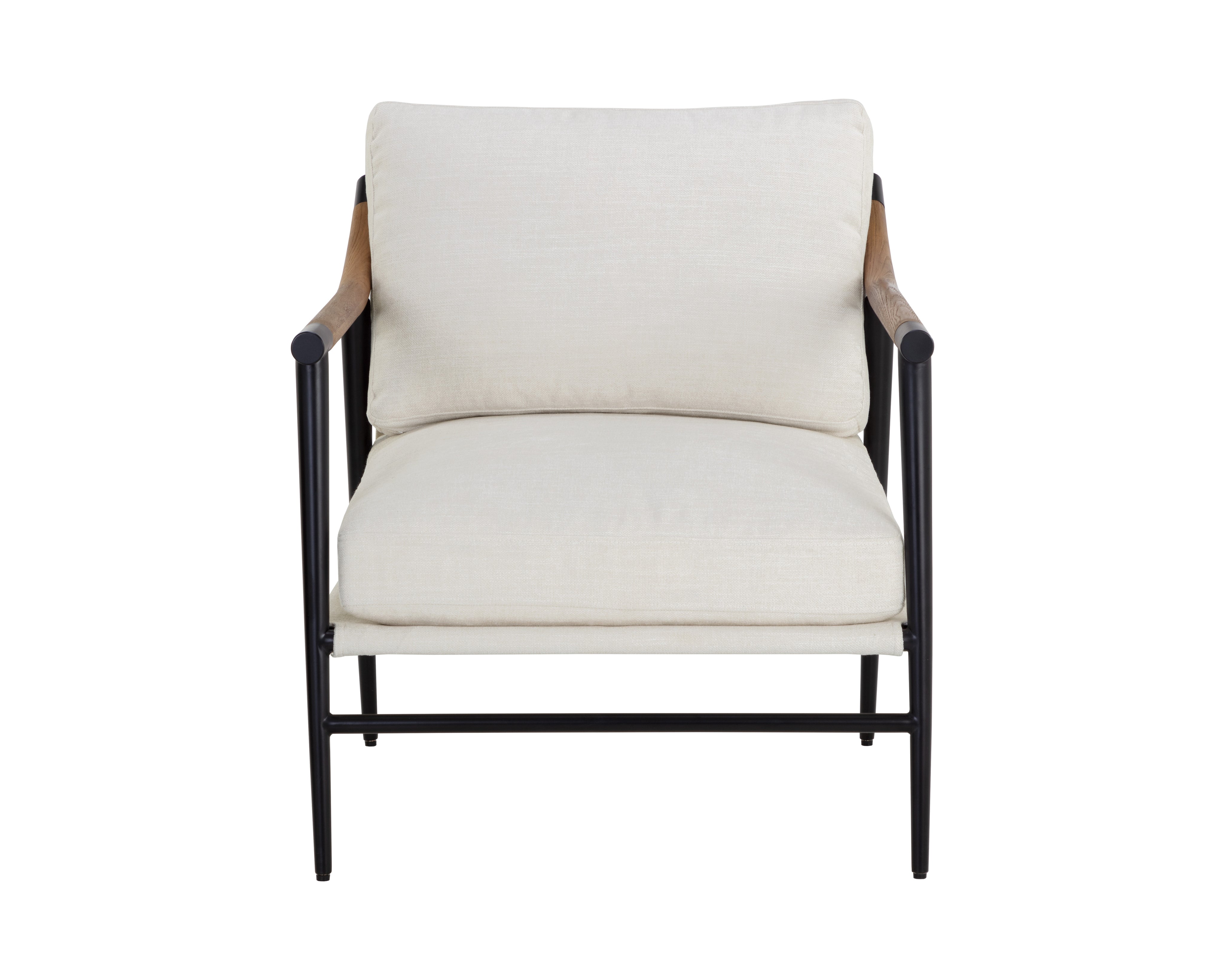 Functional with a timeless design, the Meadow Armchair offers a clean silhouette that will suit any space. Stocked in heather ivory tweed performance fabric with a matte black iron frame with solid oak wood detailing on the armrests. Completed with a black iron frame. Performance fabric is moisture repellant, stain resistant and easy to clean. As wood is an organic, porous material, these pieces will contain natural variations of texture and may also exhibit fine indentations and cracks. Wood pieces will also display a disparity of colour and grain, and visible knots and burls that add to the character of each piece.