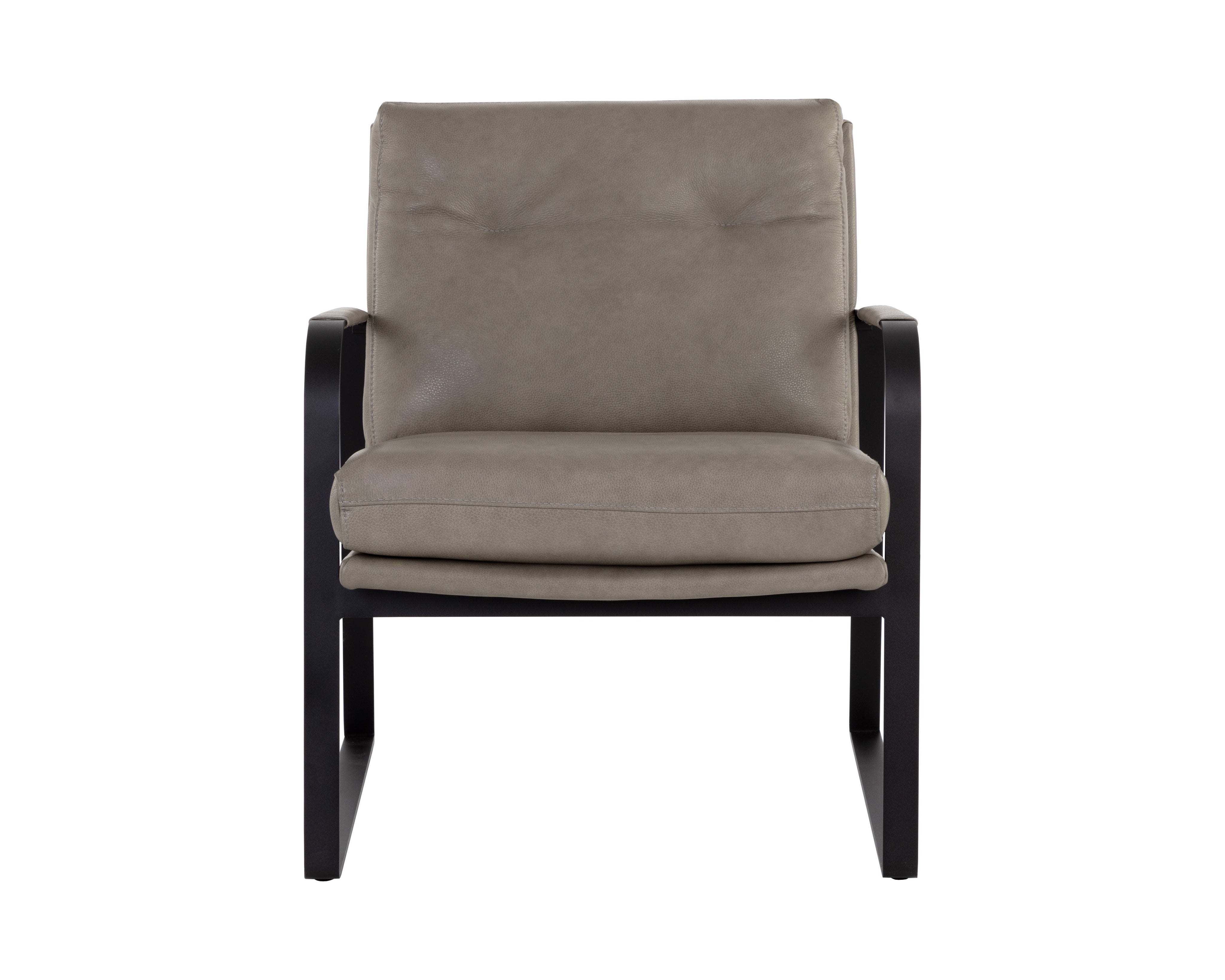 Rich with comfort and comprised of an industrial-inspired design, this mid-century modern lounge chair is perfect for any space. Features a generously-cushioned seat upholstered in missouri stone and mahogany Italian bovine leathers. Completed with matching leather wrapped armrests and black powder coated steel legs. Handle with Care: This design has been crafted with 100% leather. Leather is a natural material; as such, colour variations, markings, wrinkles, grooves and light scratches are acceptable and appreciated characteristics. No two pieces are alike. Visit our Product Care page for more information on how to ensure the lasting beauty of this piece.