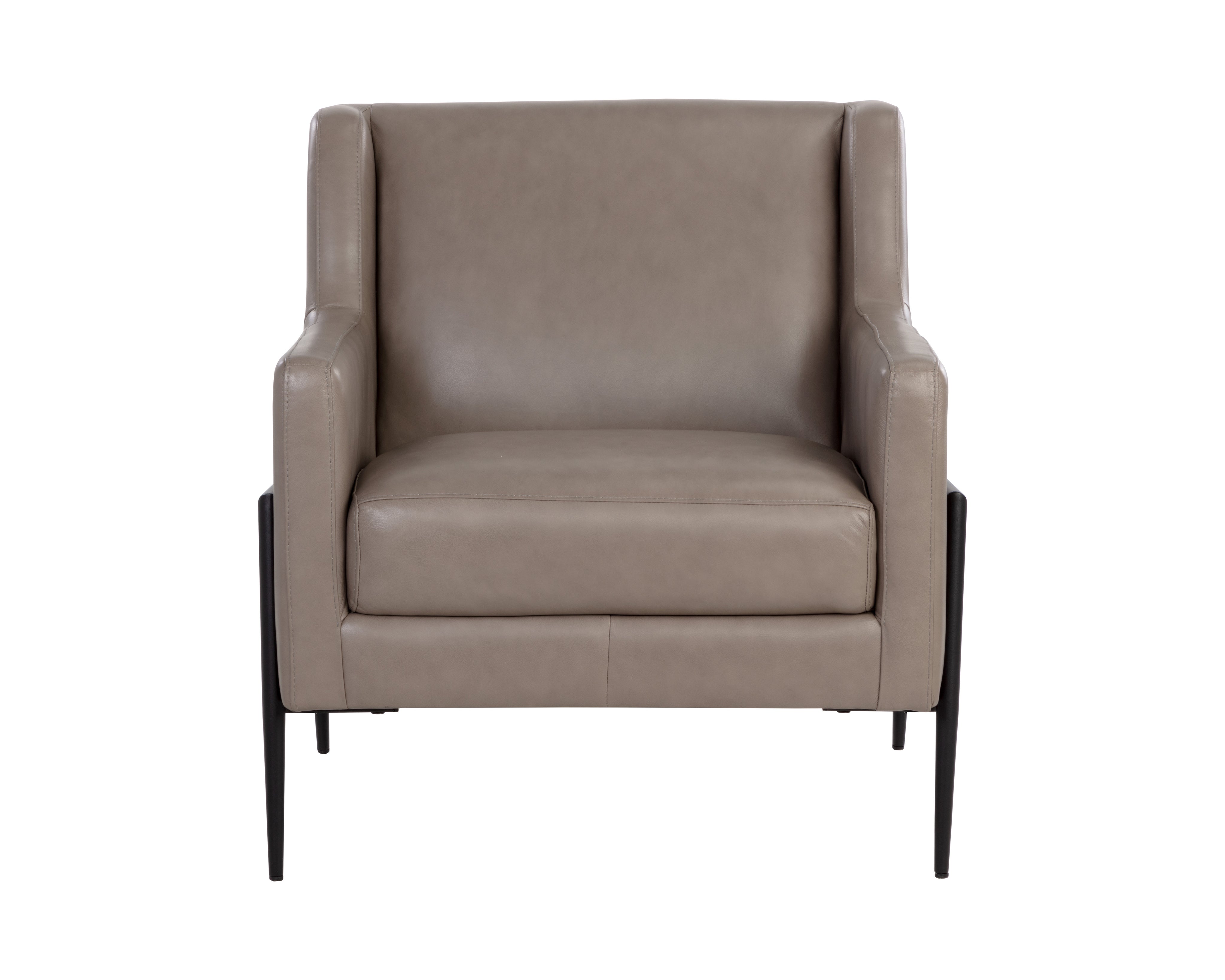 Introduce comfort to any space with this modern lounge chair. Upholstered in alpine grey Italian bovine leather and completed with a black powder coated steel frame.