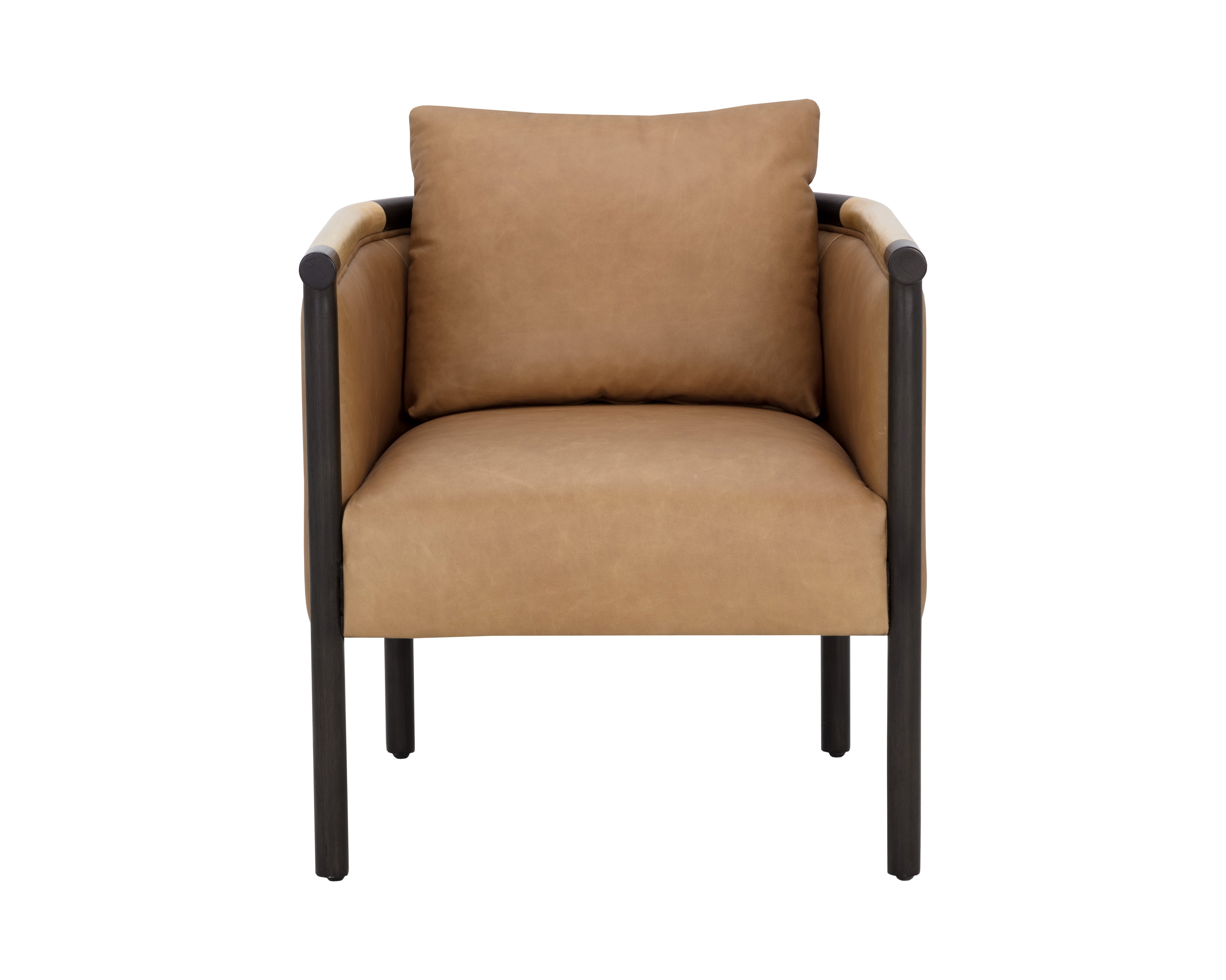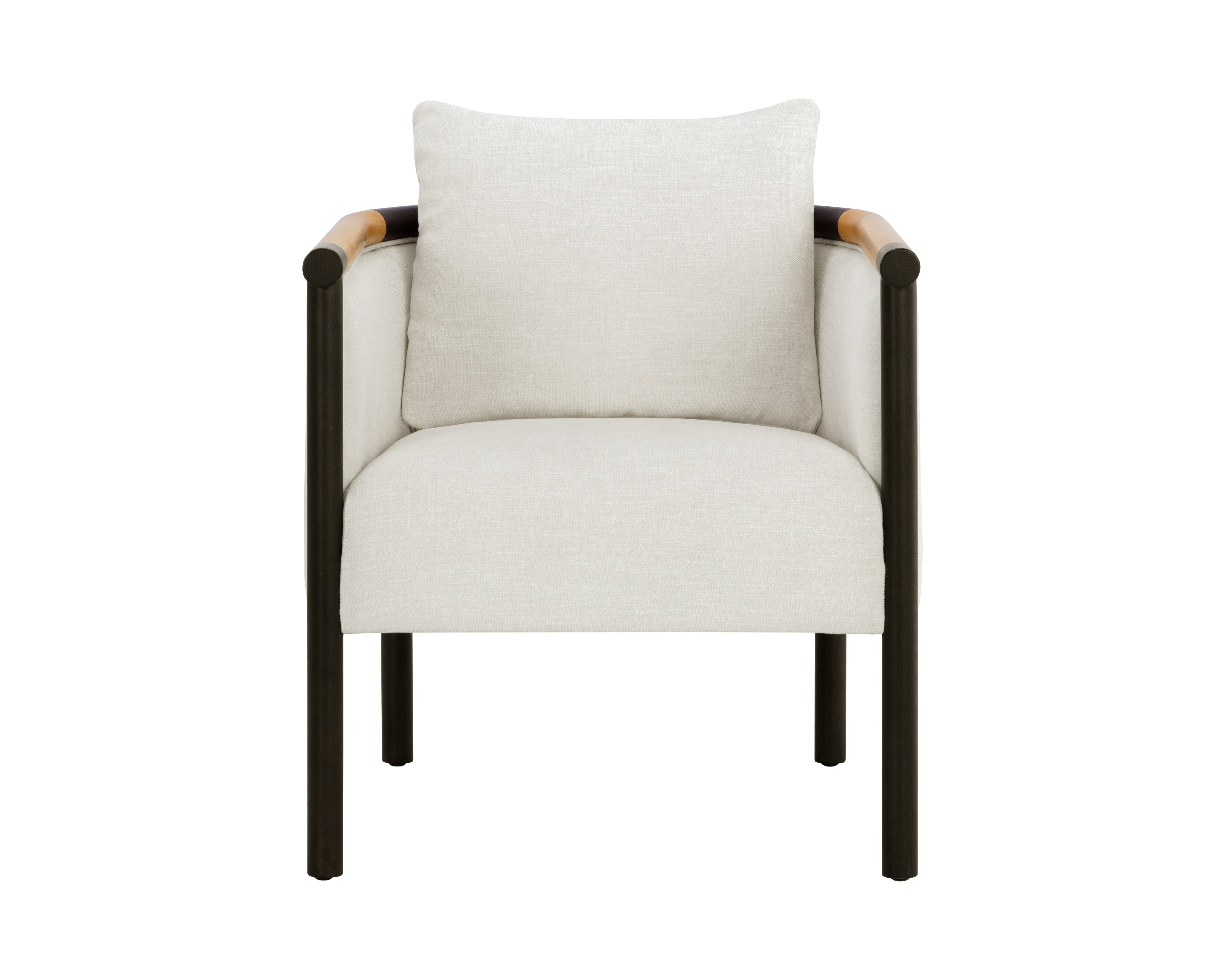 The generous curves of the Wilder Lounge Chair provide inviting comfort for ultimate relaxation. Featuring two tone armrests in contrasting charcoal brown oak wood and rustic oak wood. Upholstered in heather ivory tweed performance fabric. Performance fabric is moisture repellent, durable and easy to clean. As wood is an organic, porous material, these pieces will contain natural variation of texture and may also exhibit fine indentations and cracks. Wood pieces will also display a disparity of colour and grain, and visible knots and burls that add to the character of each piece.