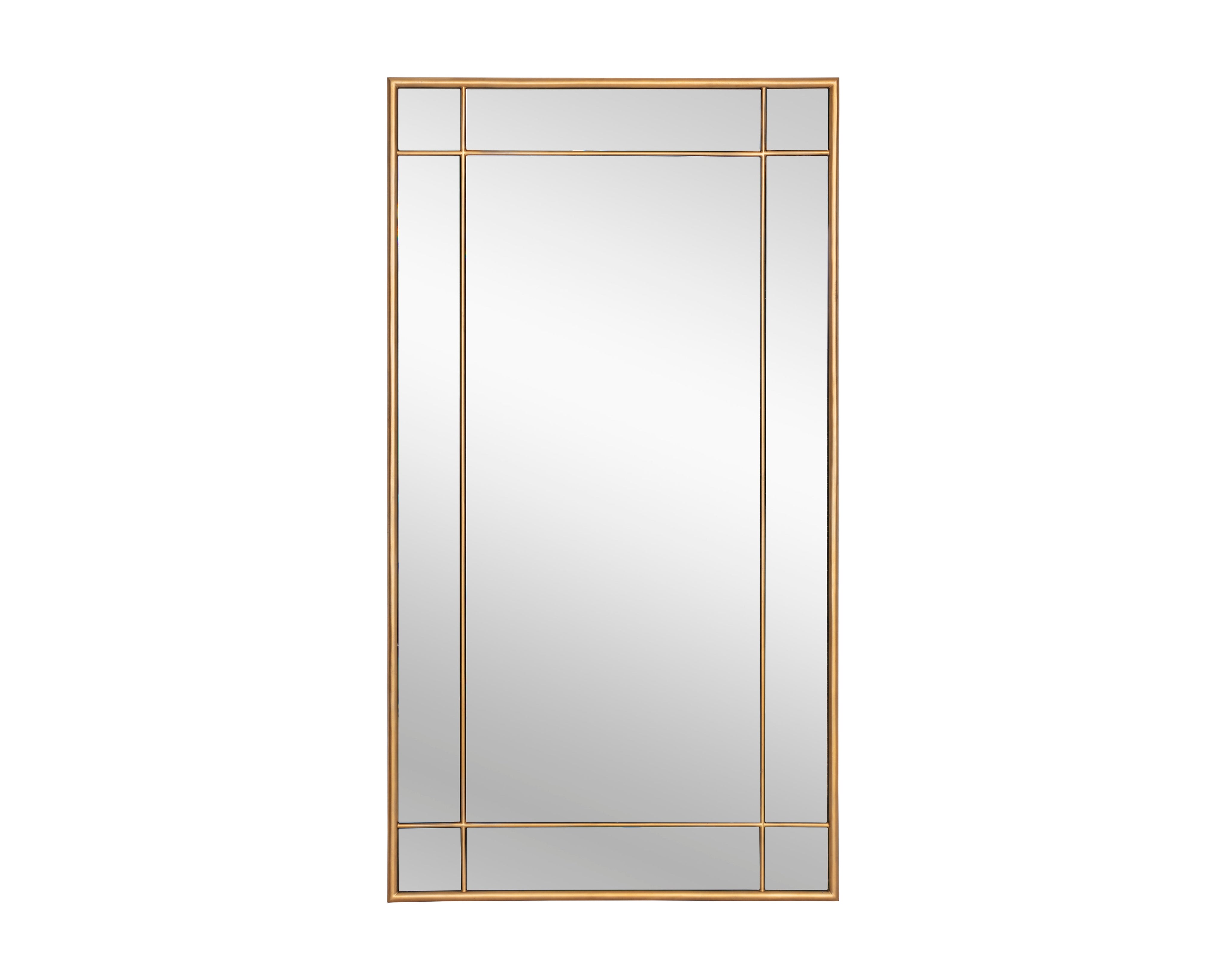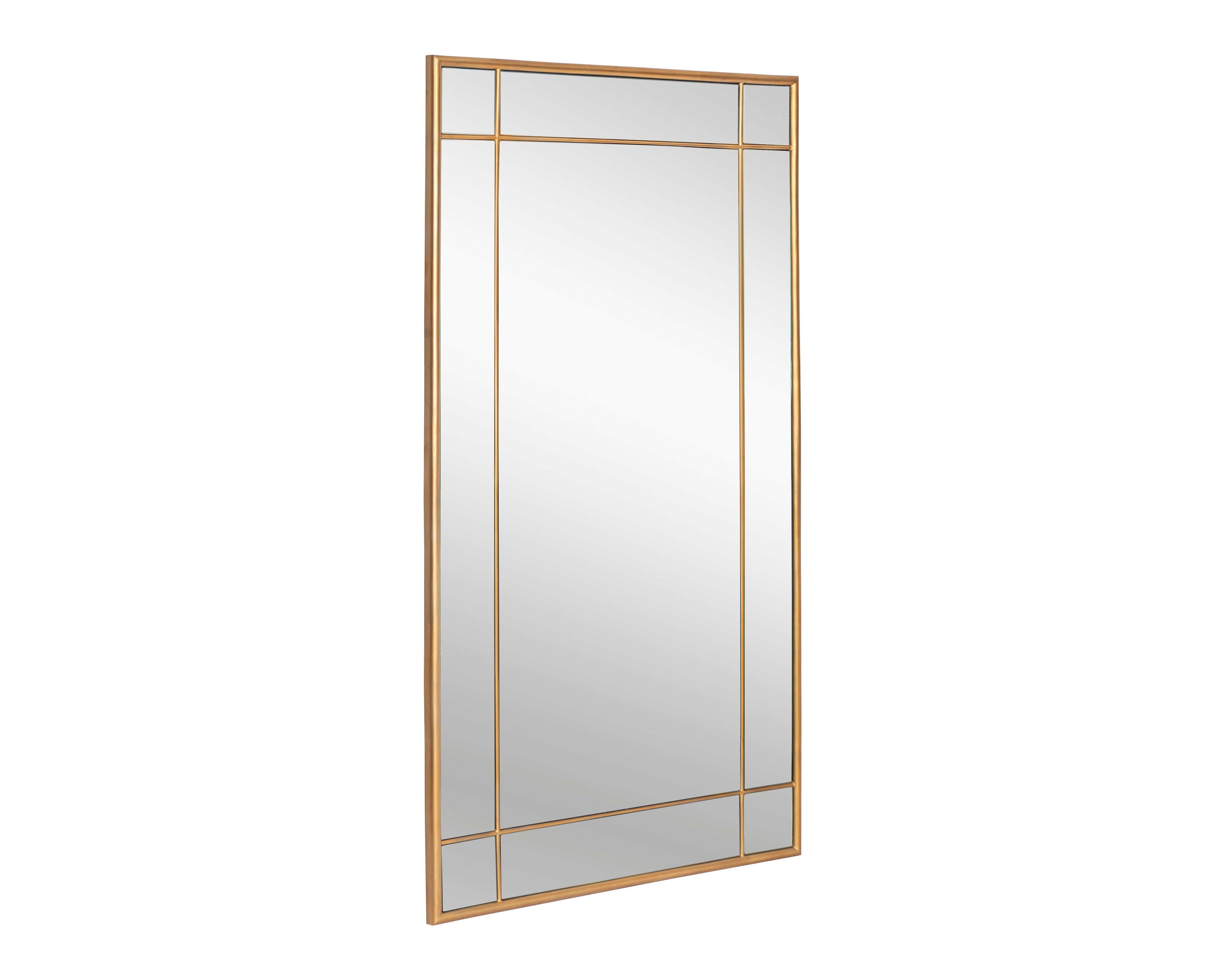 Classic elegance come to life in this stunning floor mirror. Features a brushed brass iron frame and pane detailing. Perfect for bedroom, living, loft and foyer spaces. Mounting and anti-tip kit included. Made in India. With refined craftsmanship, this design was brought to life by skilled local artisans. By nature, these materials develop unique imperfections such as fissures, markings and colour variations for a truly one-of-a-kind piece.